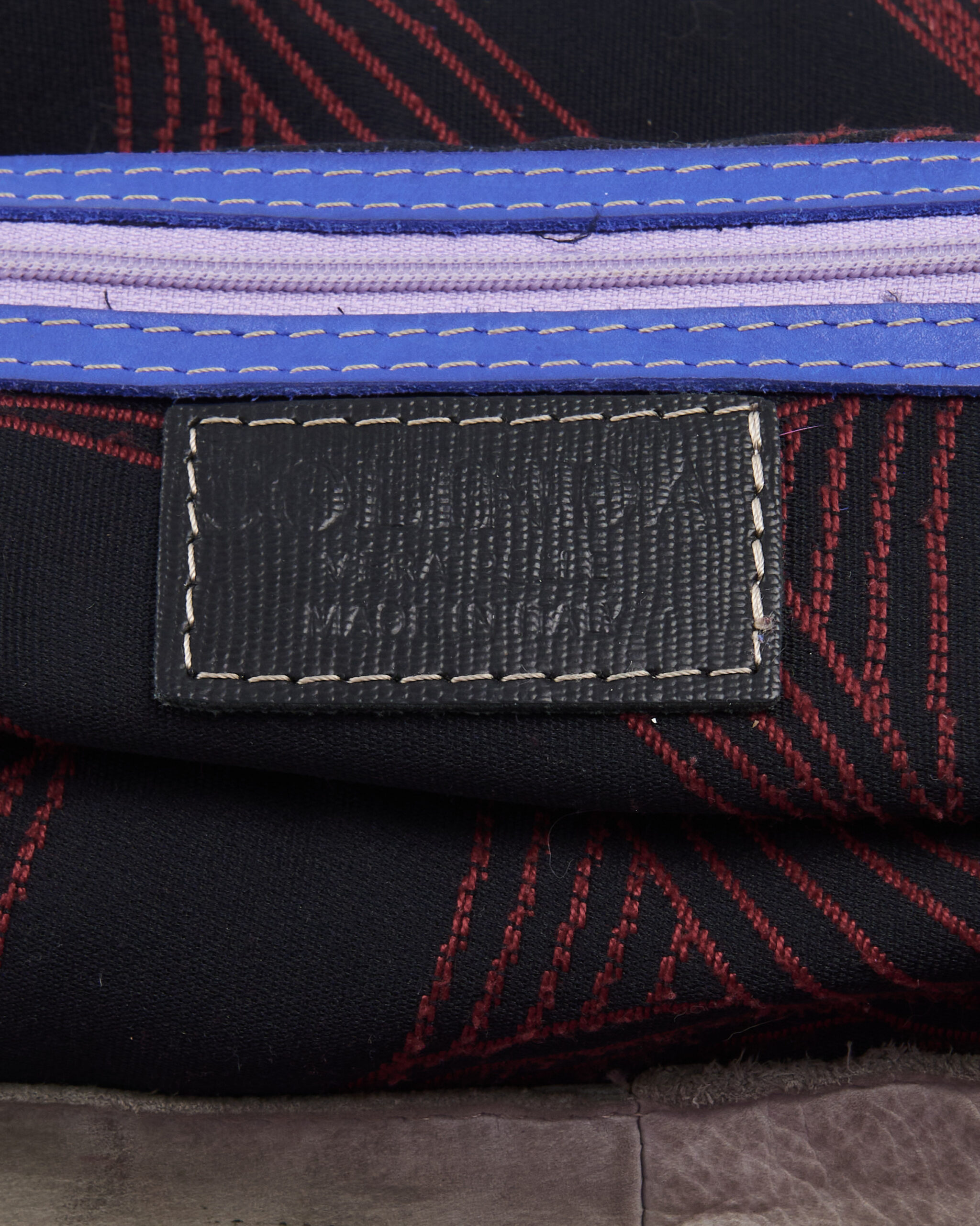 - Изготовлена из 100% натуральной кожи с ворсом, окрашенным в фиолетовый оттенок.