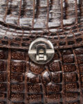 Модель из плотной тиснёной кожи с фактурой аллигатора в глубоком коричневом оттенке. Гладкая внутренняя отделка и несколько отделений. Металлическая ручка и надежный замок.