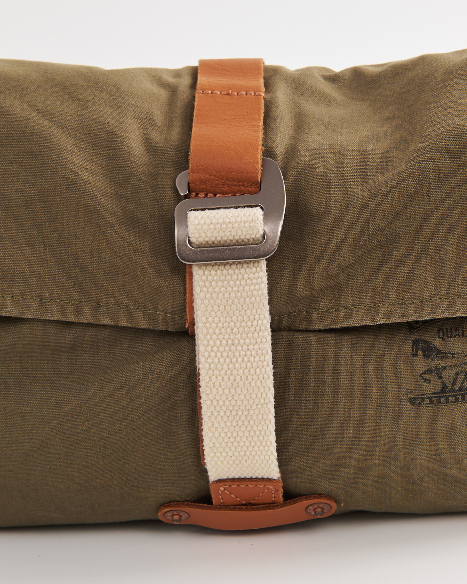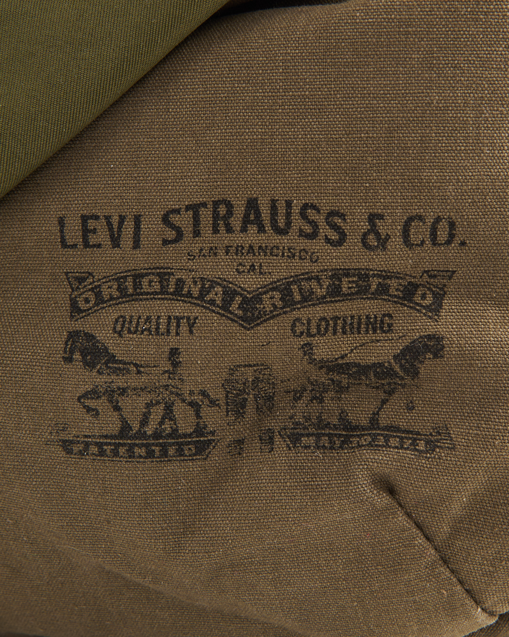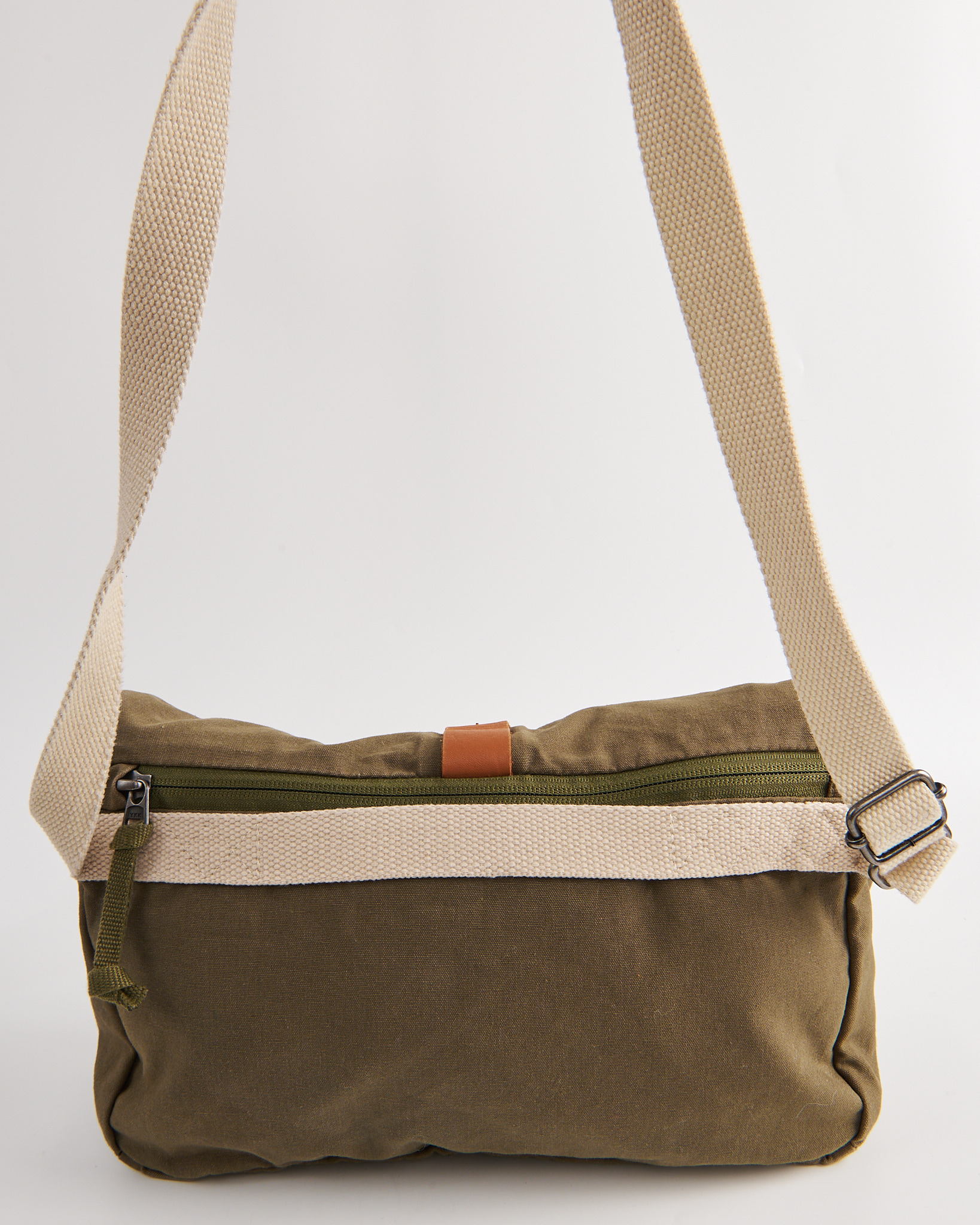 Сумка Levi's цвета хаки. Мягкая форма. Длина ремня регулируется металлической пряжкой. Основное отделение закрывается на молнию. Сверху клапан с фиксирующим ремнем и металлической рамкой. Внутри вместительное пространство. На внешней стороне фирменный принт Levi Strauss & Co.
