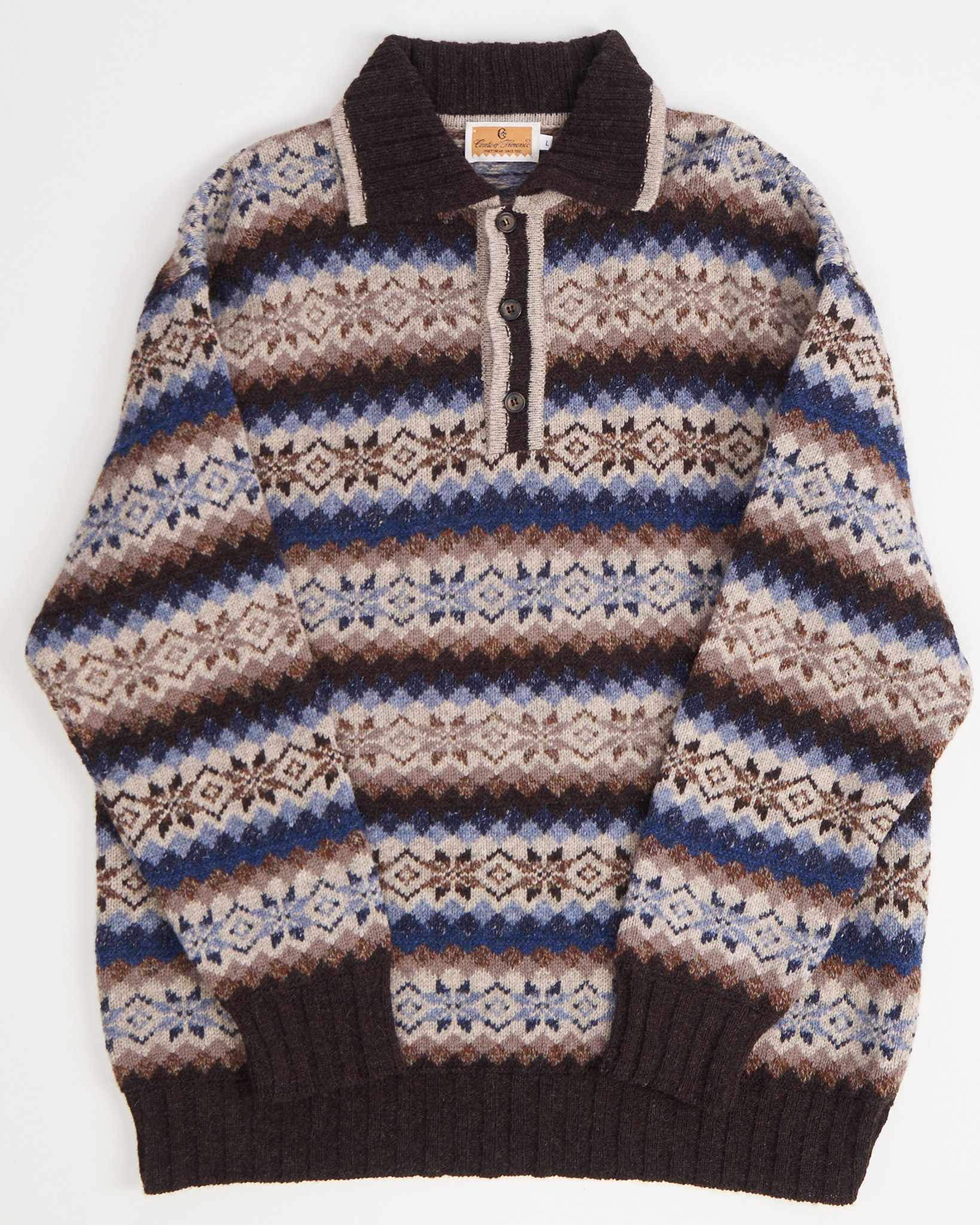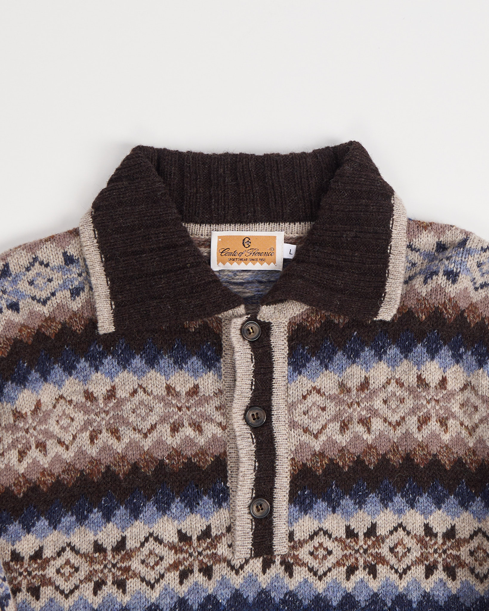 Свитер из 100% шерсти с контрастным воротником поло на пуговицах. Посадка свободная, удобная застёжка на пуговицы.