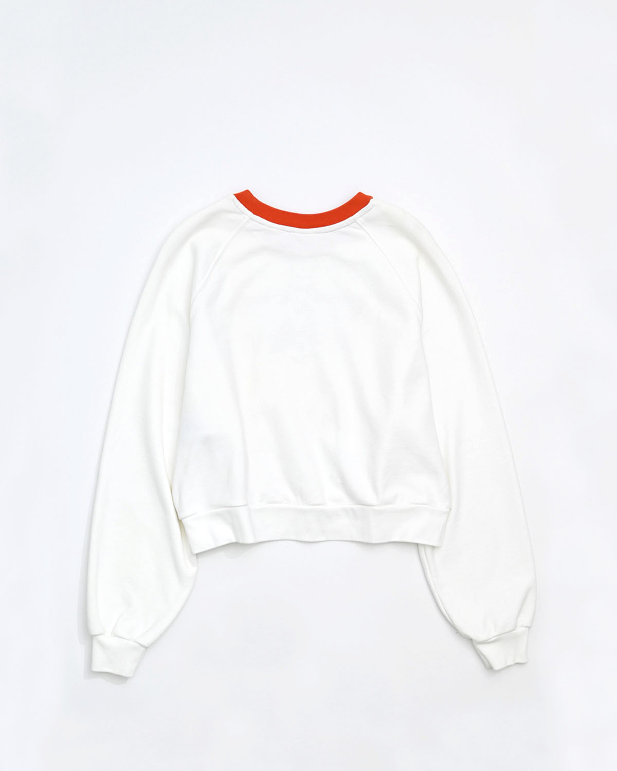 - Белая основа с контрастным красным логотипом и воротом в спортивном стиле.