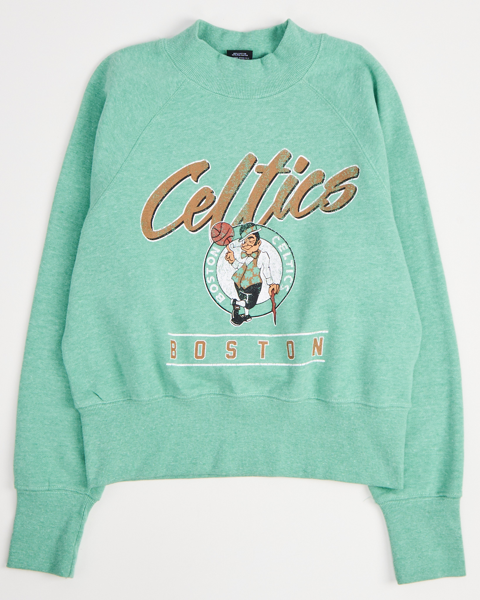 Толстовка Boston Celtics в насыщенном мятно-зелёном оттенке с крупным принтом Boston Celtics. Свободная посадка с рукавом реглан. Эластичные манжеты и низ формируют аккуратный силуэт. Принт с фирменной надписью Boston Celtics придает акцент.
