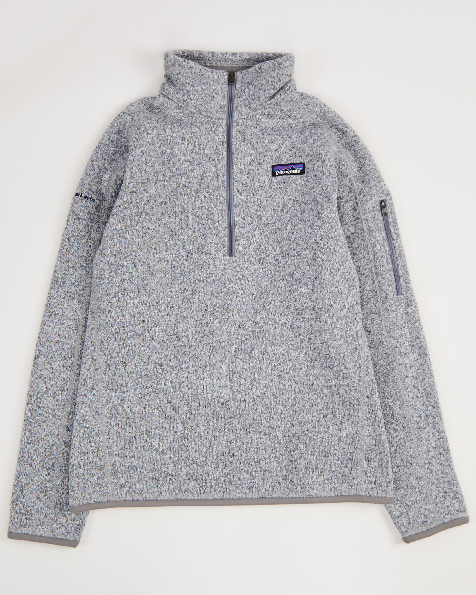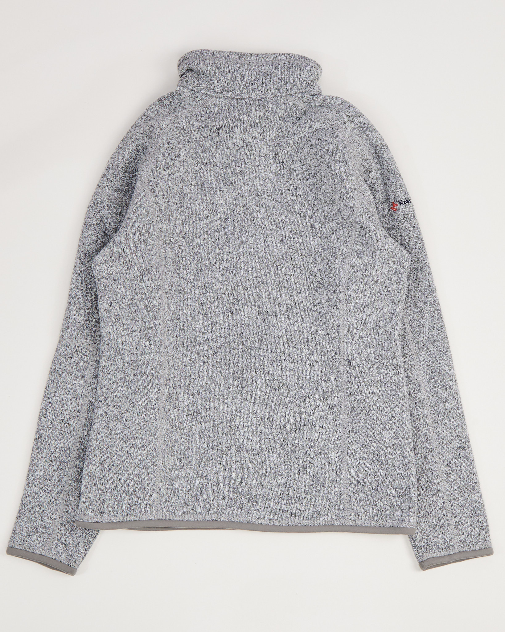 Флисовая толстовка от Patagonia в сером меланже. Материал плотный, приятный на ощупь, сохраняет тепло и держит форму. Посадка свободная, высокий воротник закрывает шею. Удобная заастёжка на молнии до груди и карман на рукаве.