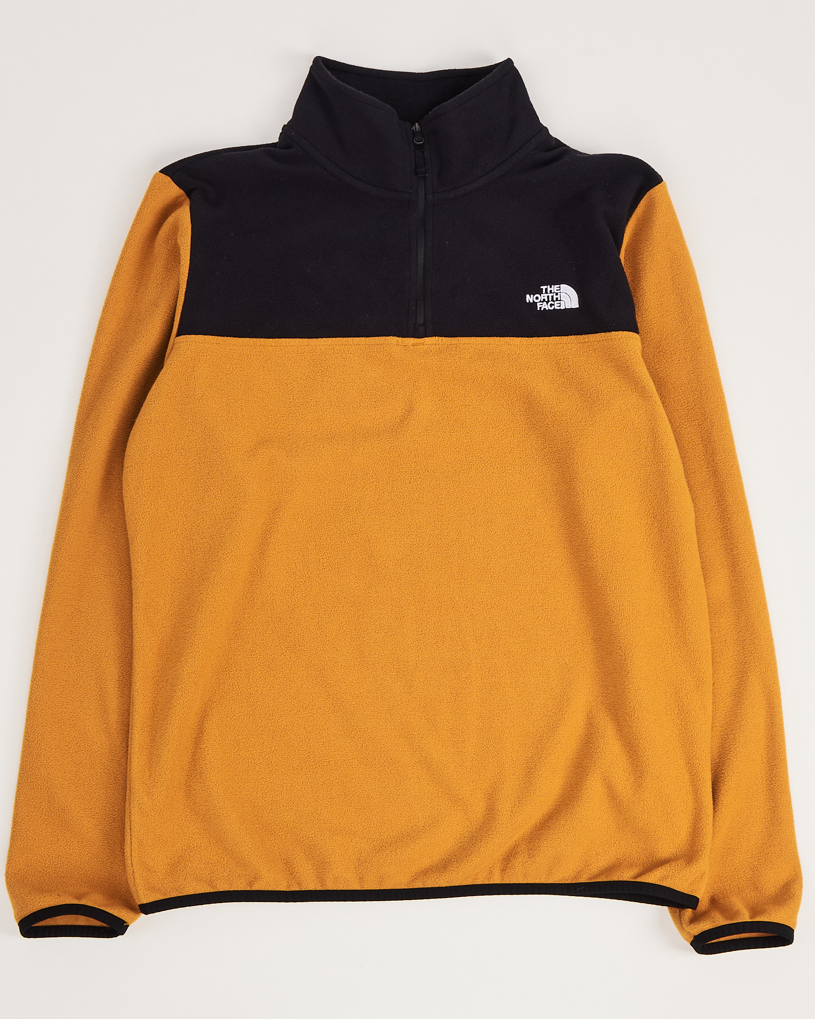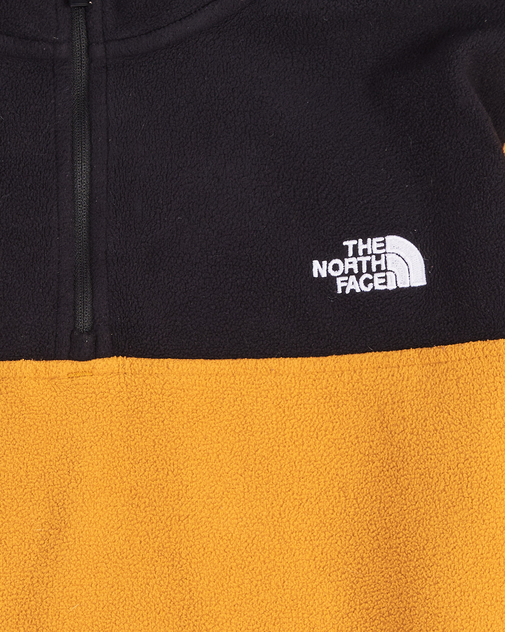 Толстовка The North Face из мягкой ткани в контрастном сочетании черного и желтого. Прямой крой, свободная посадка. Высокий воротник на молнии.