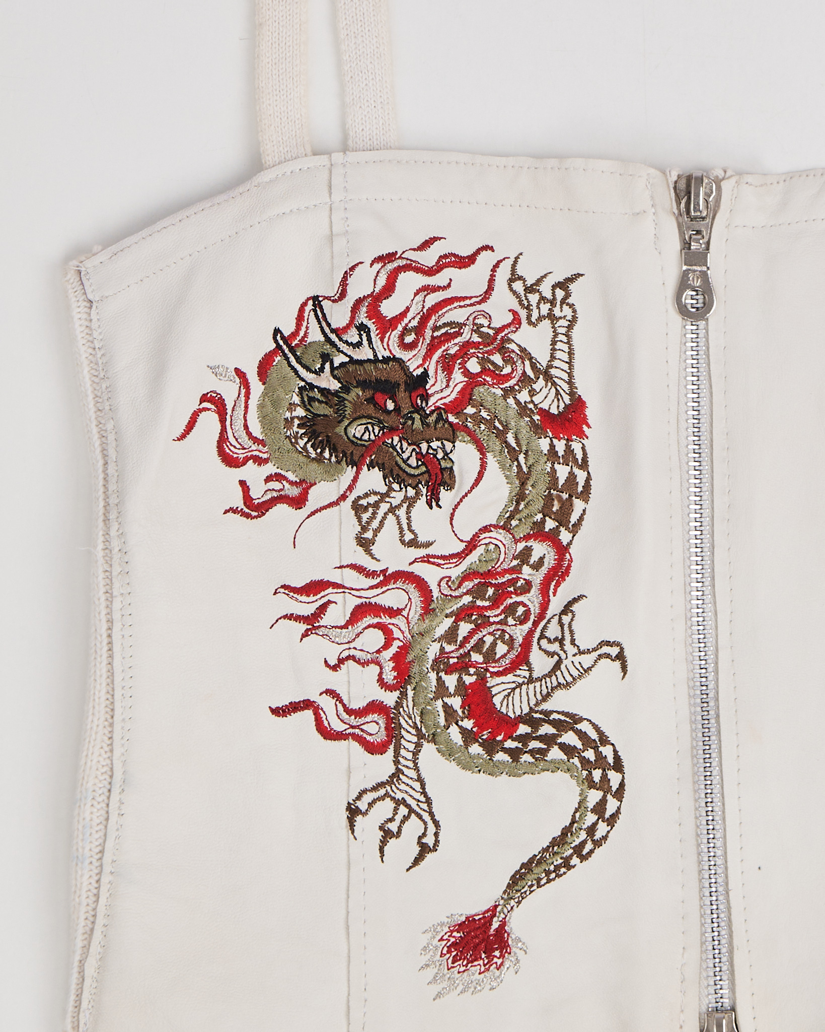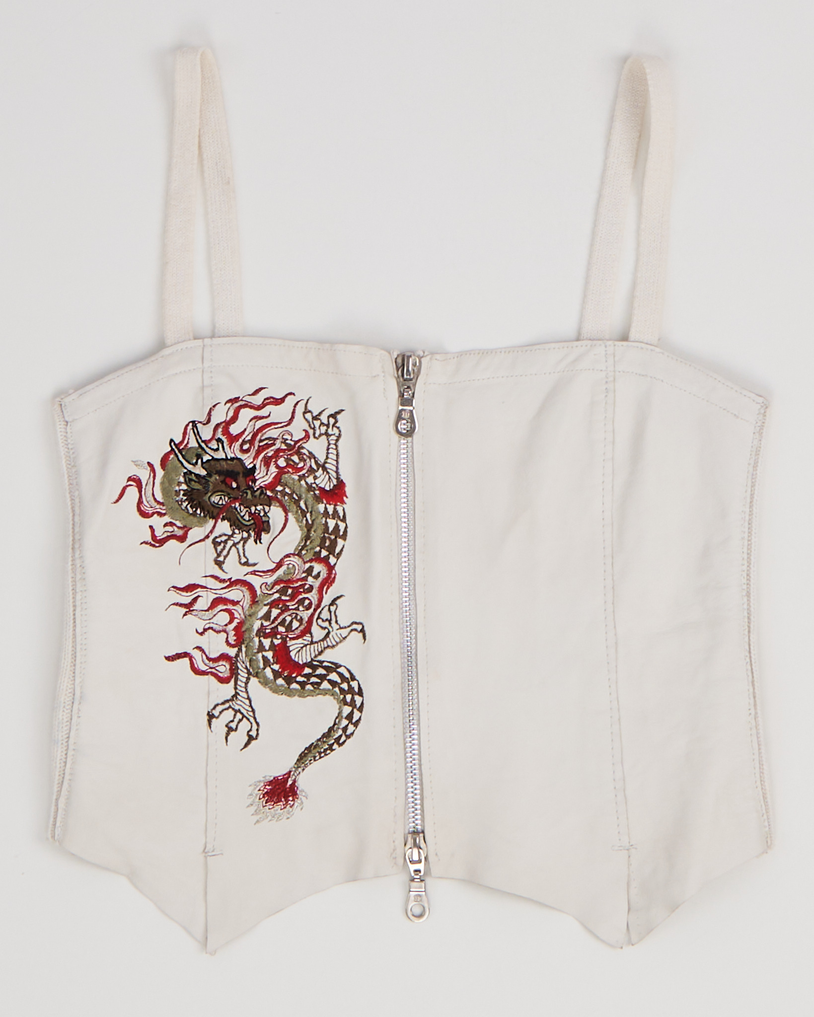 Топ в восточном стиле из кожи и хлопка. Главная «изюминка» - вышитый дракон в динамичной позе. Сочетание дерзкой эстетики и безупречного кроя.