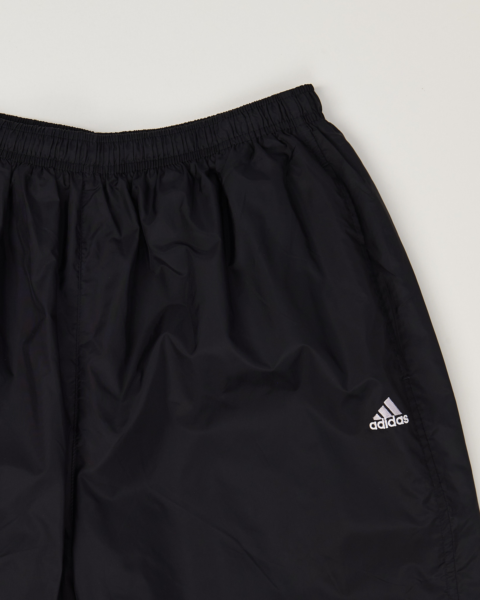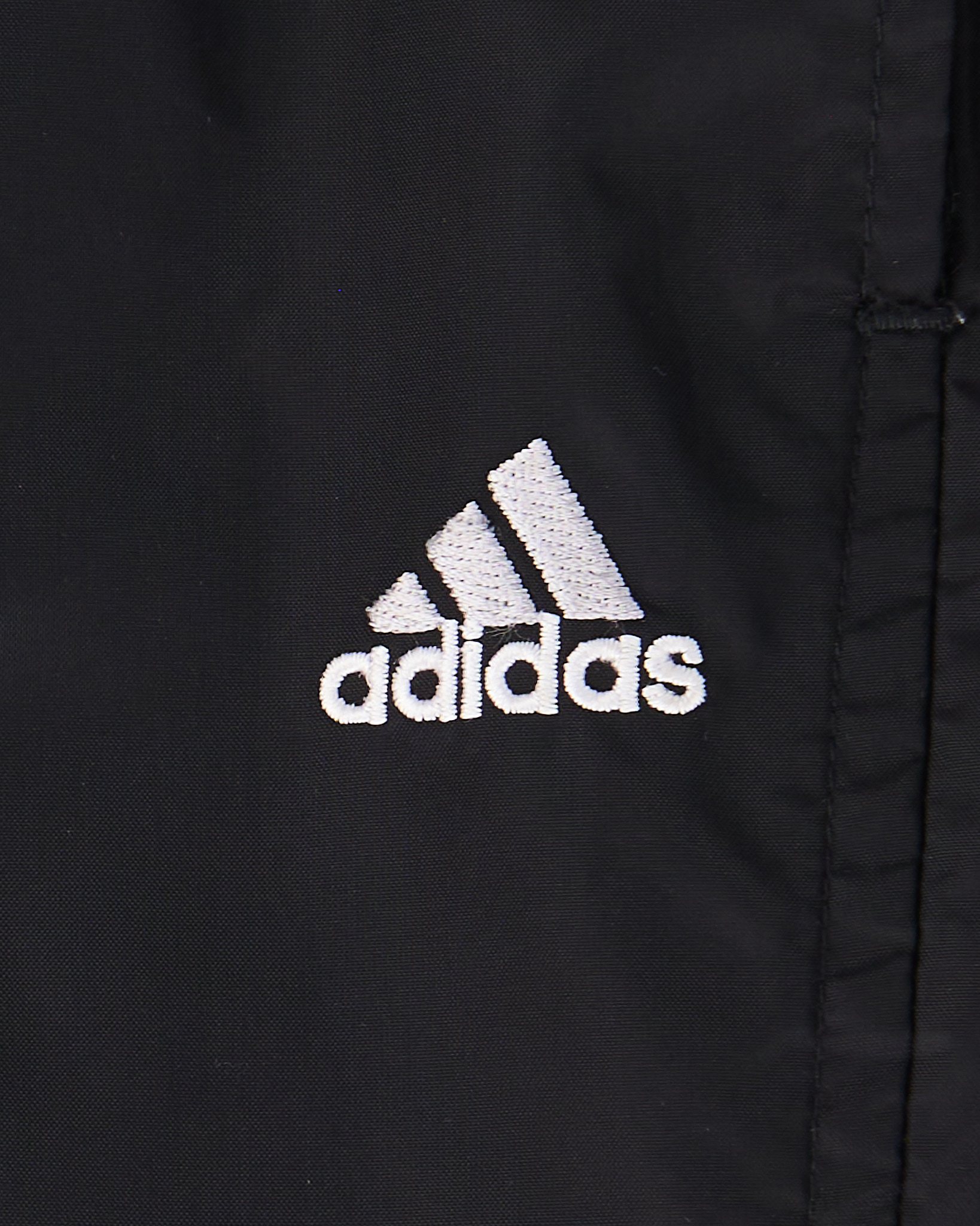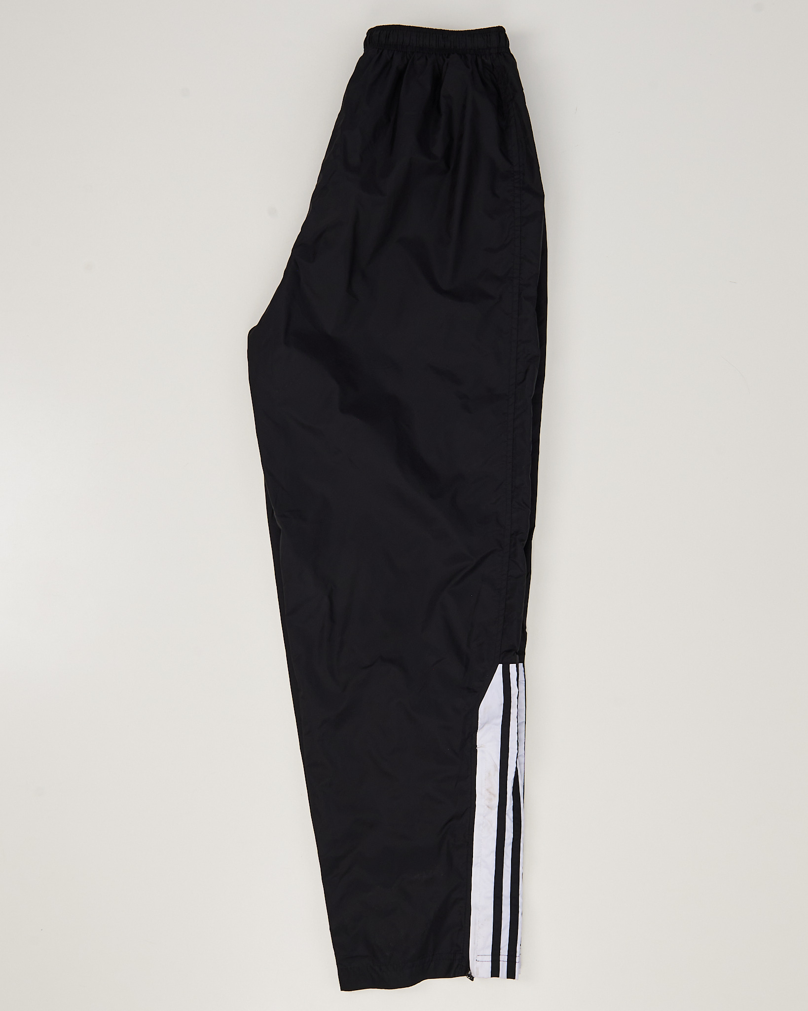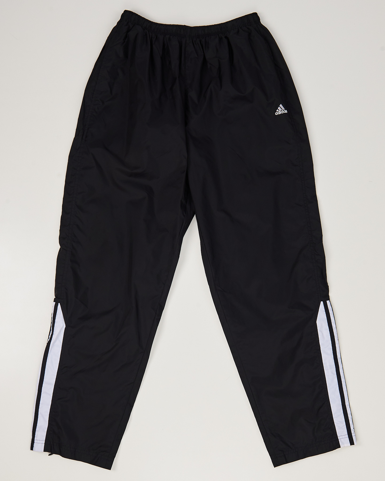 Спортивные брюки Adidas на резинке с фирменными боковыми полосками. В нижней задней части штанин расположены молнии.
