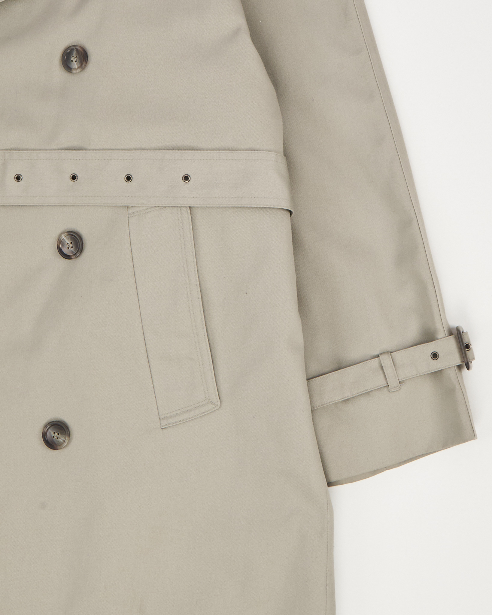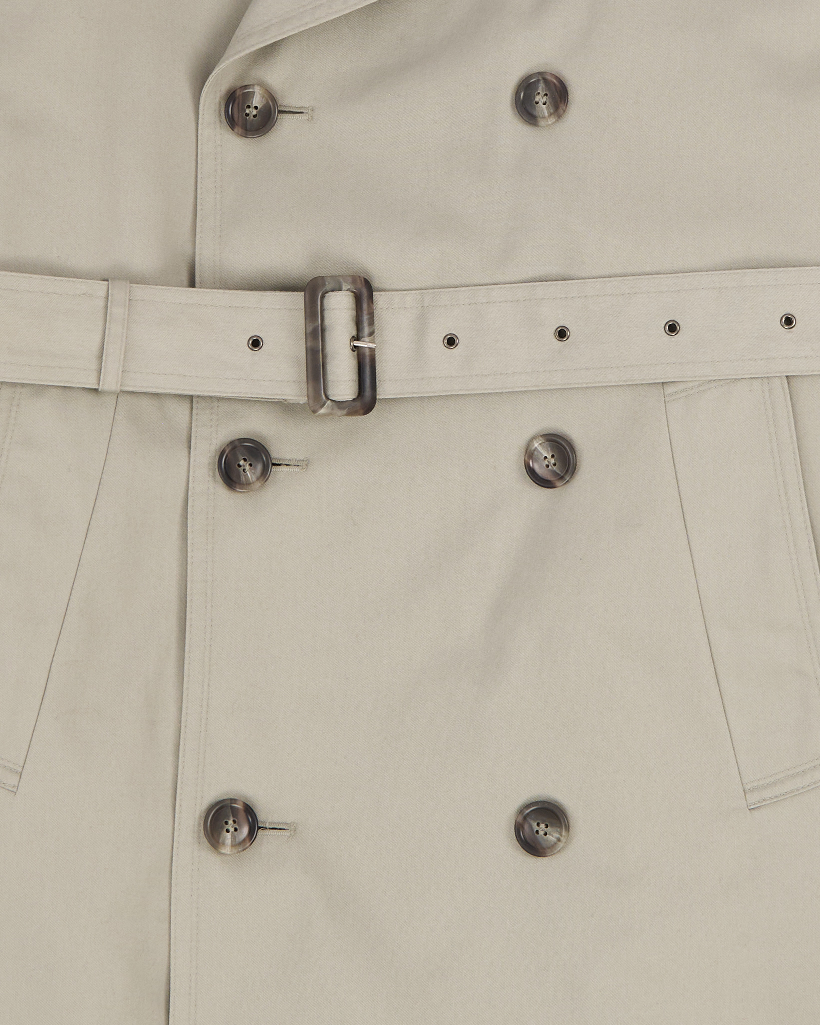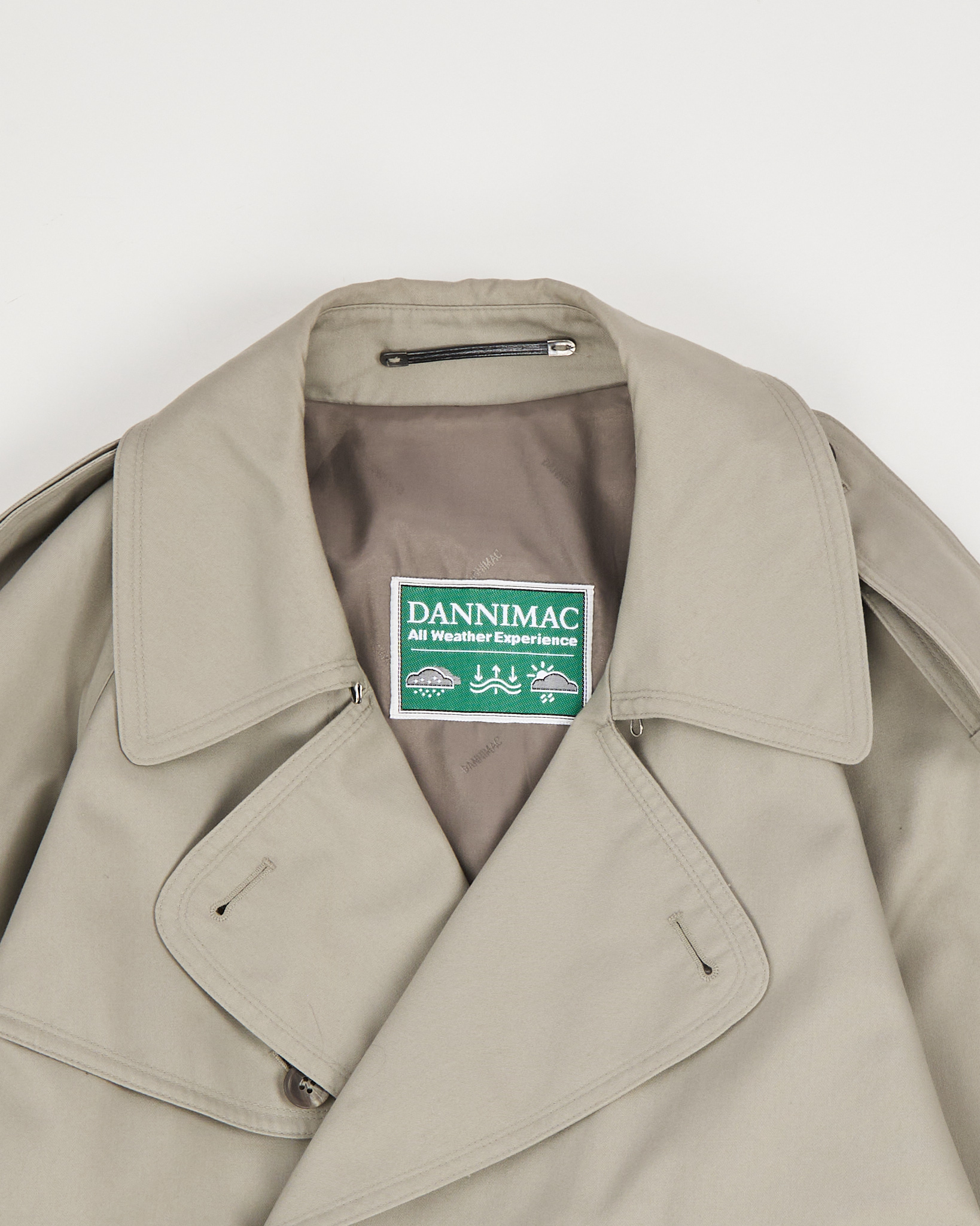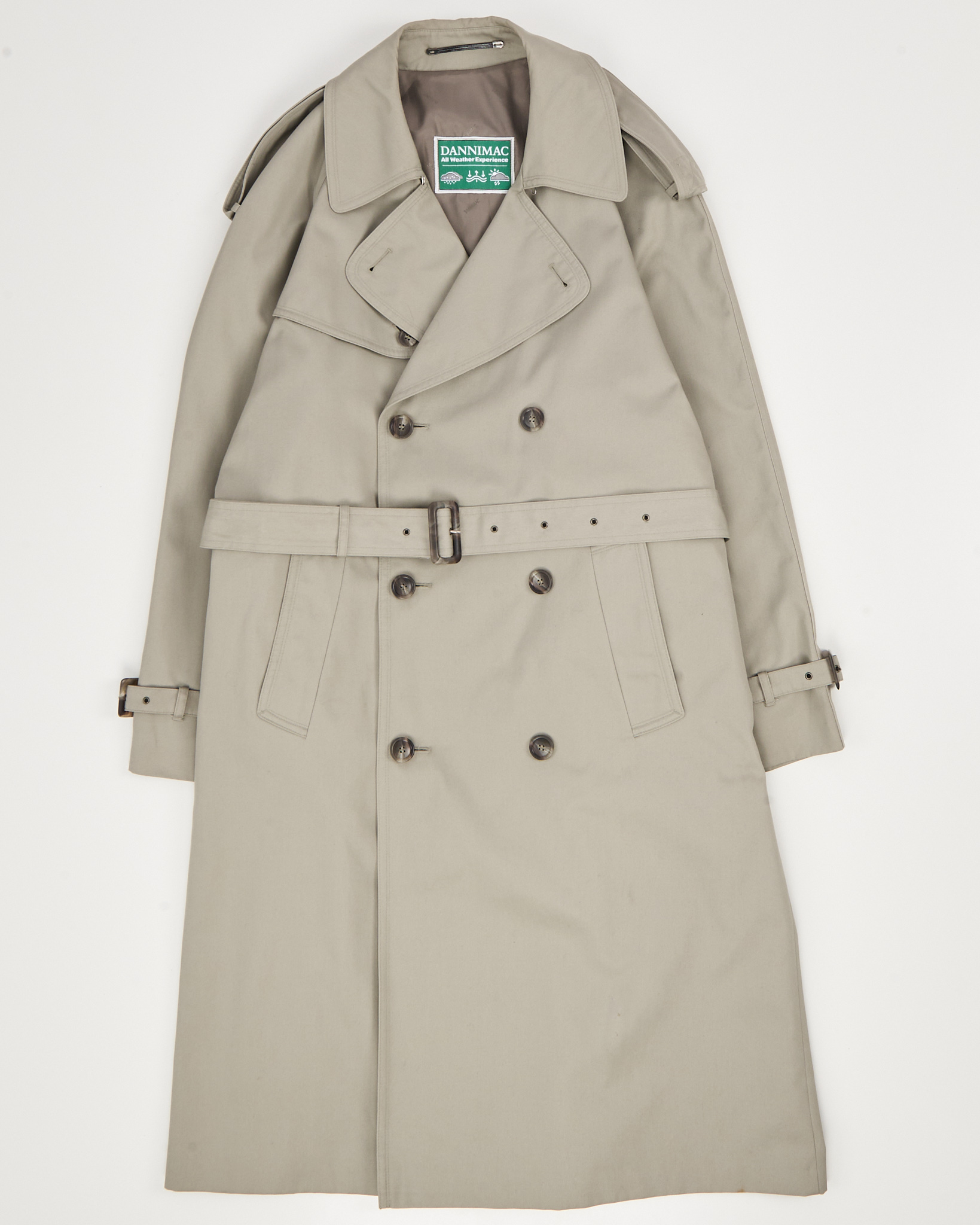 Тренч DANNIMAC с поясом из плотной смесовой ткани с гладкой поверхностью. От британского бренда Dannimac.  Прямой силуэт с акцентом на талии за счёт пояса. Двубортная застёжка, крупные пуговицы с мраморным эффектом, погоны и регулируемые хлястики на рукавах