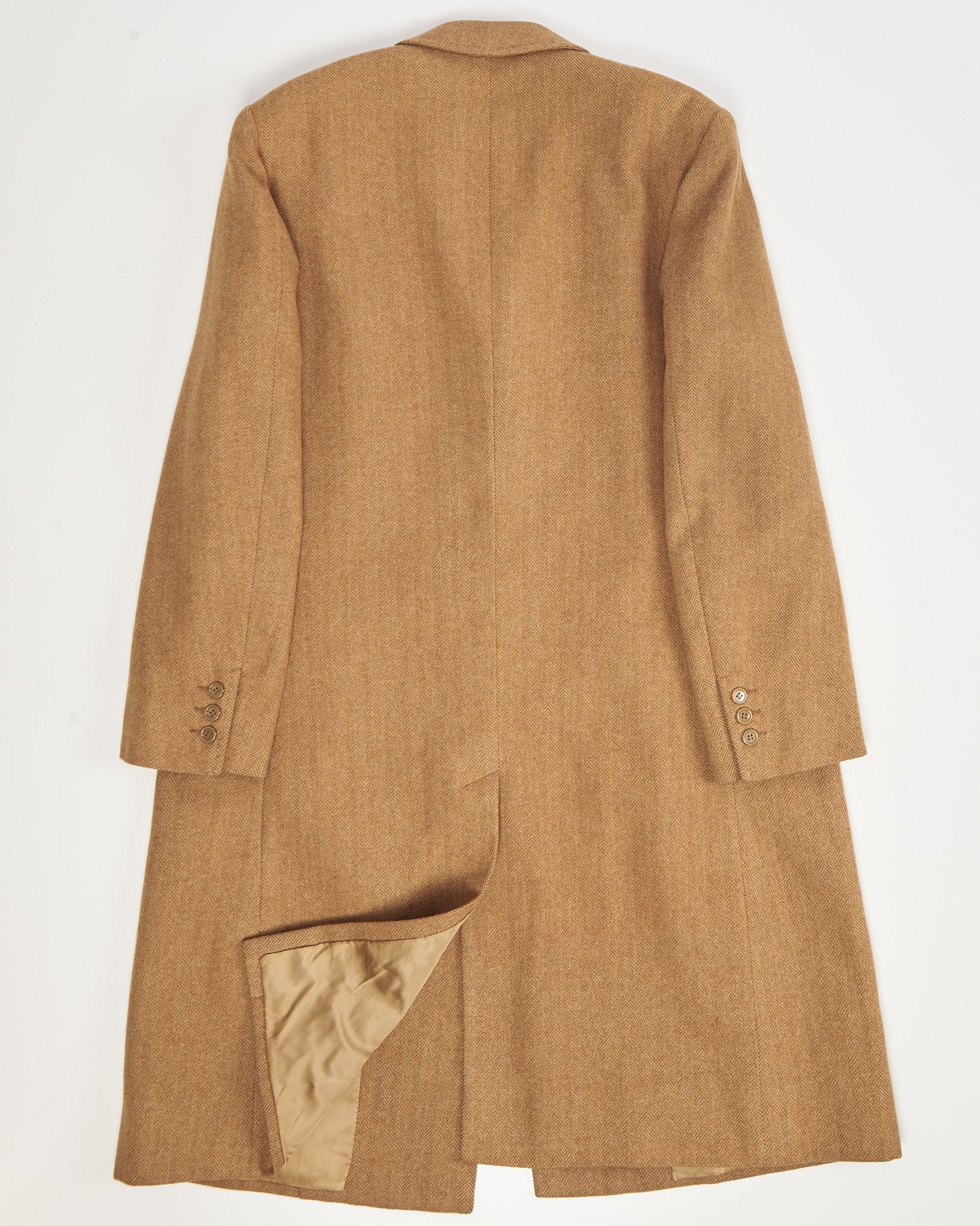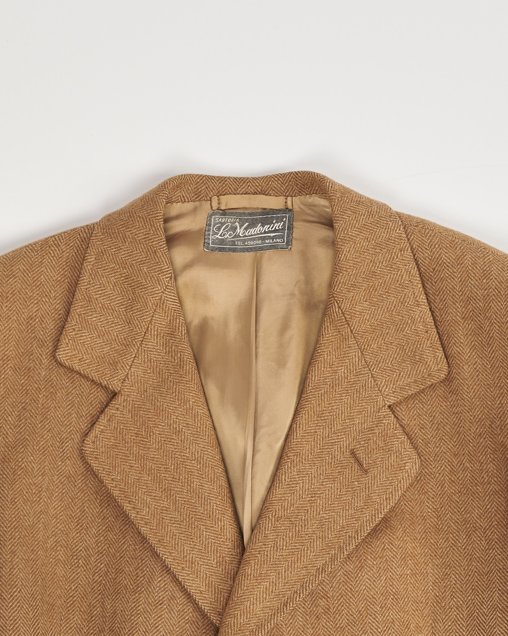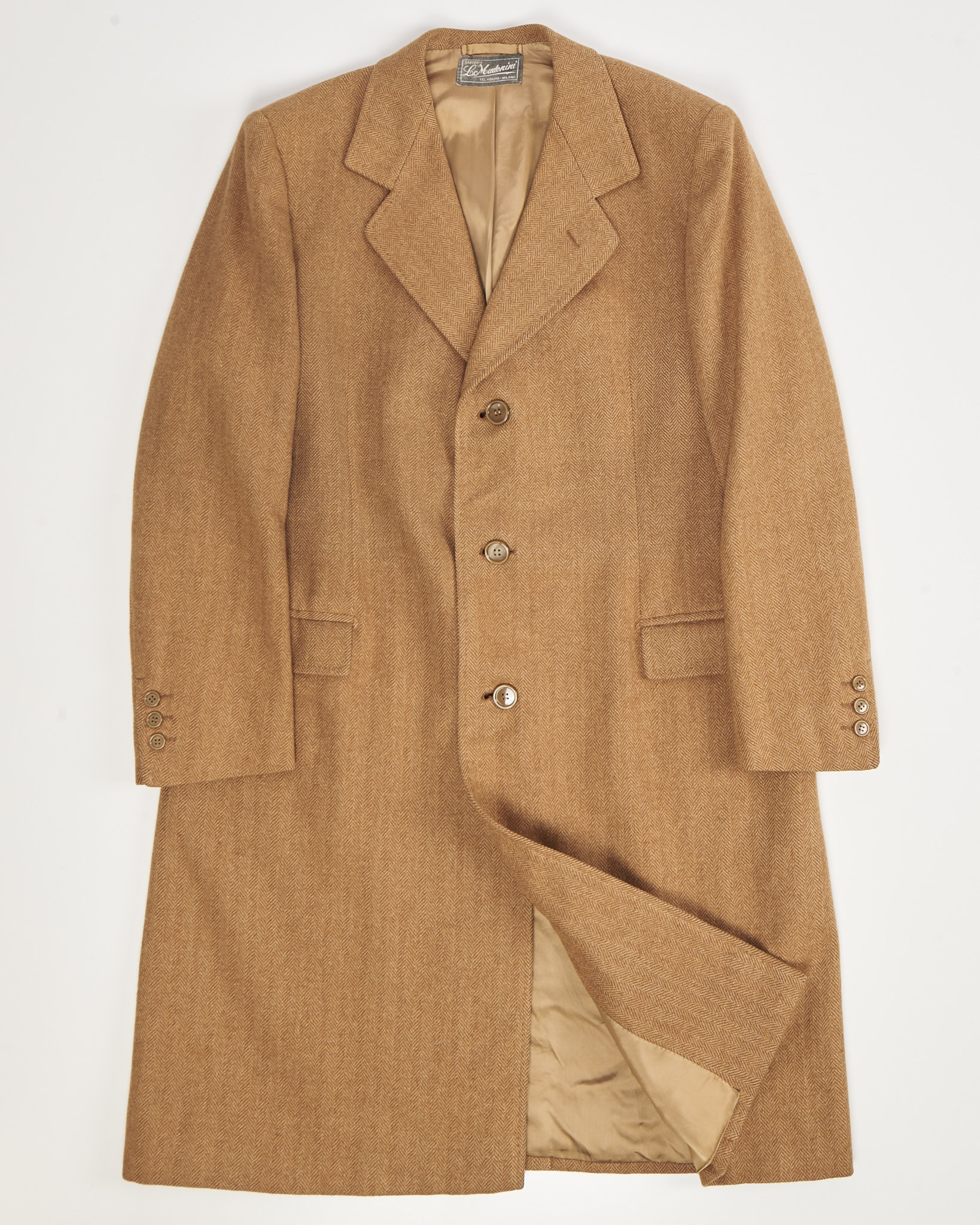 Пальто из шерсти made in Italy. Четкая линия плеч и прямой крой, функциональные карманы по бокам. Бирка миланского ателье Sartoria Le Madonini указывает на редкое качество пошива и внимание к деталям.