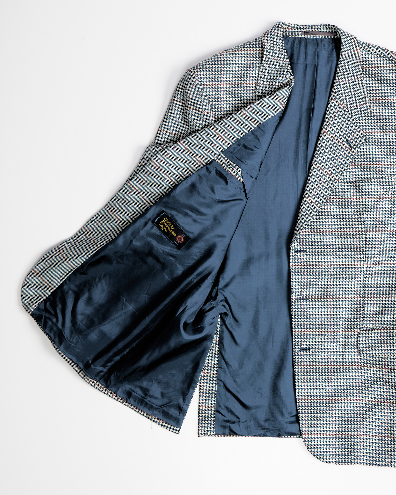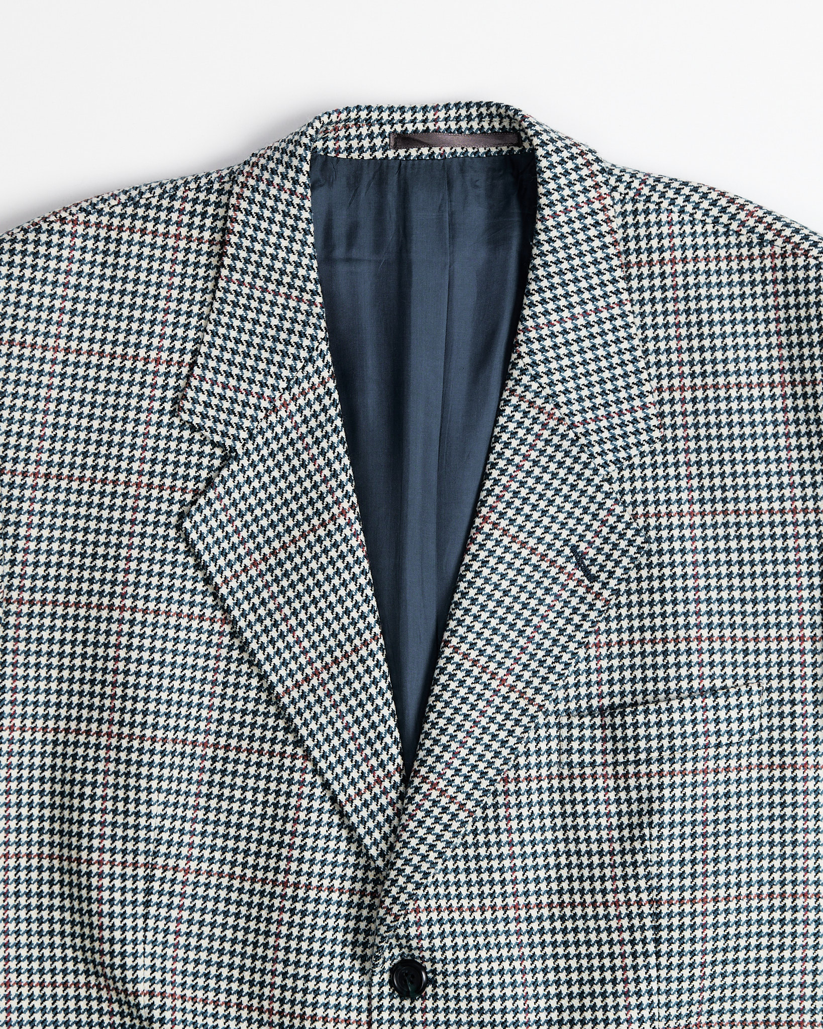 Пиджак из 100% шерсти Zegna. Посадка ближе к прямой, контрастная подкладка из вискозы.
