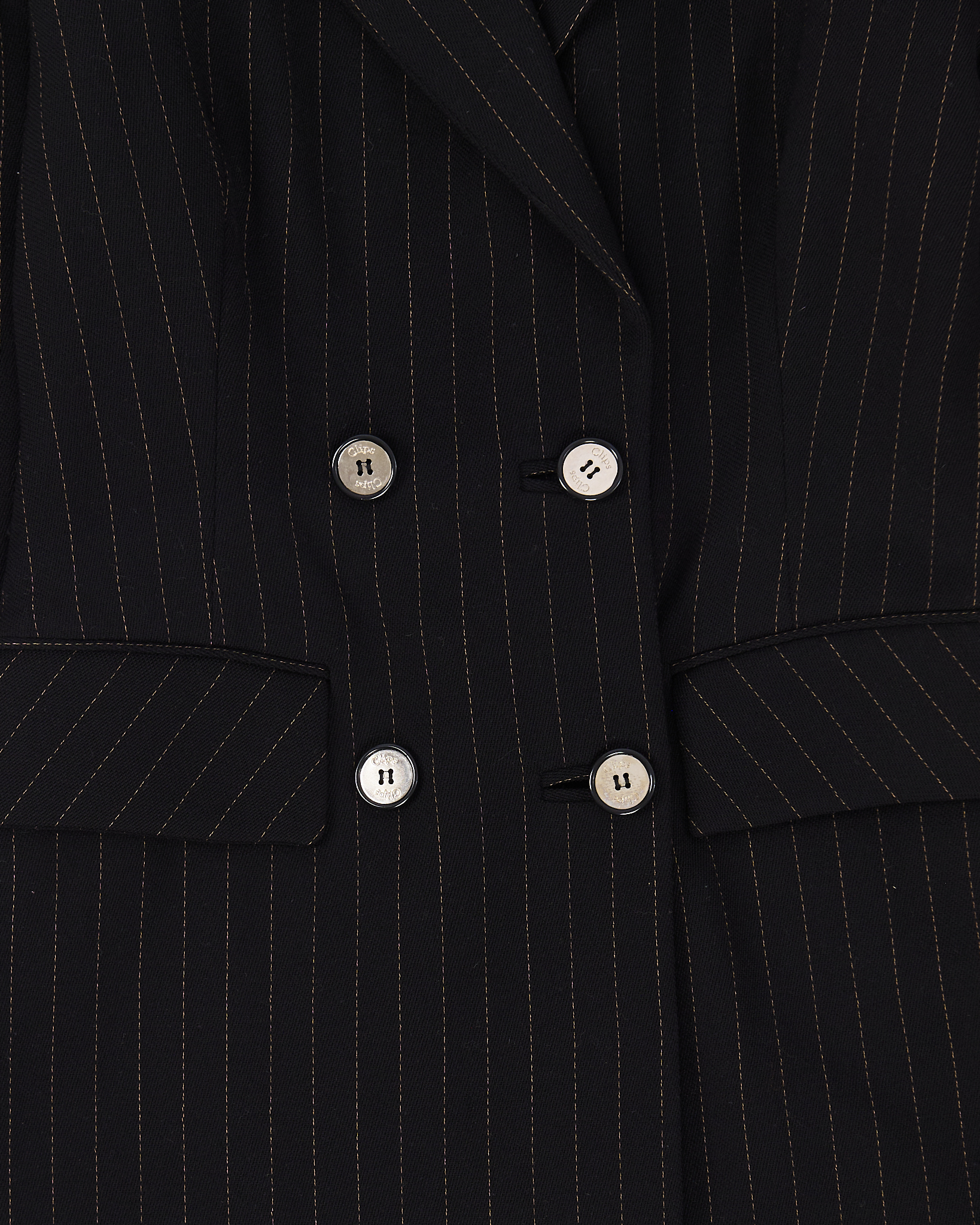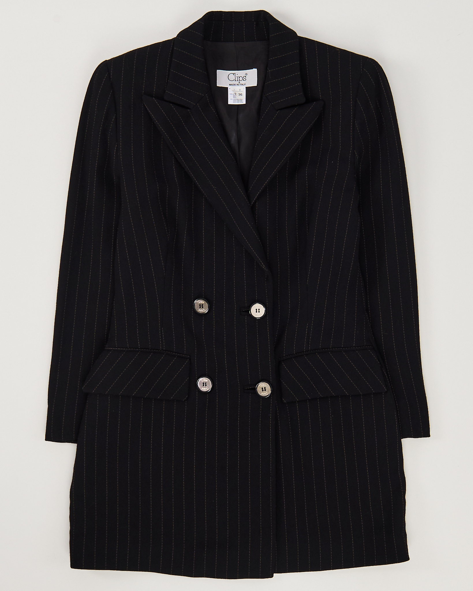 Приталенный жакет из шерсти. От итальянского бренда Clips. В классическом исполнении с двубортной застежкой, широкими лацканами и клапанами на карманах.