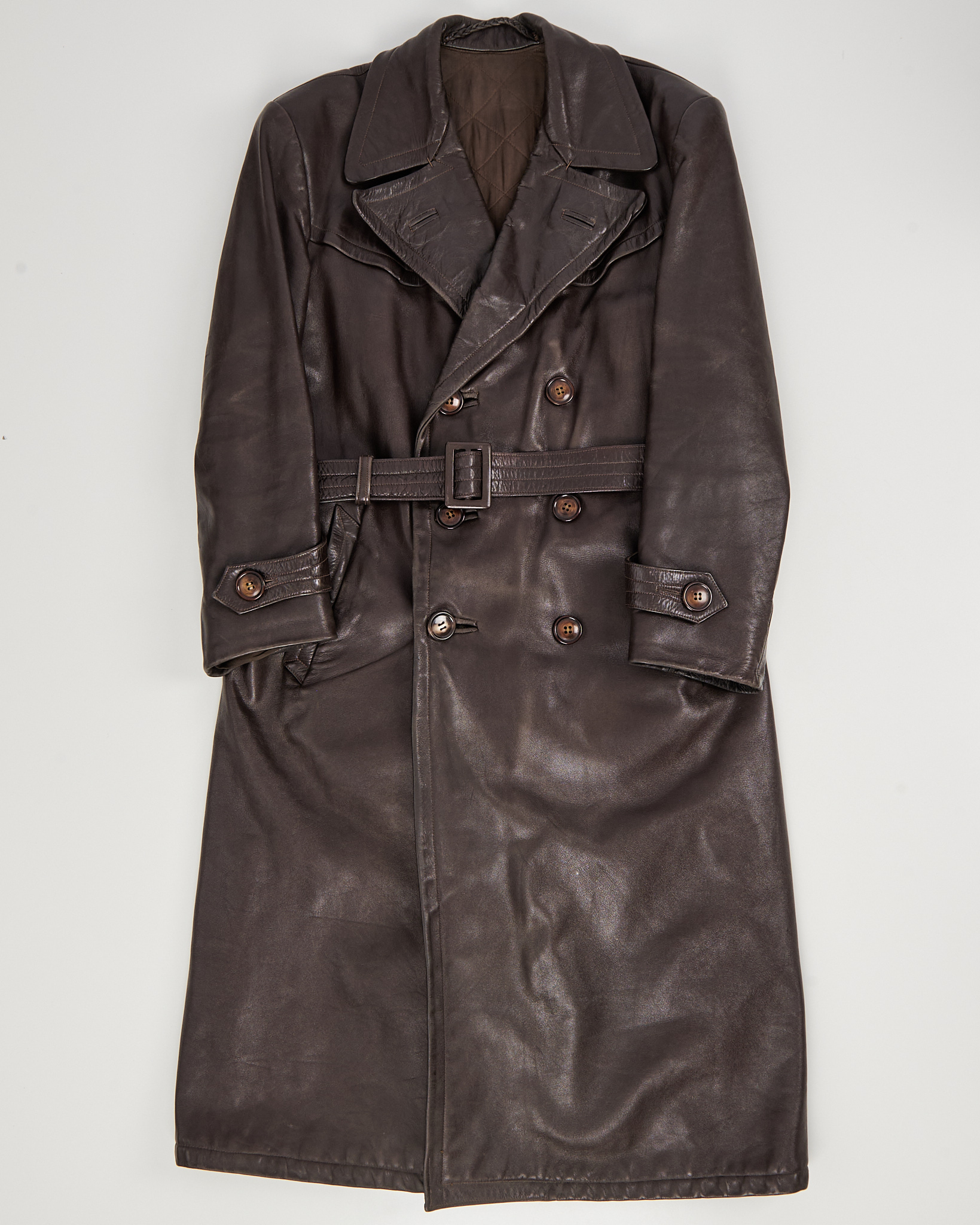 Классический двубортный крой, отложной воротник с лацканами. Утепленная подкладка из шерсти.