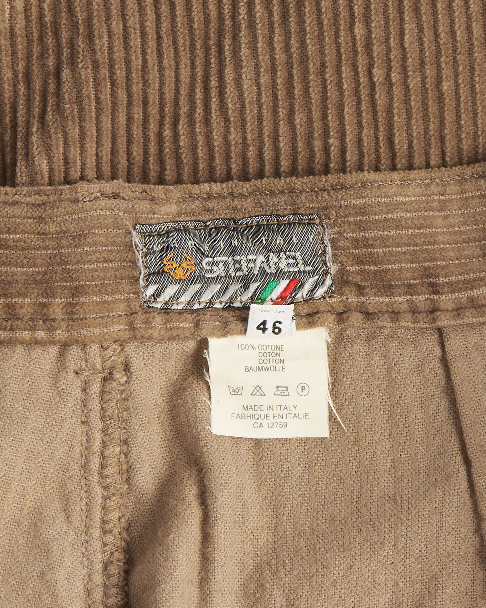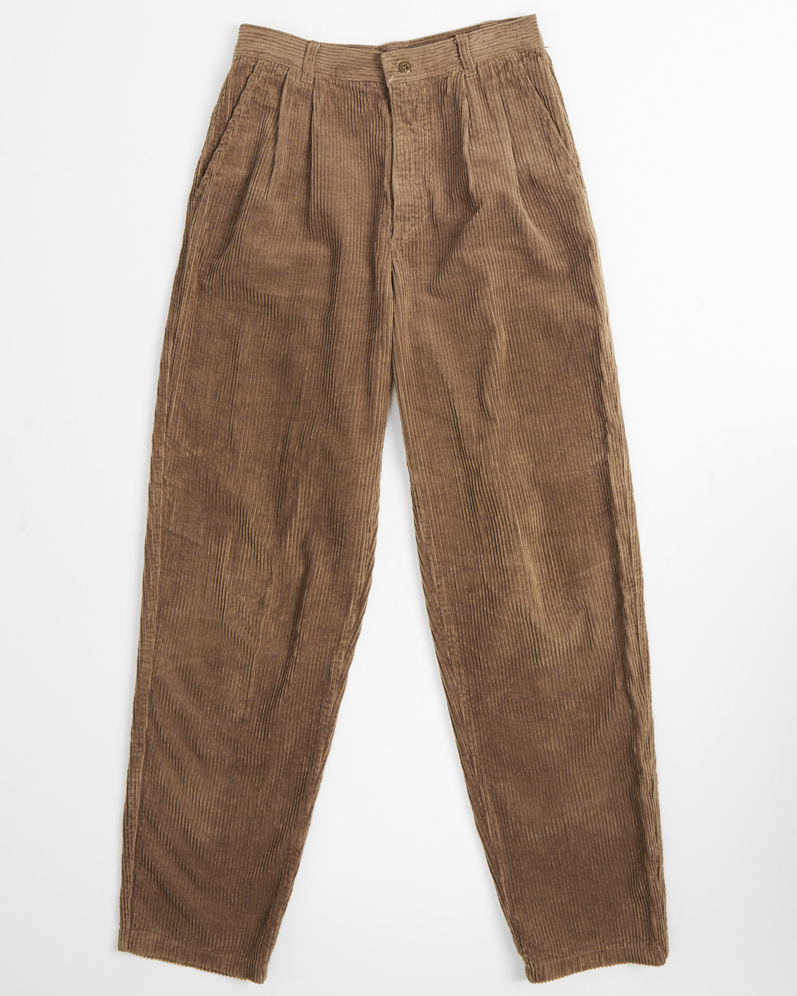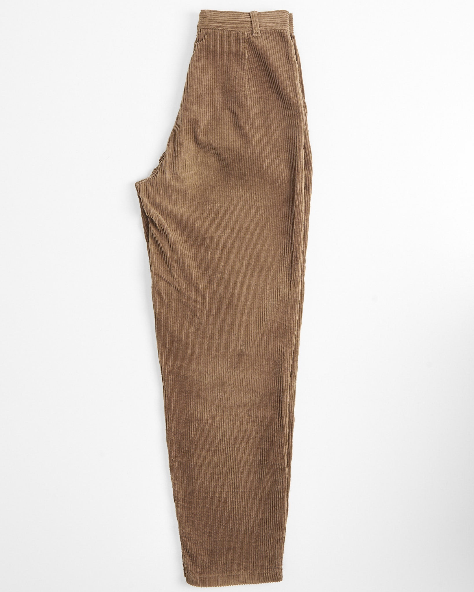 Брюки итальянского производства из 100% хлопка. Плотный материал в крупный рубчик, высокая посадка, свободный силуэт.