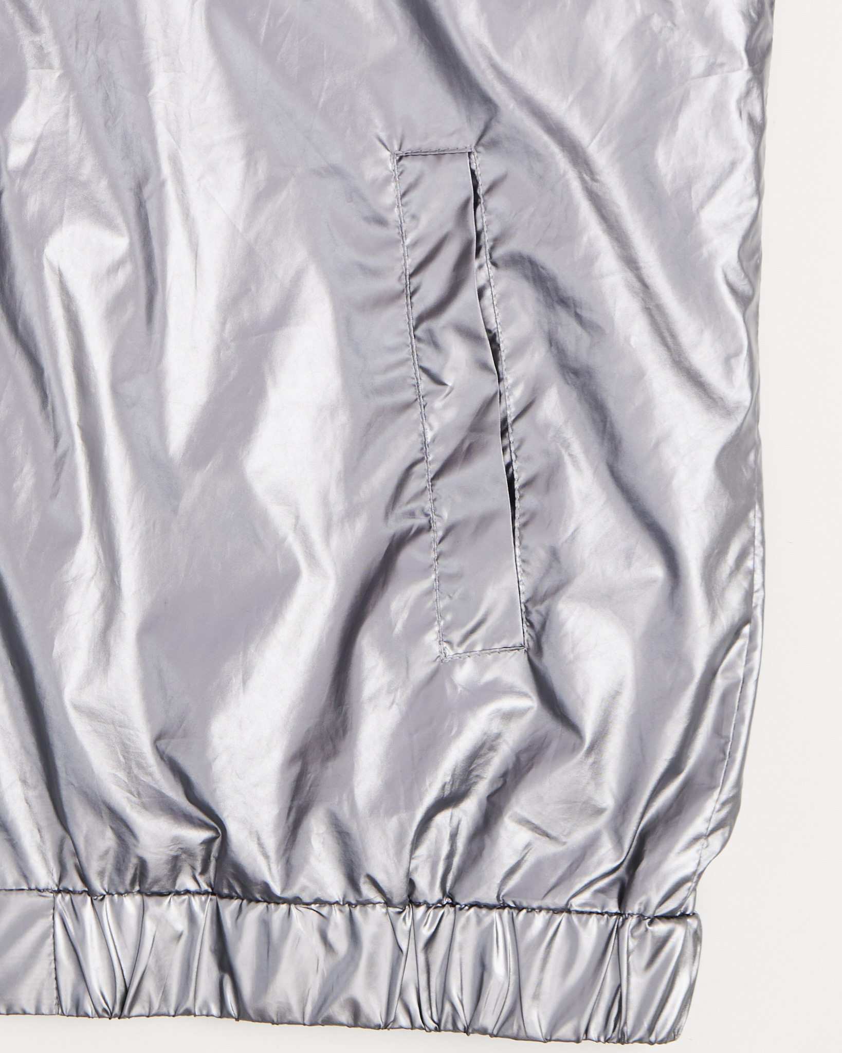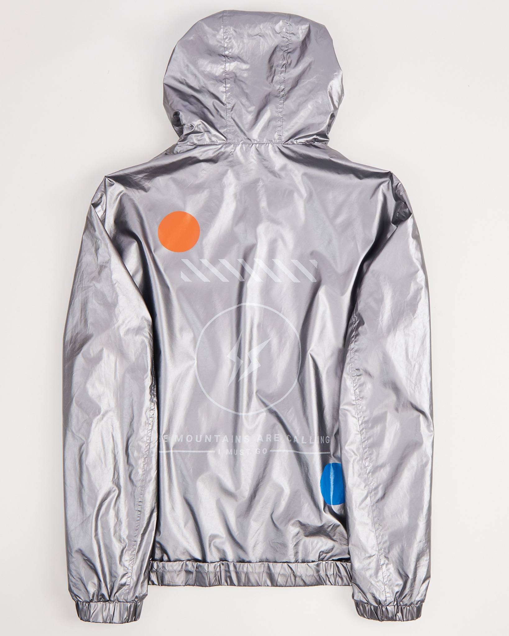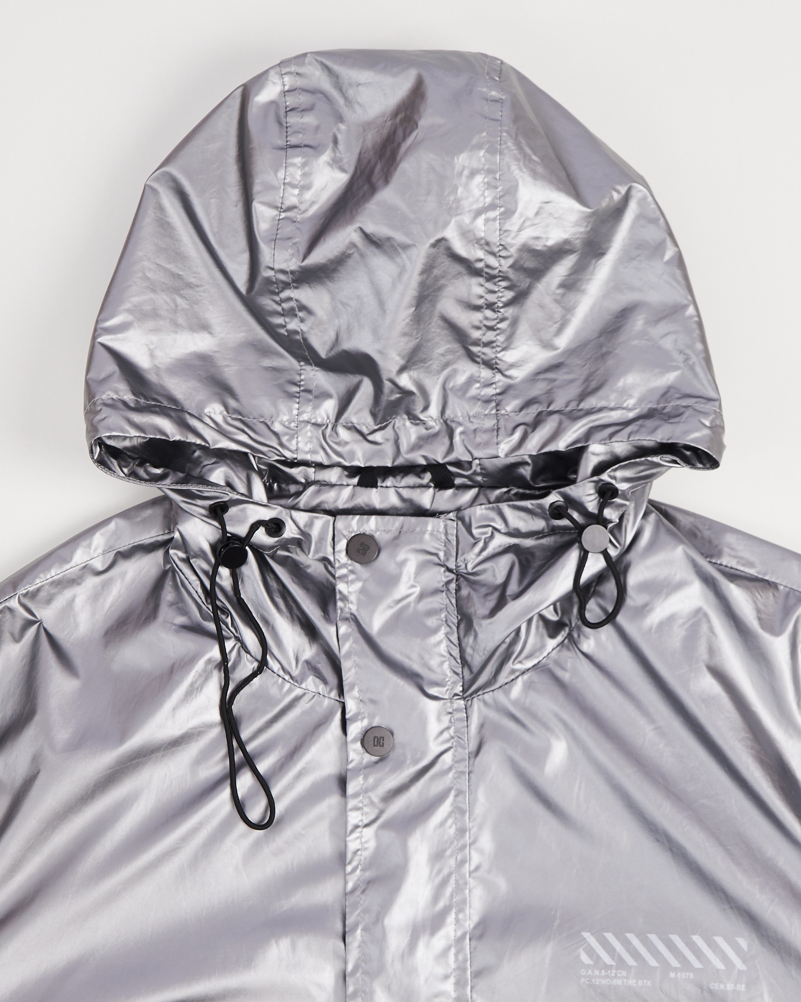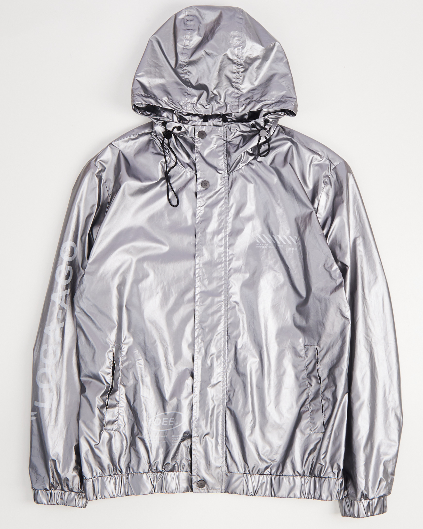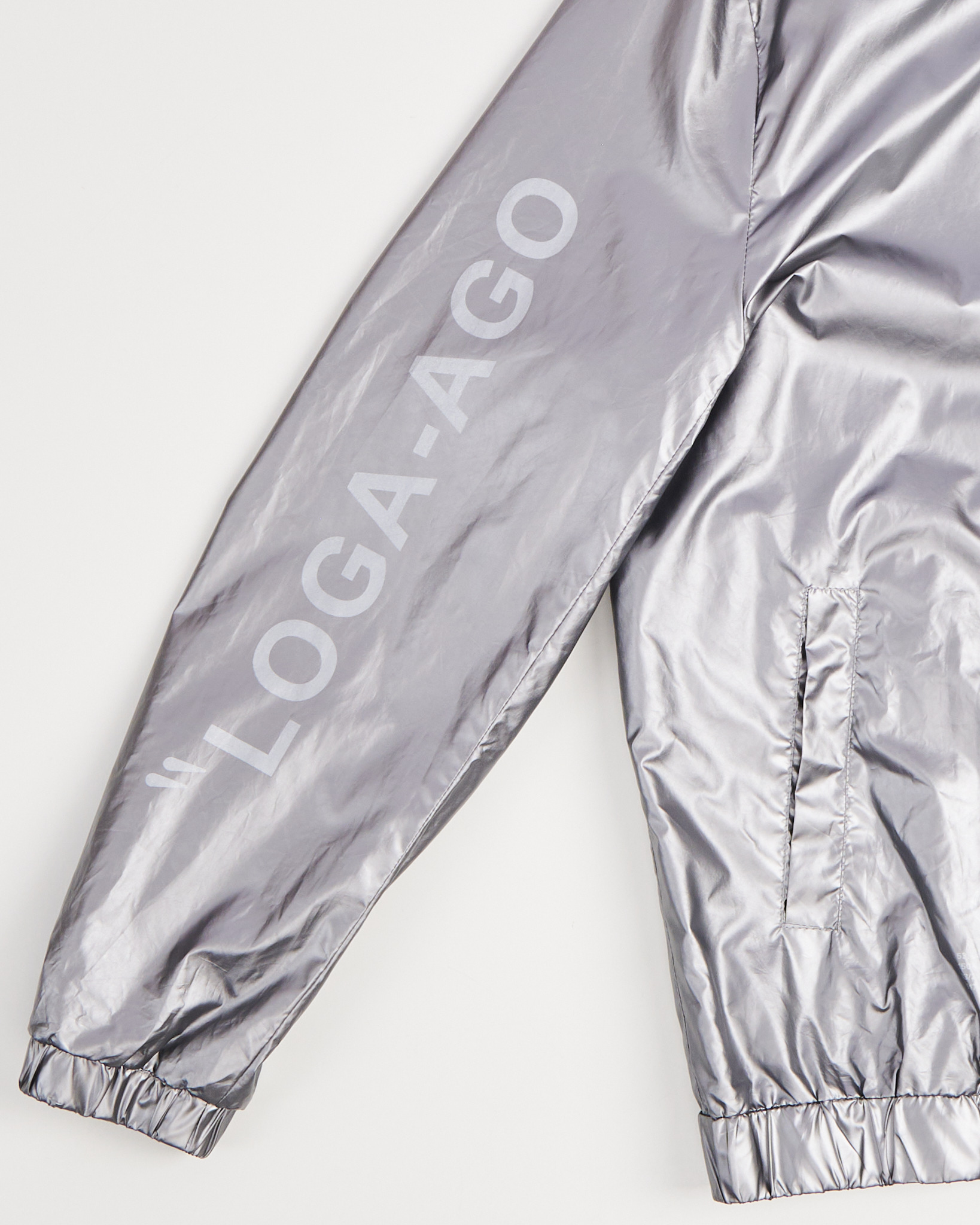 Ветровка Senior Style с принтом. Лёгкая ветровка в холодном серебристом оттенке. Свободная посадка, капюшон на кулиске, застёжка на кнопках и скрытая молния спереди. Функциональные карманы по бокам и эластичный низ на резинке. Графичный принт на спине и надписи на рукавах придают акцент.