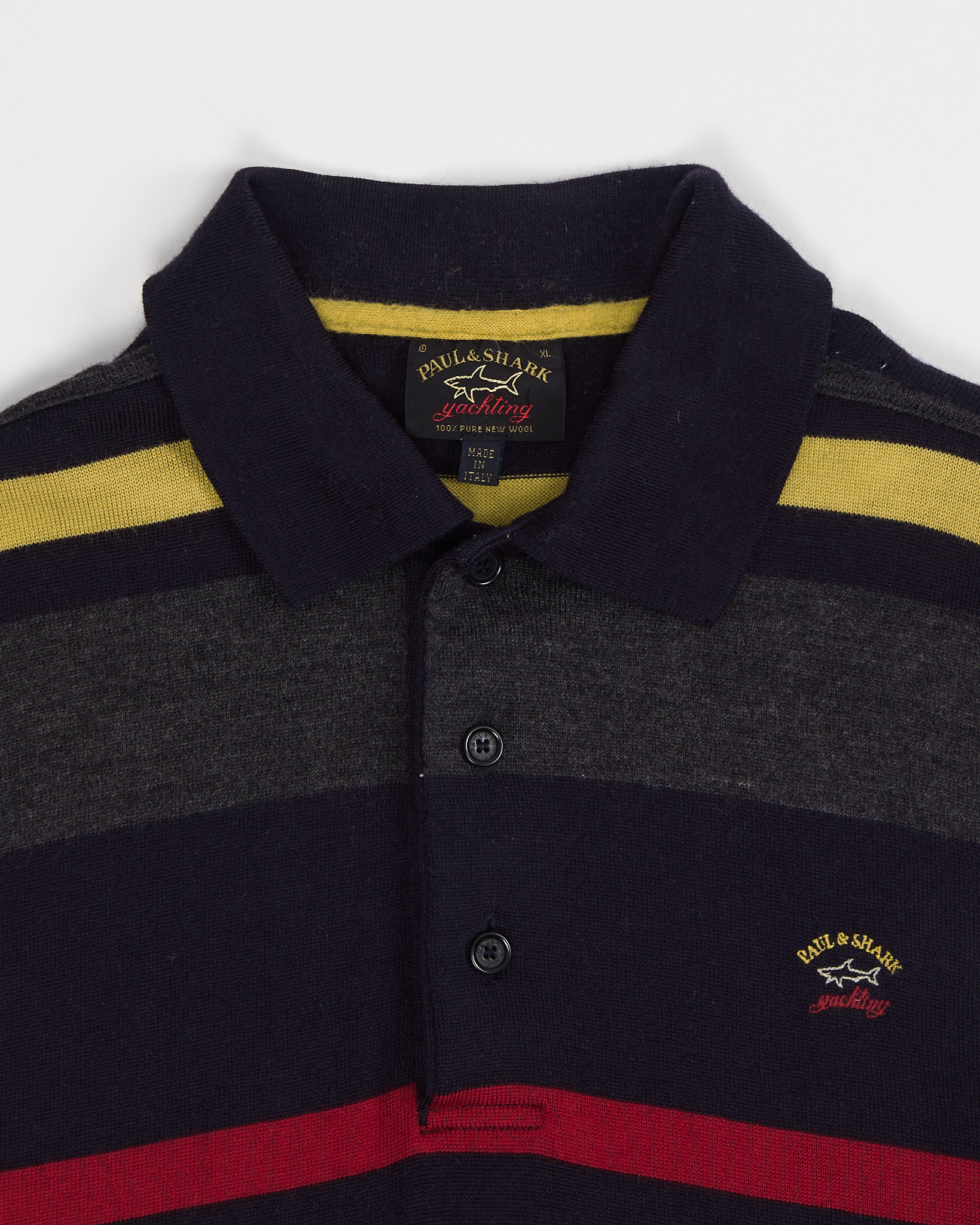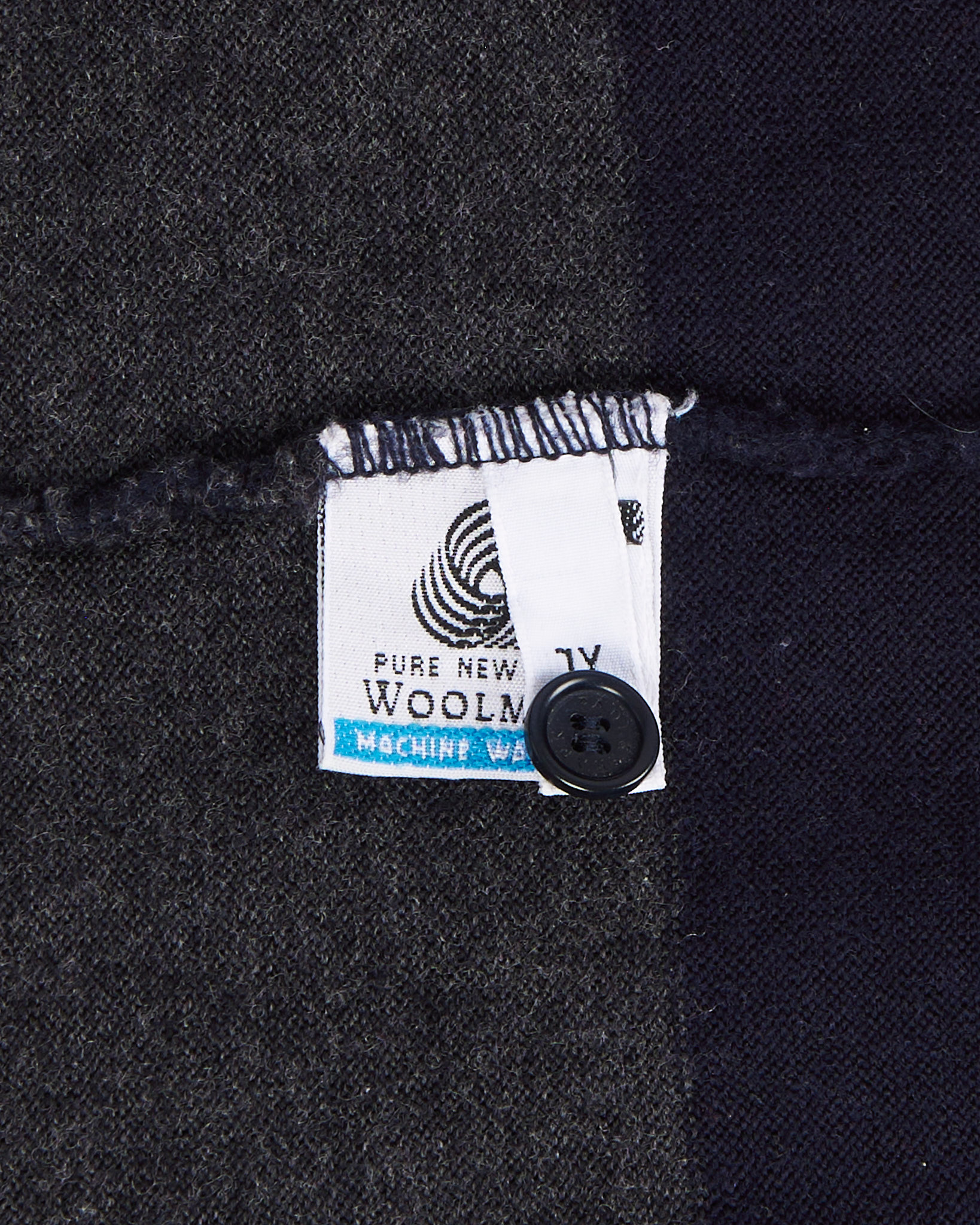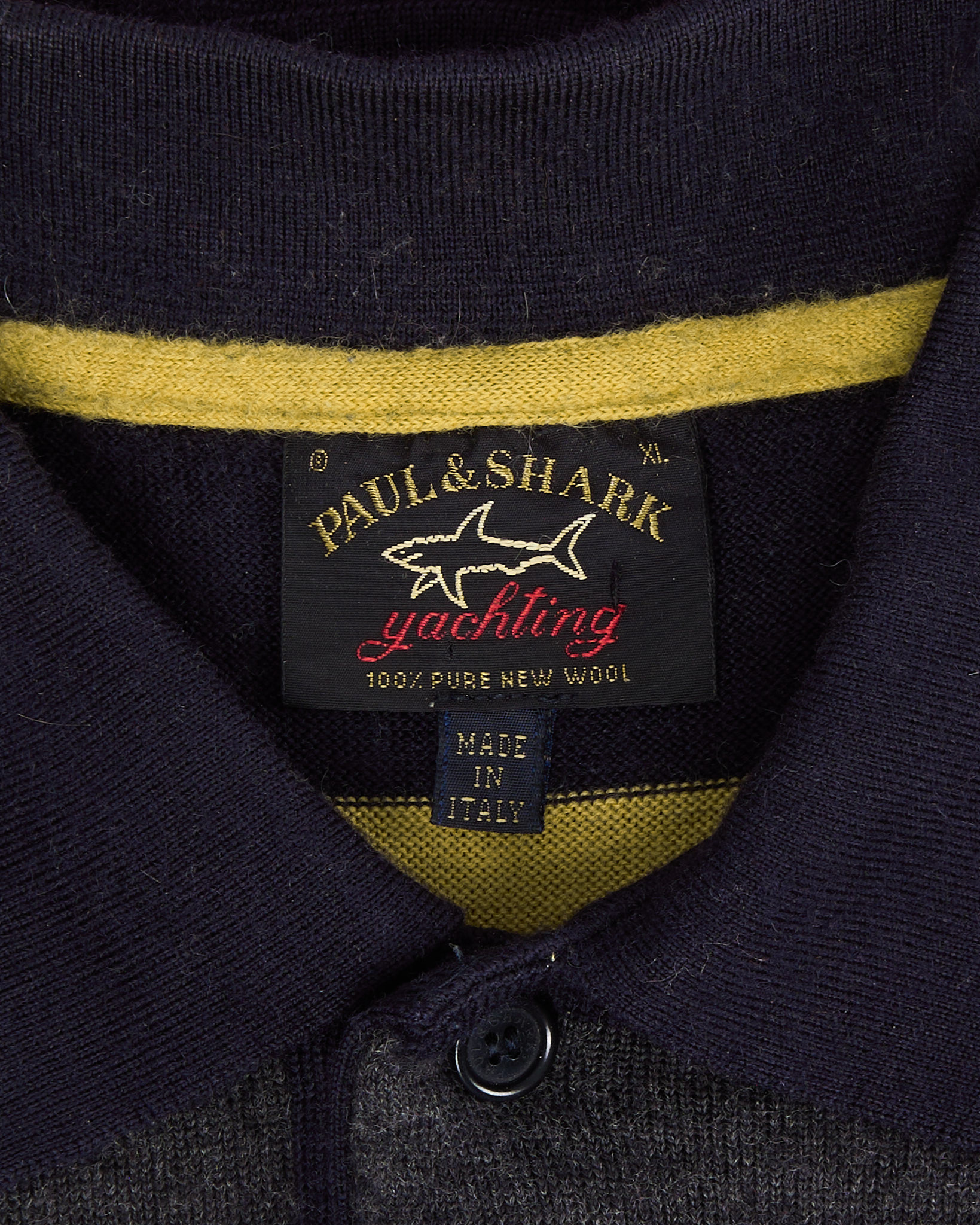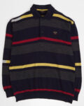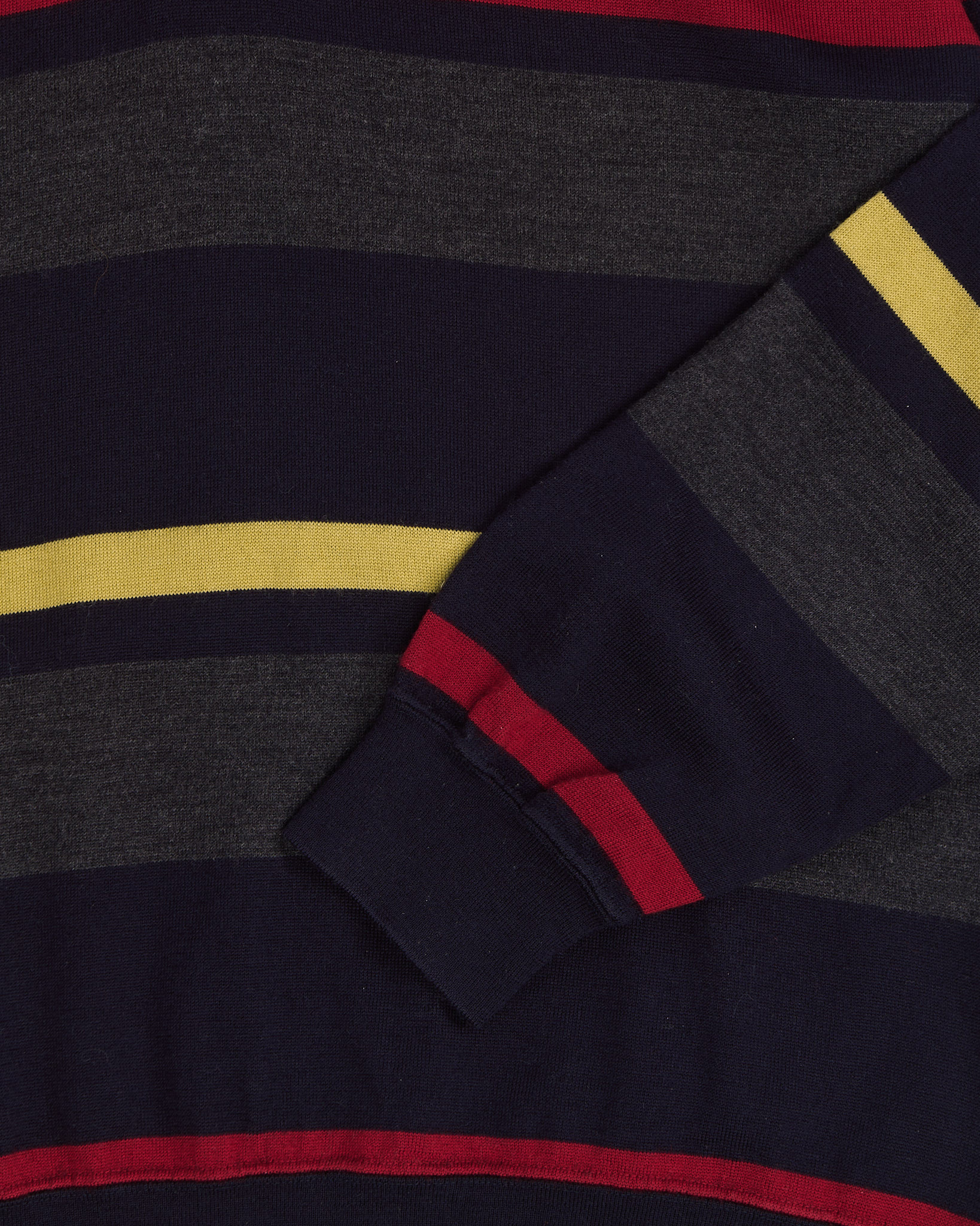 Винтажный джемпер из 100% шерсти. Посадка прямая, хорошо держит форму по плечам и корпусу. Контрастные полосы и фирменная вышивка.