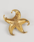 Брошь из металла золотистого оттенка с вставками эмали в синих и зелёных тонах. Надёжная посадка за счёт прочной застёжки. Мозаичный рисунок из разноцветных сегментов создаёт яркий акцент.