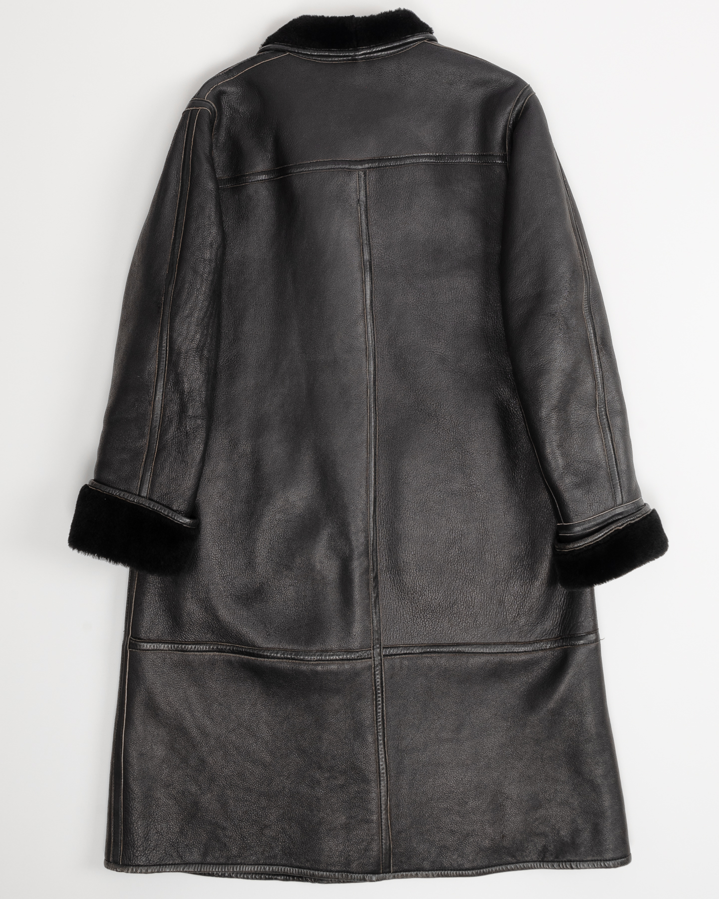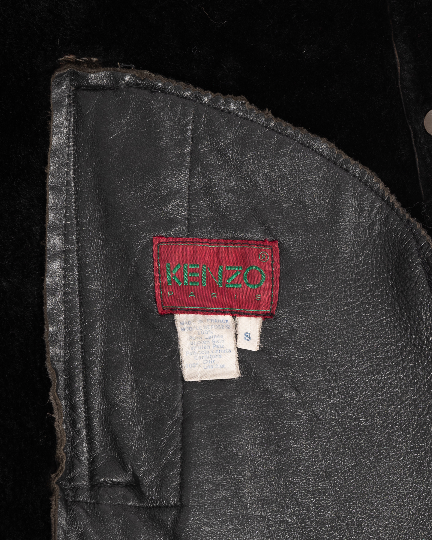 Винтажная дублёнка Kenzo Paris из плотной натуральной кожи с мягкой меховой отделкой. Посадка прямая и уверенная, длина закрывает бедра и хорошо держит форму. Кожа плотная, гладкая на ощупь, мех внутри густой и приятный при контакте с кожей.