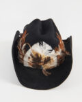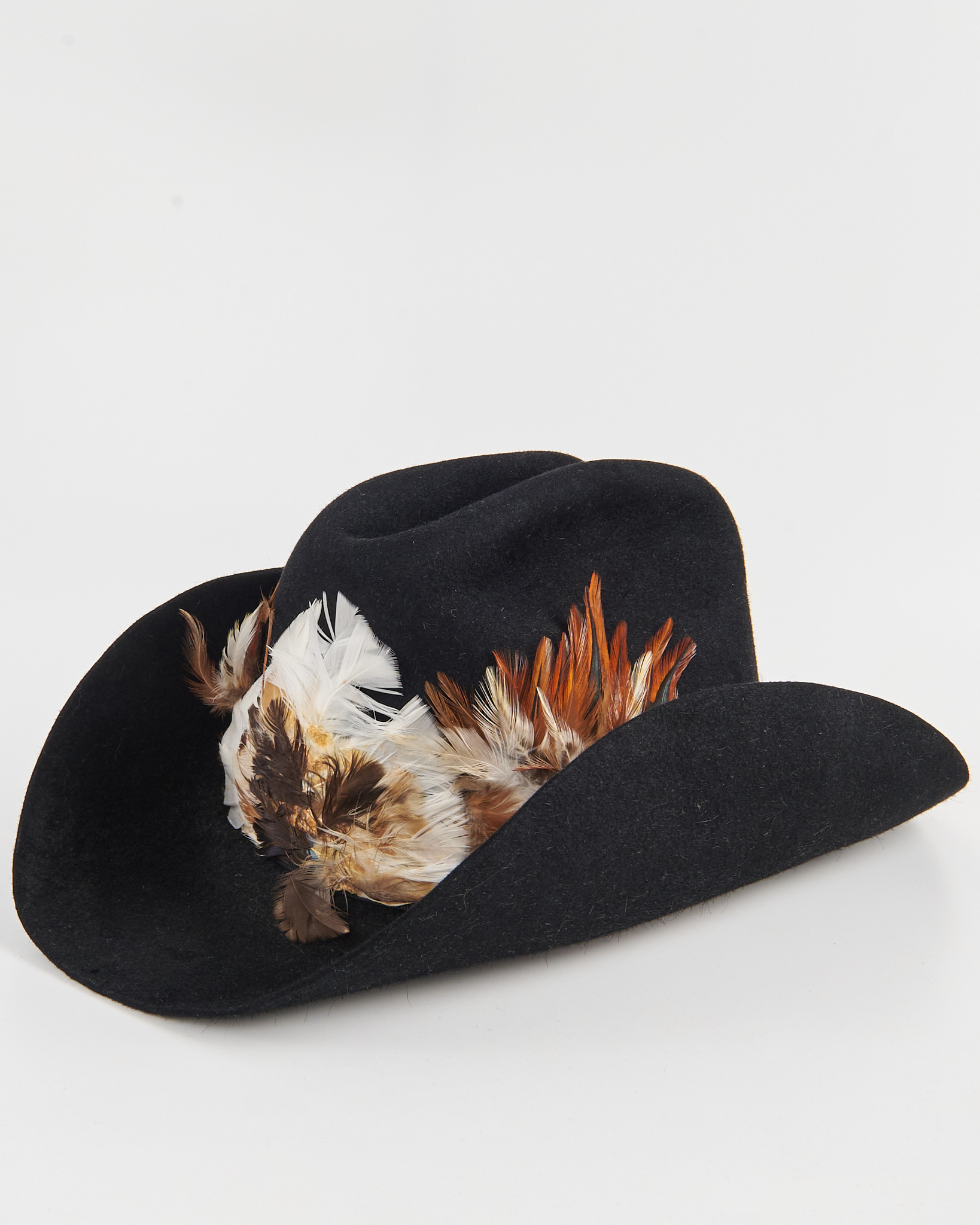Ковбойская шляпа Marlboro из фетра с декоративными перьями. Плотный фетр держит форму, шляпа сохраняет посадку за счёт продуманной конструкции тульи и полей. Декор из натуральных перьев, нутренняя отделка с фирменной маркировкой Marlboro.