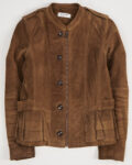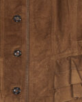Кожаная куртка в стиле бохо. Куртка выполнена из мягкой натуральной кожи тёплого коричневого оттенка. Посадка аккуратно подчёркивает силуэт за счёт рельефных швов и регулируемых ремешков на талии. Функциональные карманы с декоративными клапанами. Металлическая молния и крупные пуговицы.