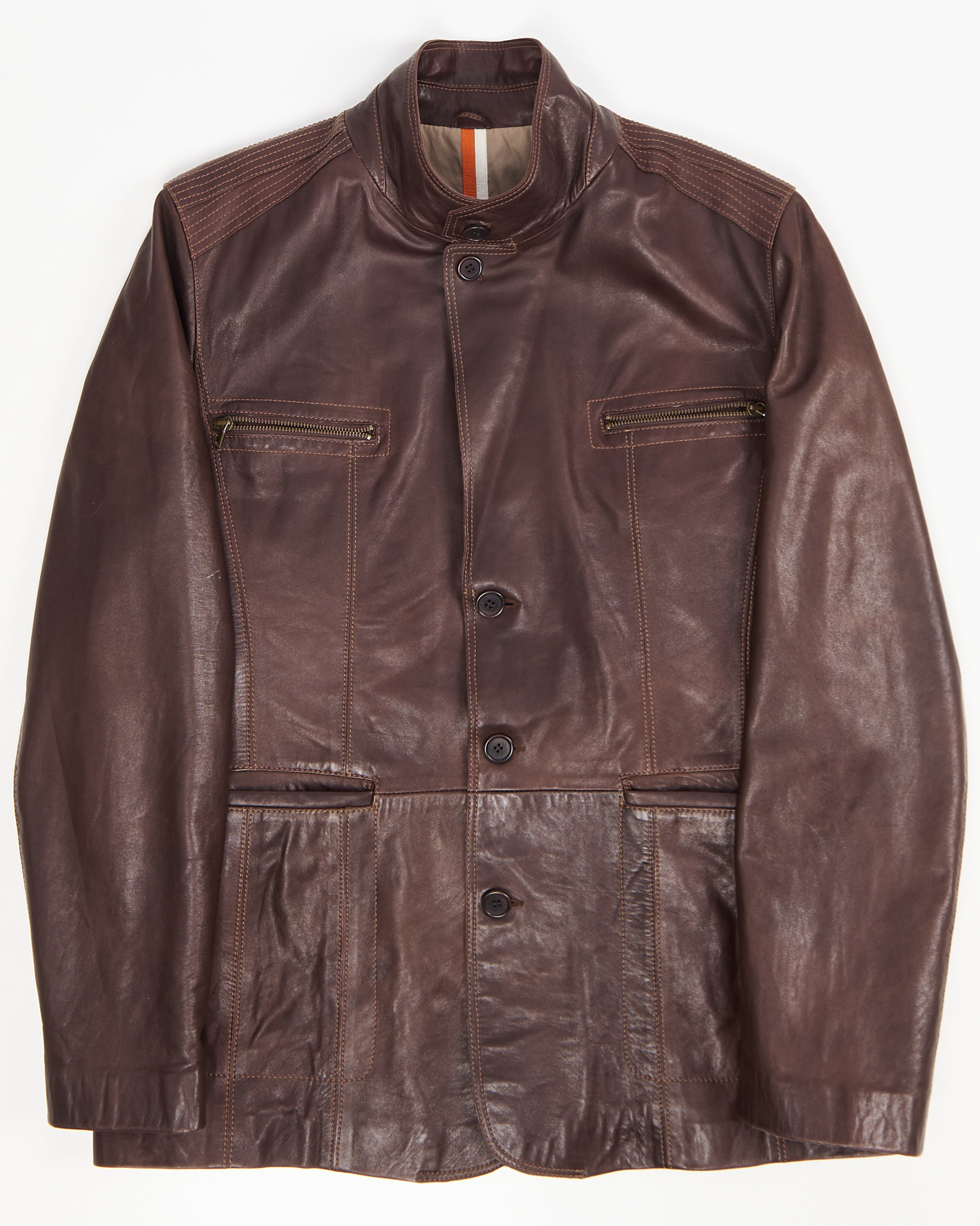 Куртка из плотной натуральной кожи глубокого коричневого оттенка от турецкого бренда Kircilar. Посадка прямая, с четкой линией плеч. Контрастная строчка, функциональные молнии и продуманная внутренняя отделка.