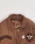 Куртка из 100% натуральной замши. Посадка свободная, с мягкой линией плеча и плотной резинкой по низу. Декоративные нашивки, карманы по бокам и акцентная фурнитура. Съёмные рукава на молнии, благодаря которым можно носить куртку как жилет.