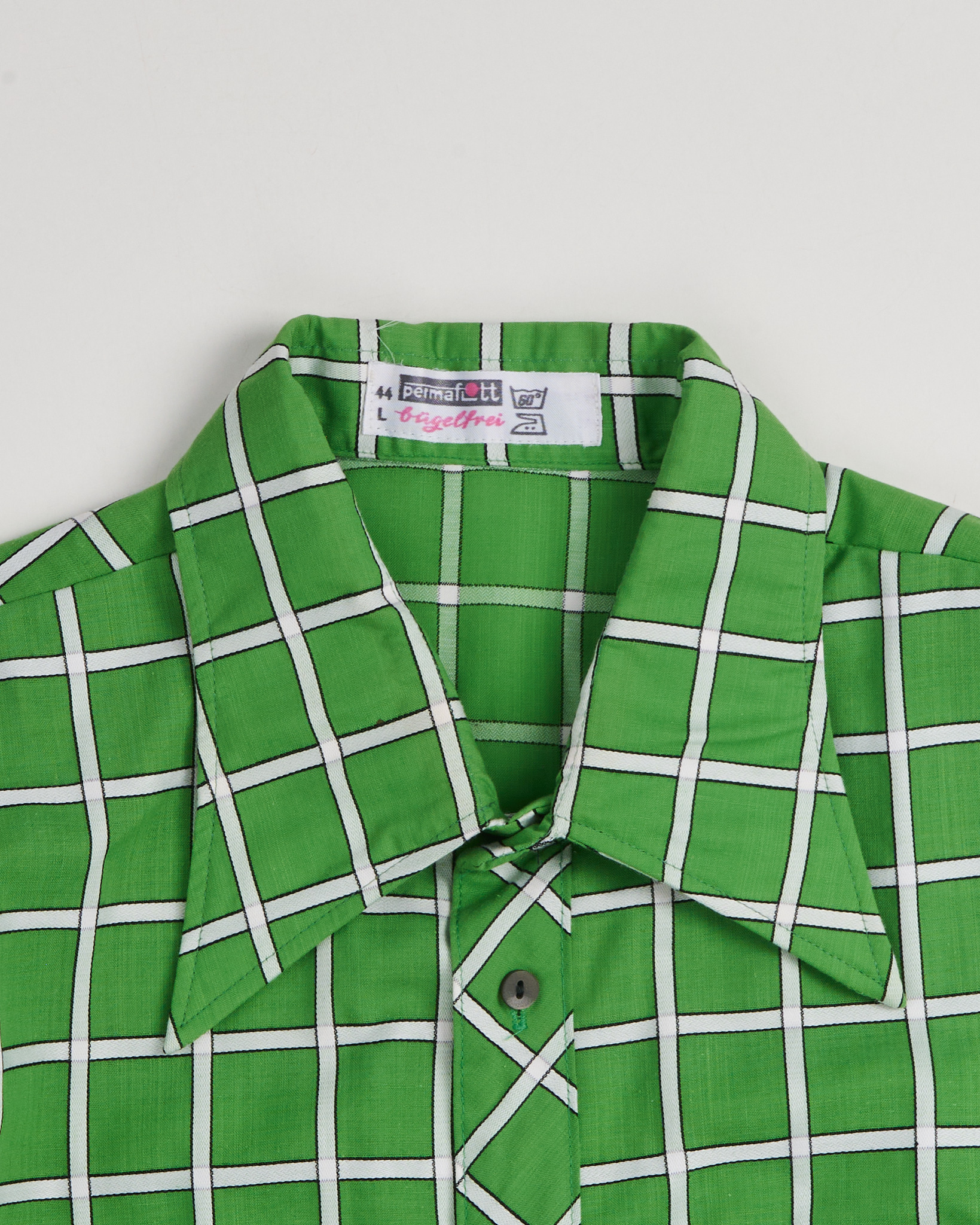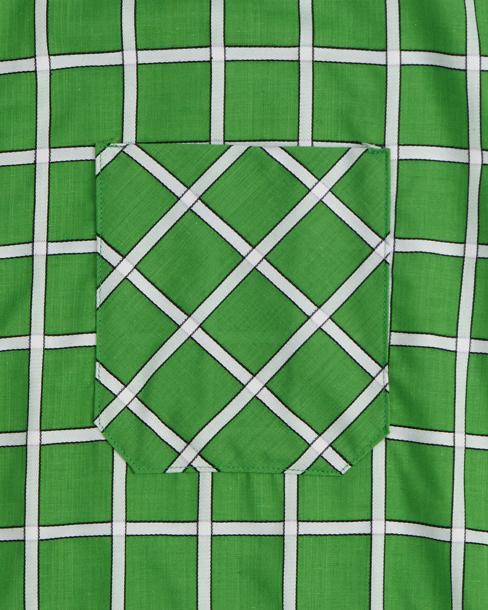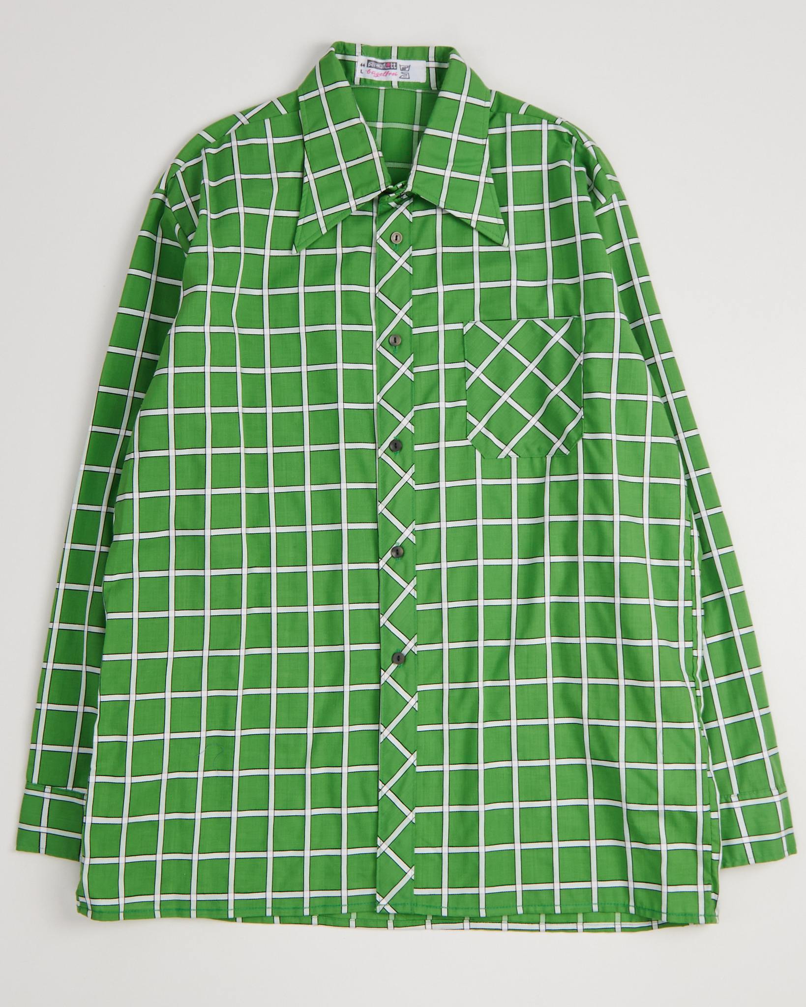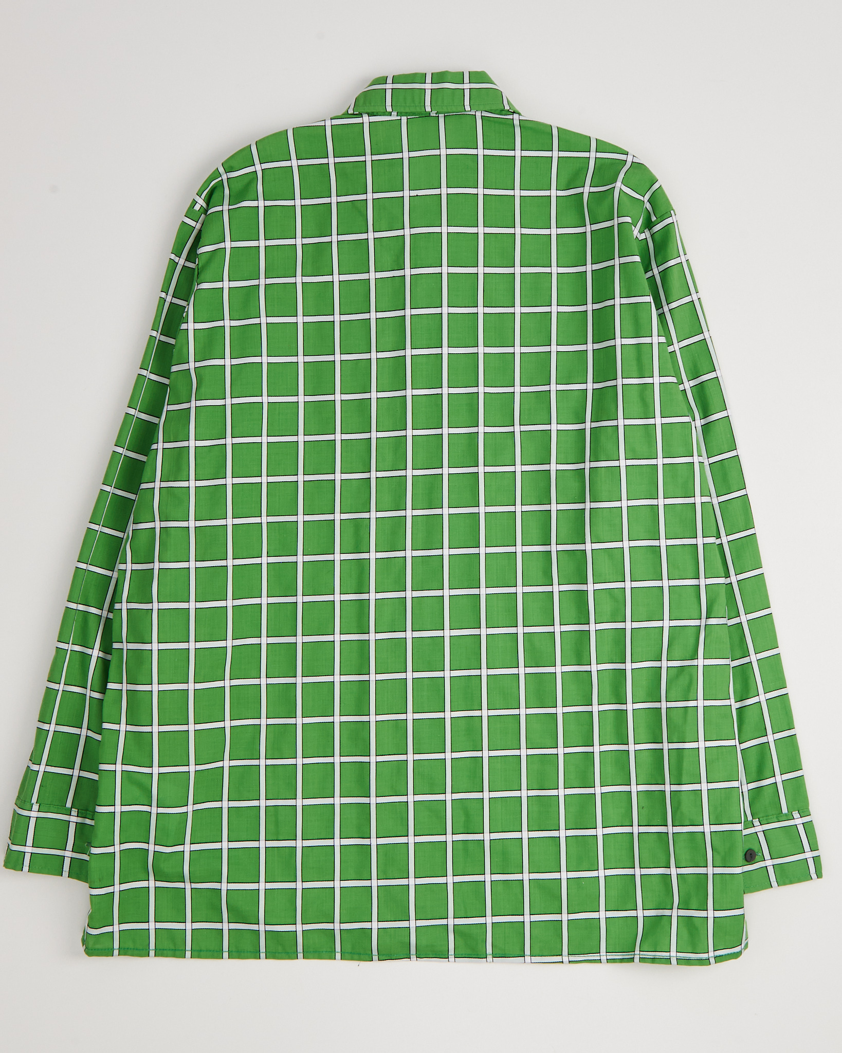 Винтажная рубашка в выразительную зеленую клетку. Крой свободный, слегка оверсайз. Нагрудный карман.