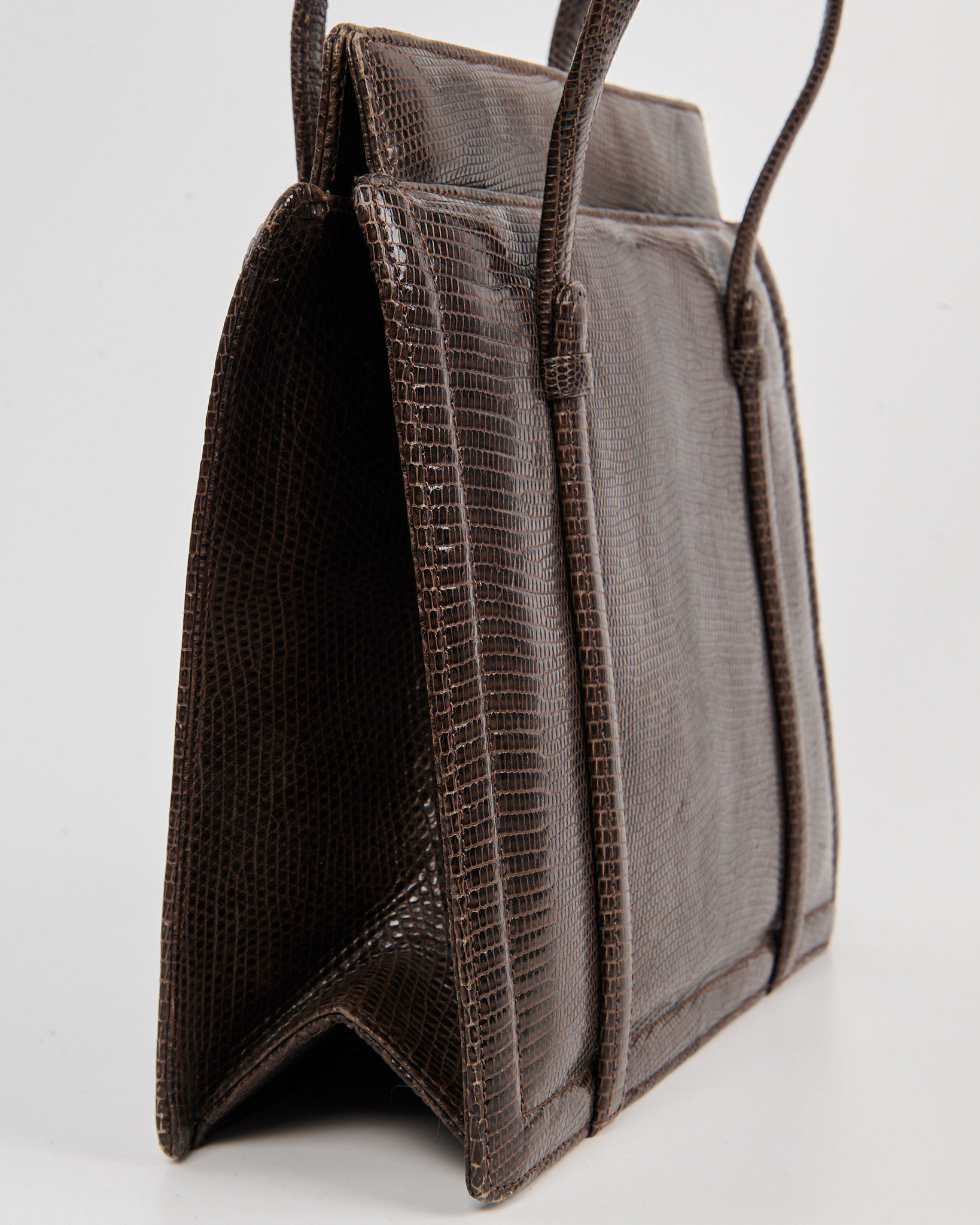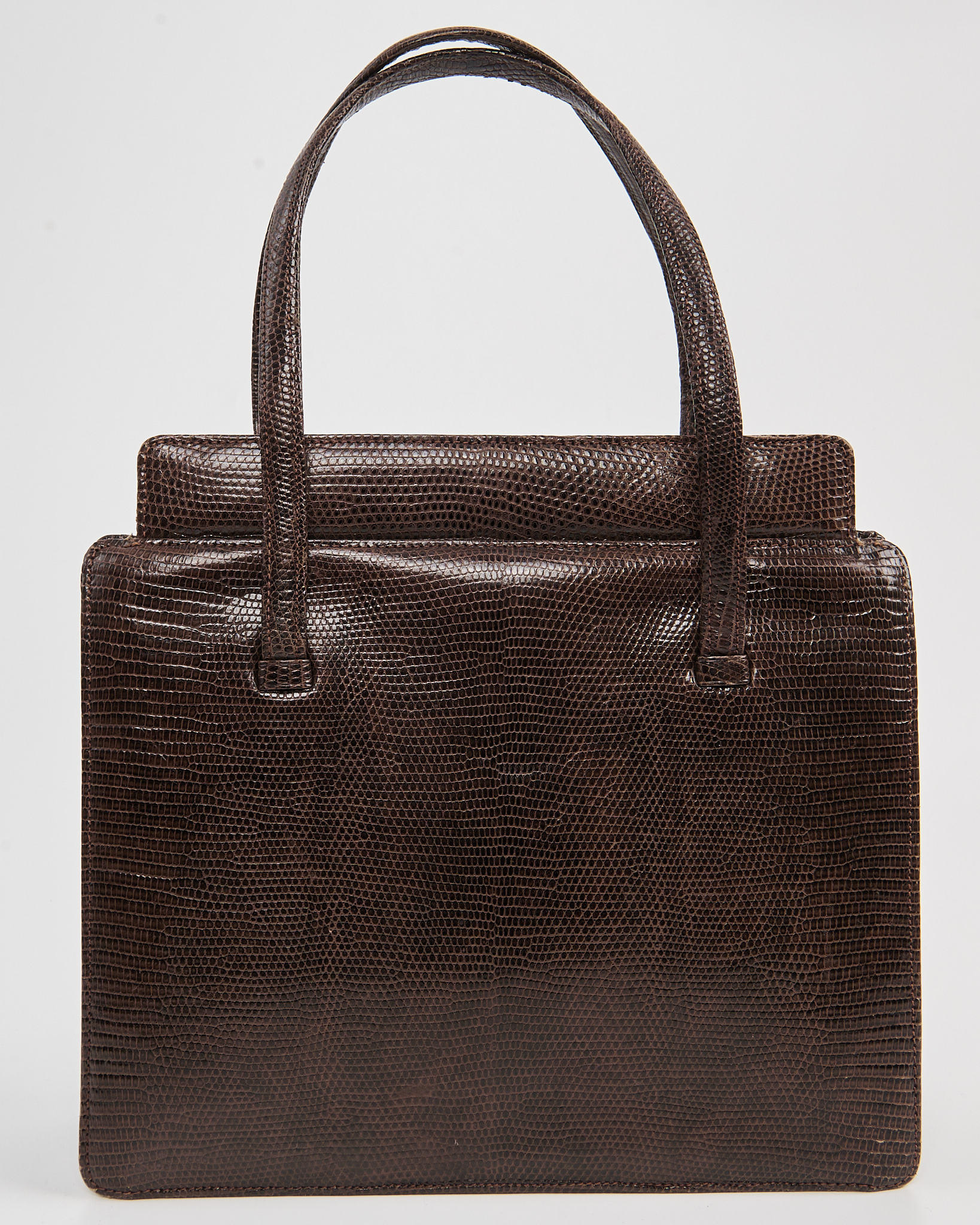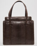 Сумка из тиснёной кожи насыщенного коричневого оттенка. Прочные ручки, несколько отделений внутри, в комплекте небольшое зеркало.