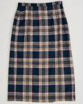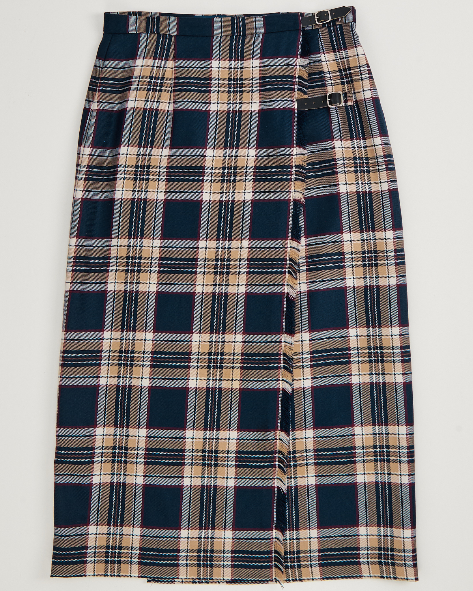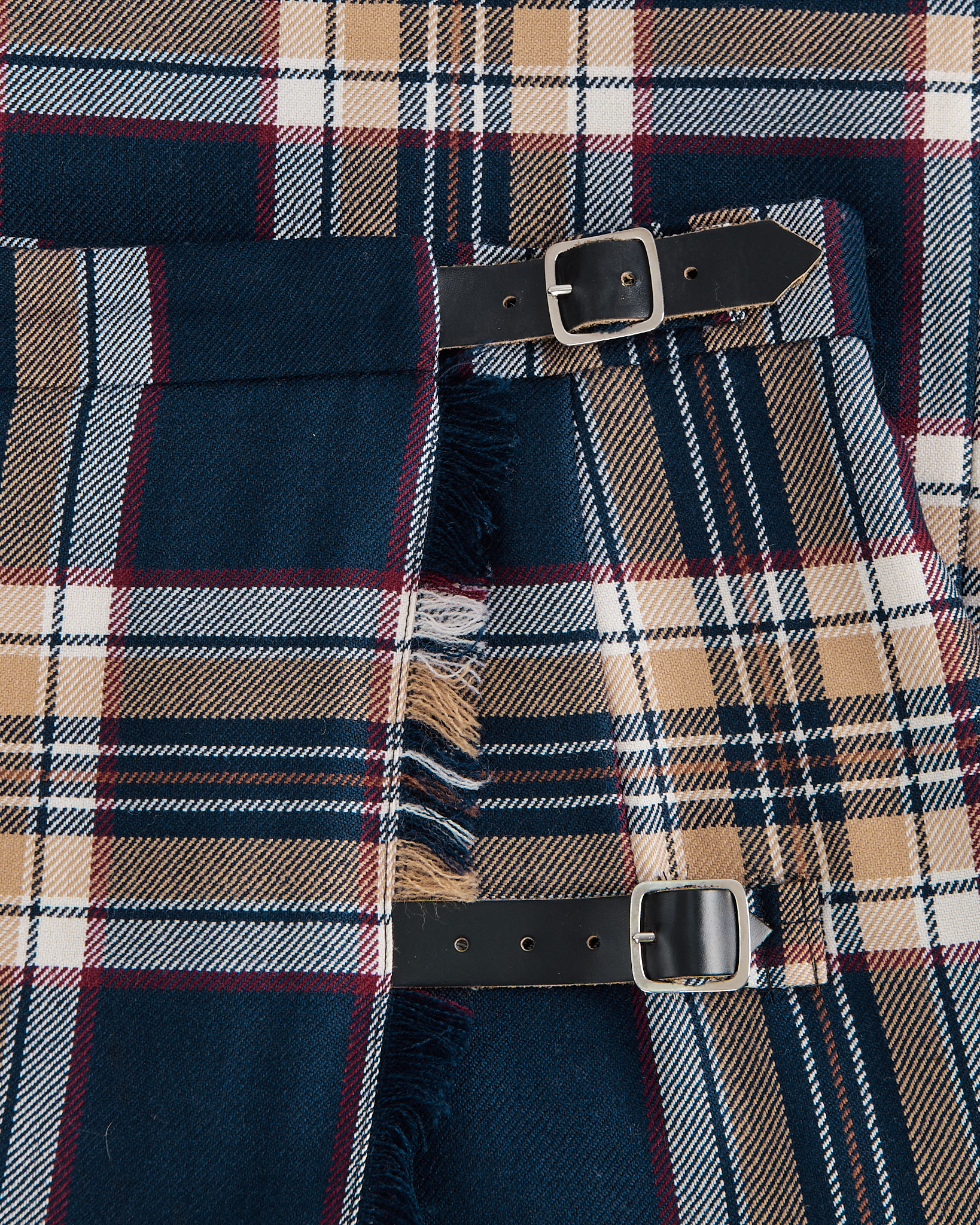Юбка с запахом Classic Horse. Юбка из 100% шерсти, посадка на талии регулируется ремешками. Крупная клетка в глубоких оттенках синего придаёт акцент.