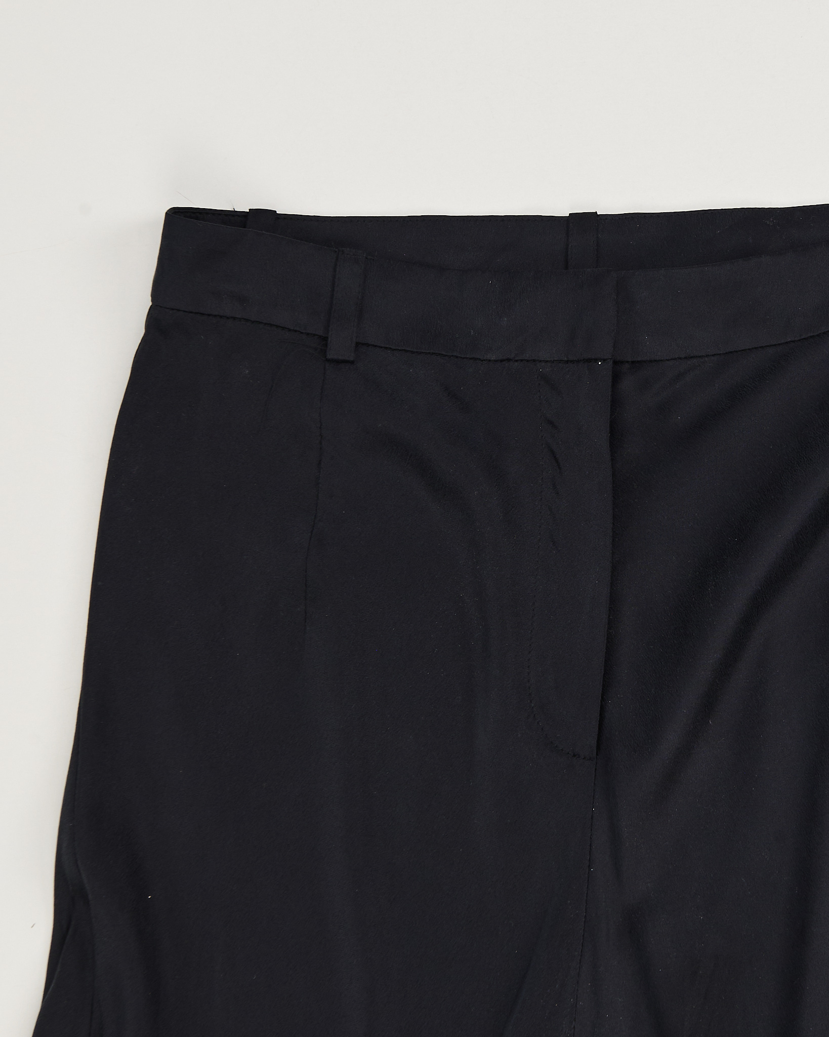 Юбка из гладкой струящейся ткани глубокого чёрного цвета. Высокая линия талии, акцентная плиссировка внизу. Удобная застежка на молнию.