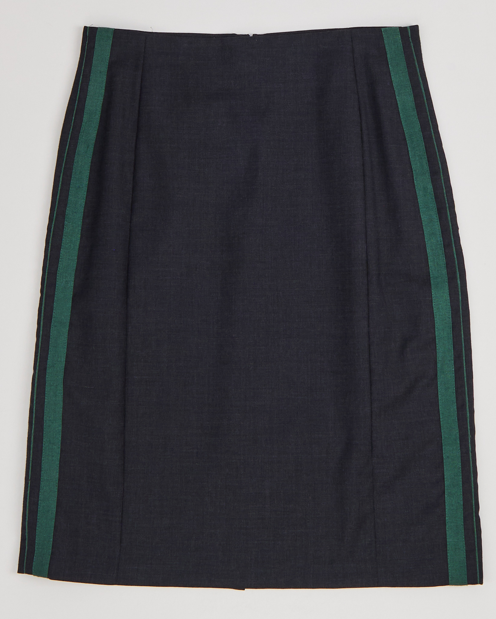 Юбка бренда A & S Raiserjager из шерсти. Прямого силуэта с зелеными лампасами по бокам.
