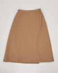 Юбка из 100% шерсти в тёплом карамельном оттенке. Посадка высокая, линия талии аккуратная, силуэт раскрывается мягкой трапецией. Акцентная плиссировка на передней части.
