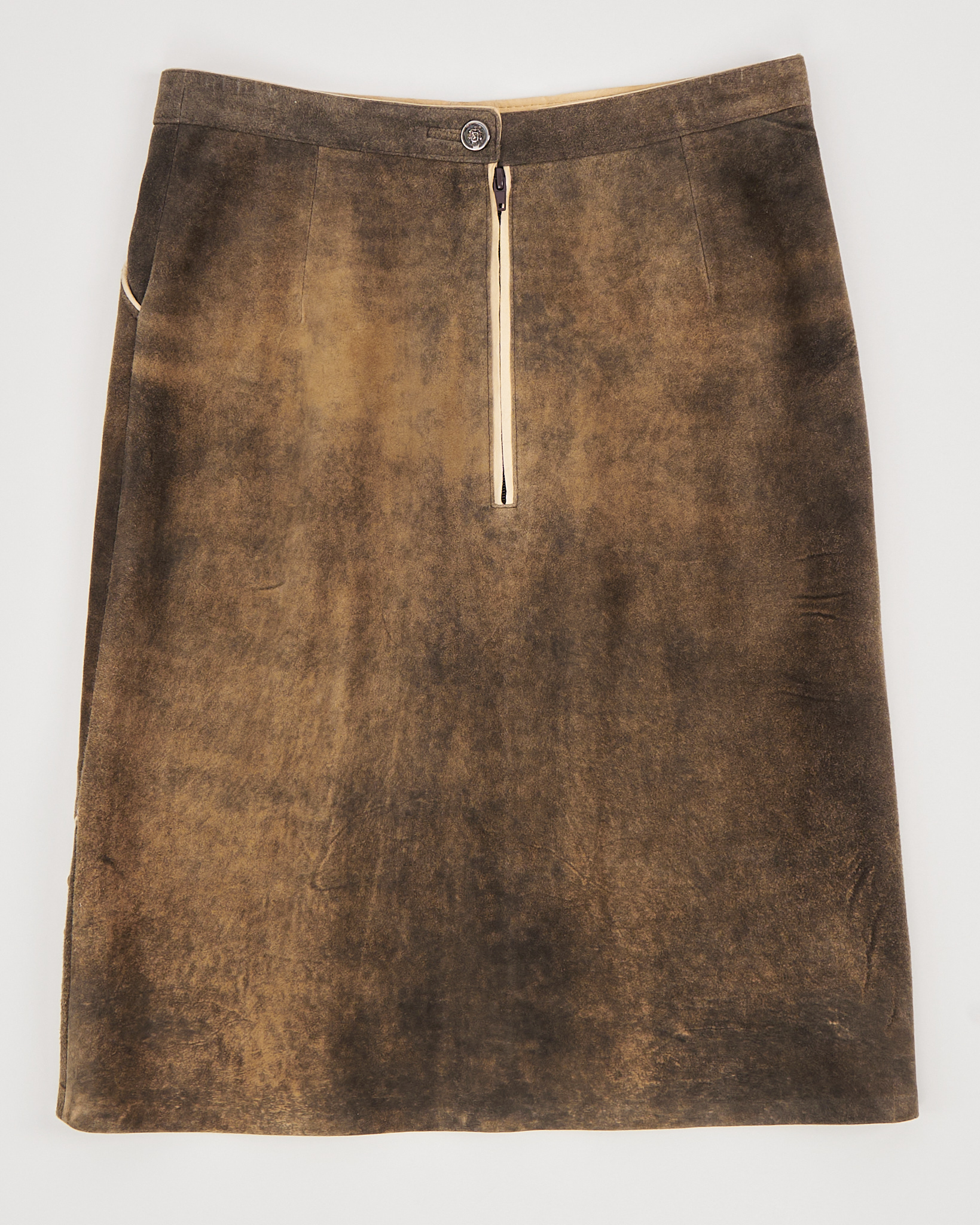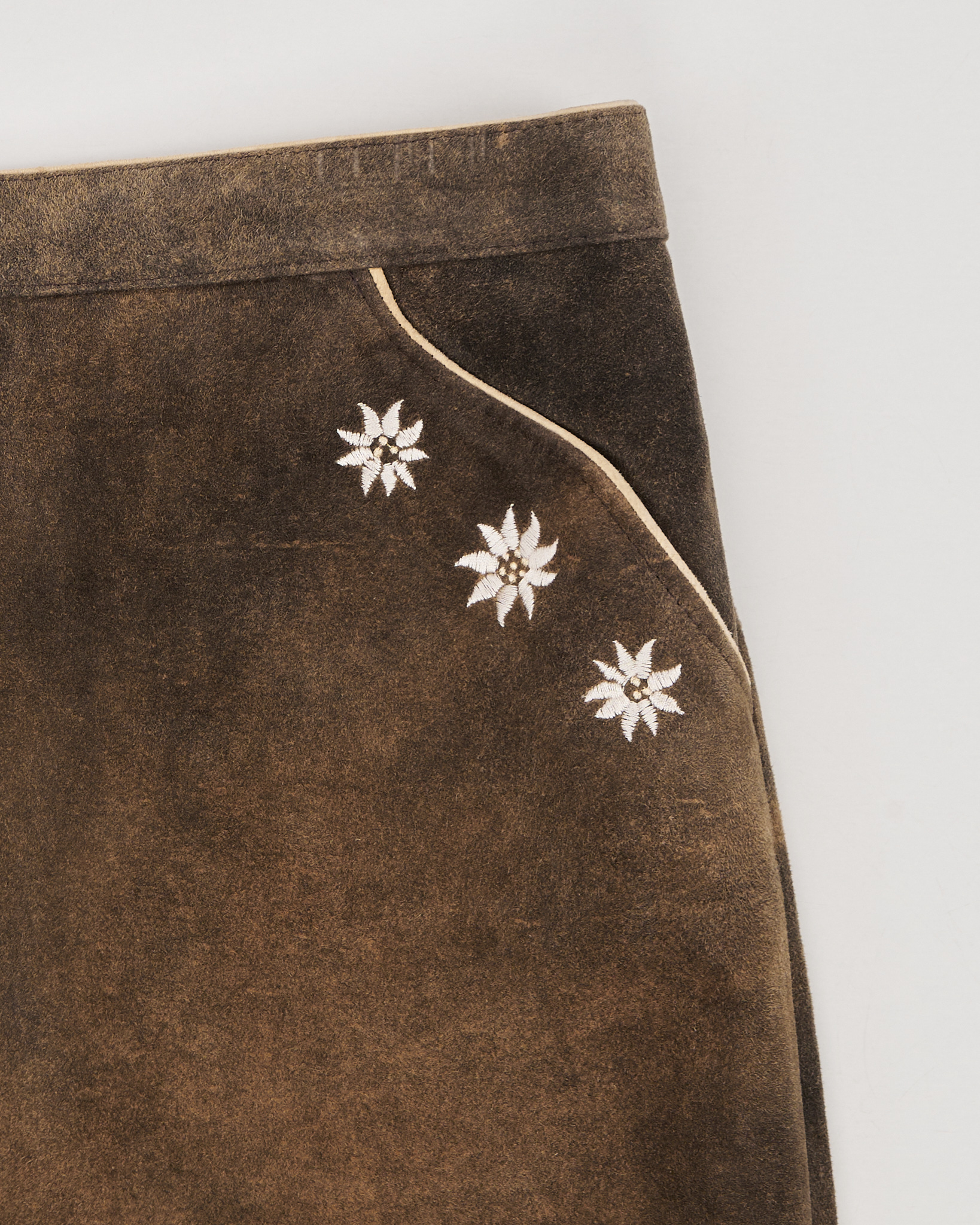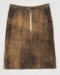 Замшевая юбка с вышивкой в этническом стиле. Прямая посадка, декоративная вышивка и орнамент создают акцент. Застёжка на молнию сзади, функциональные карманы по бокам.
