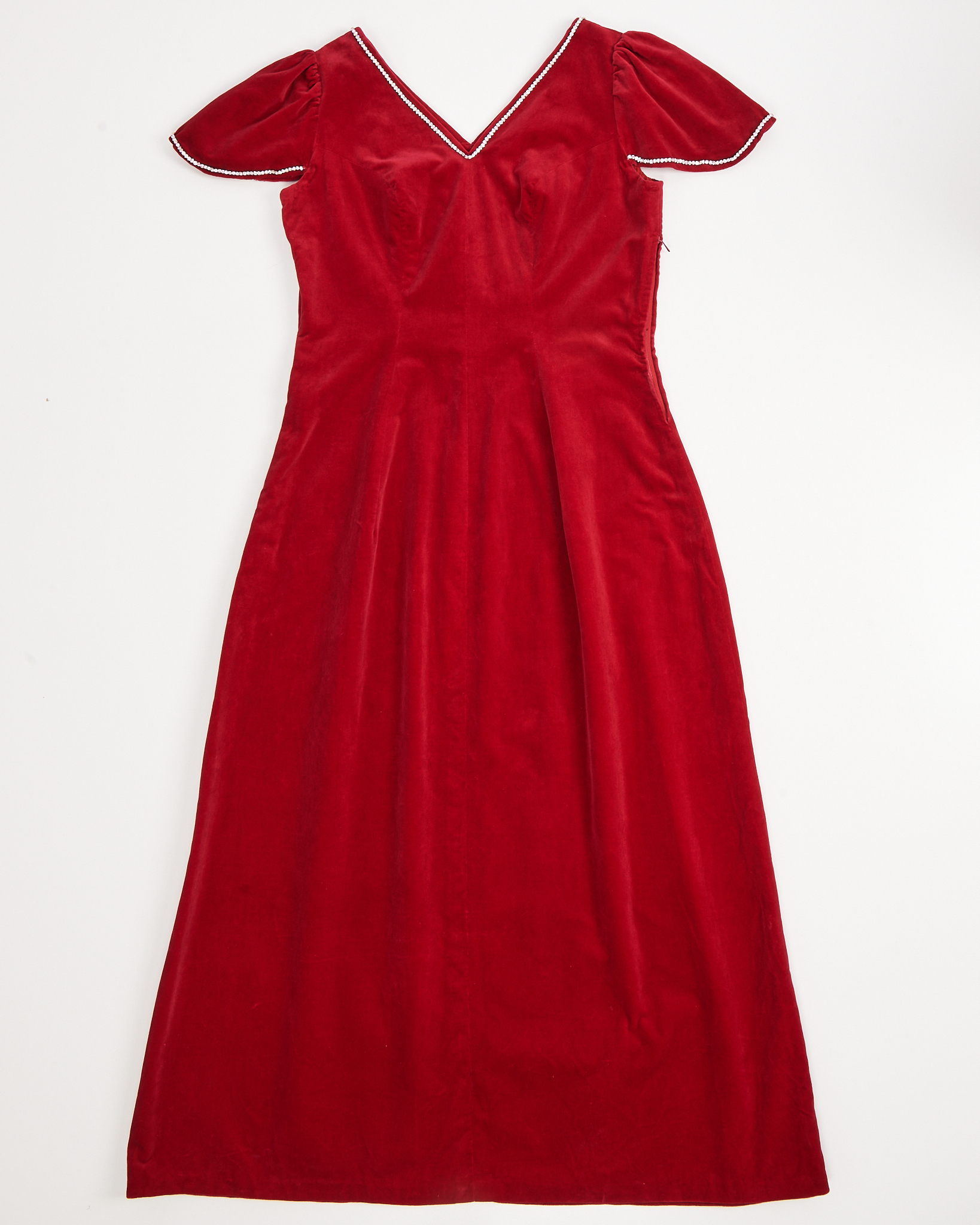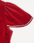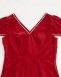 Бархатное платье с вырезом. Платье  из плотного бархата насыщенного красного оттенка с мягким, гладким ворсом. Приталенный крой, короткие рукава с лёгким объёмом и аккуратной отделкой стразами.
