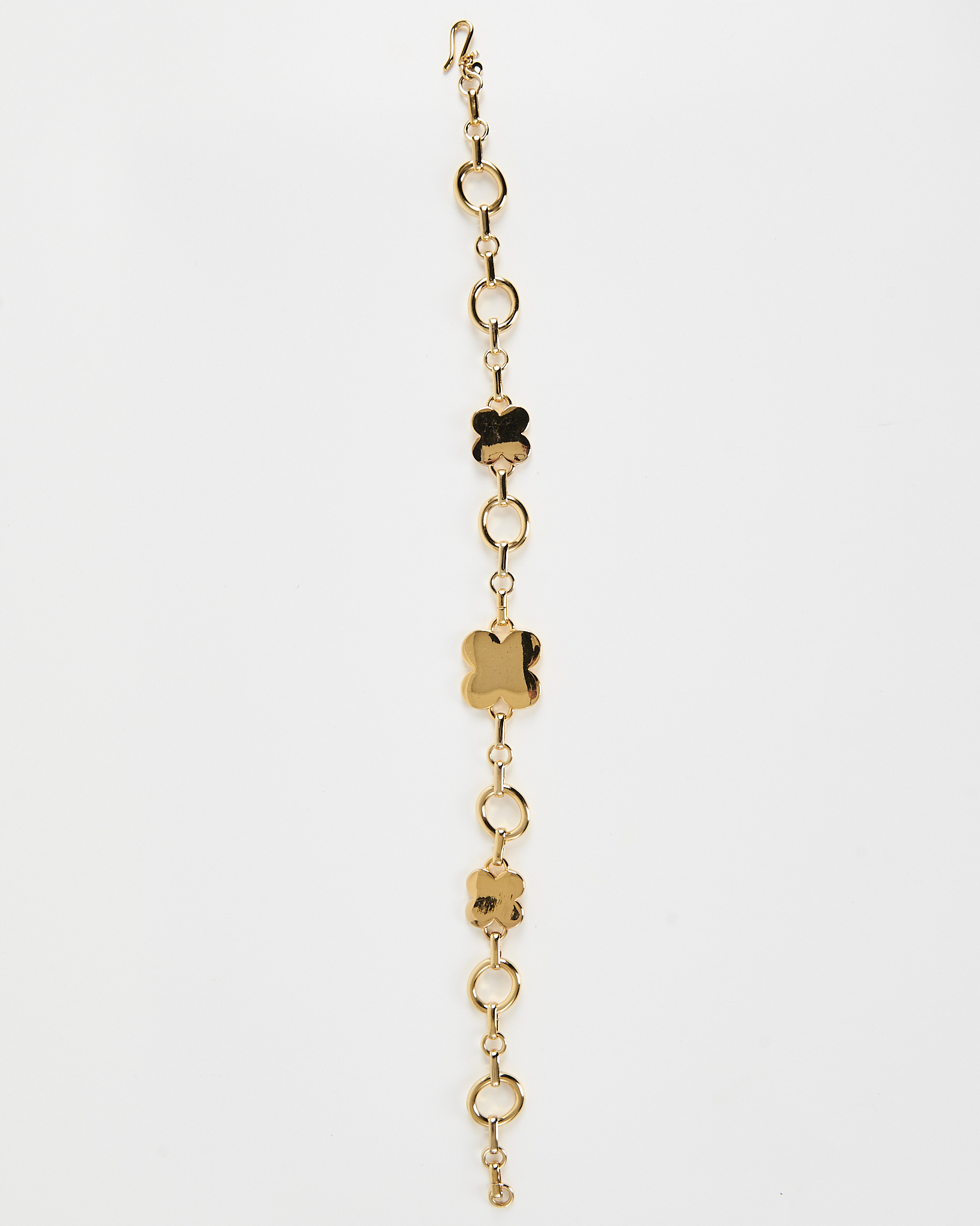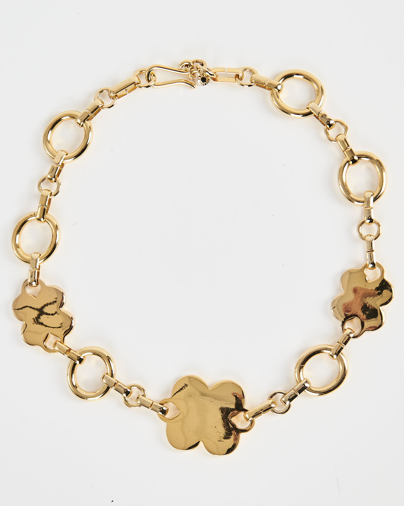 Винтажное металлическое колье. Крупные кольца и акцентные подвески в форме цветка, удобная застежка.