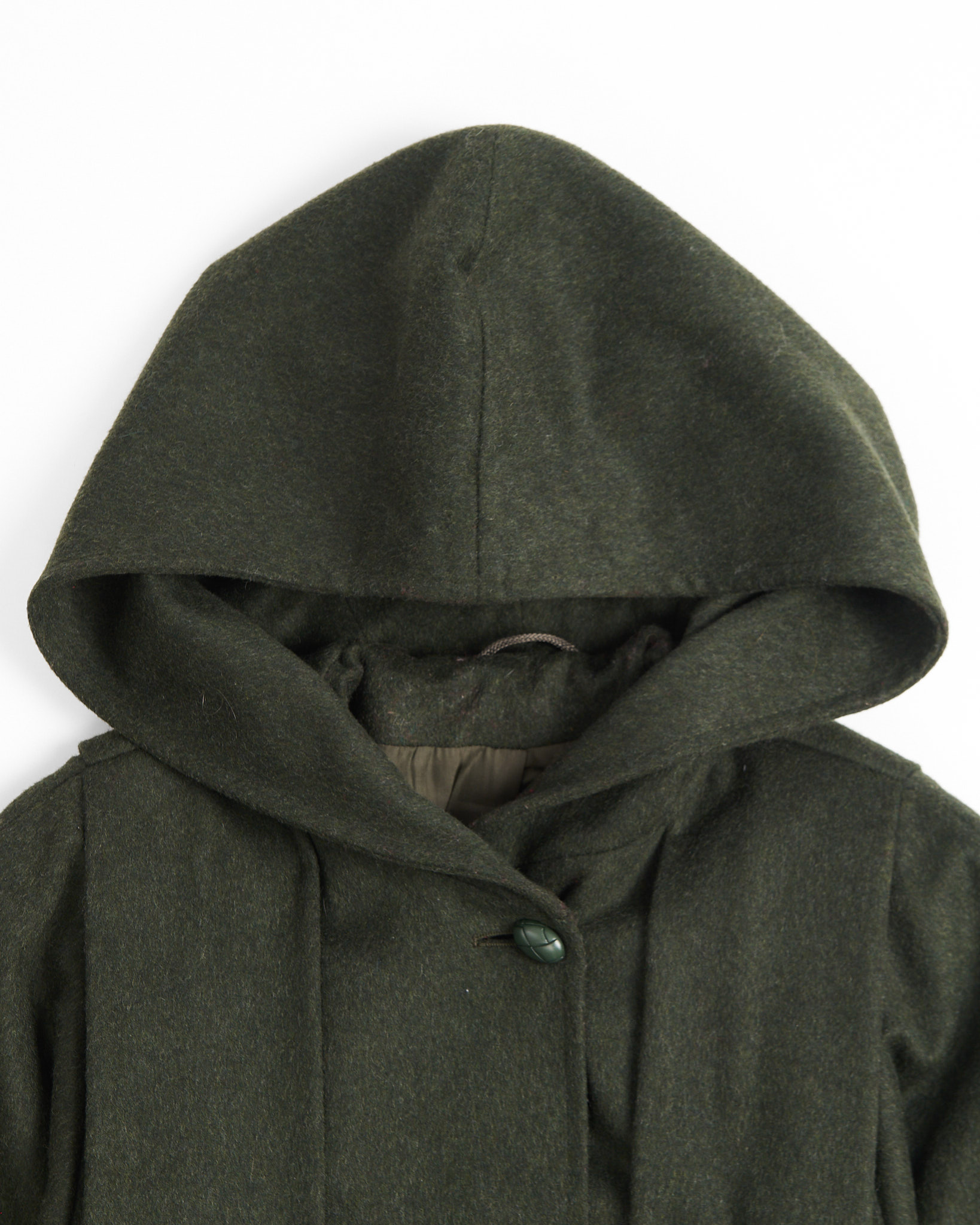 Пальто из шерсти в альпийском стиле. Свободный крой трапеция, объемный силуэт. Плетенные пуговицы и глубокий капюшон. Маркировка Echter Loden гарантирует высокую износостойкость ткани.