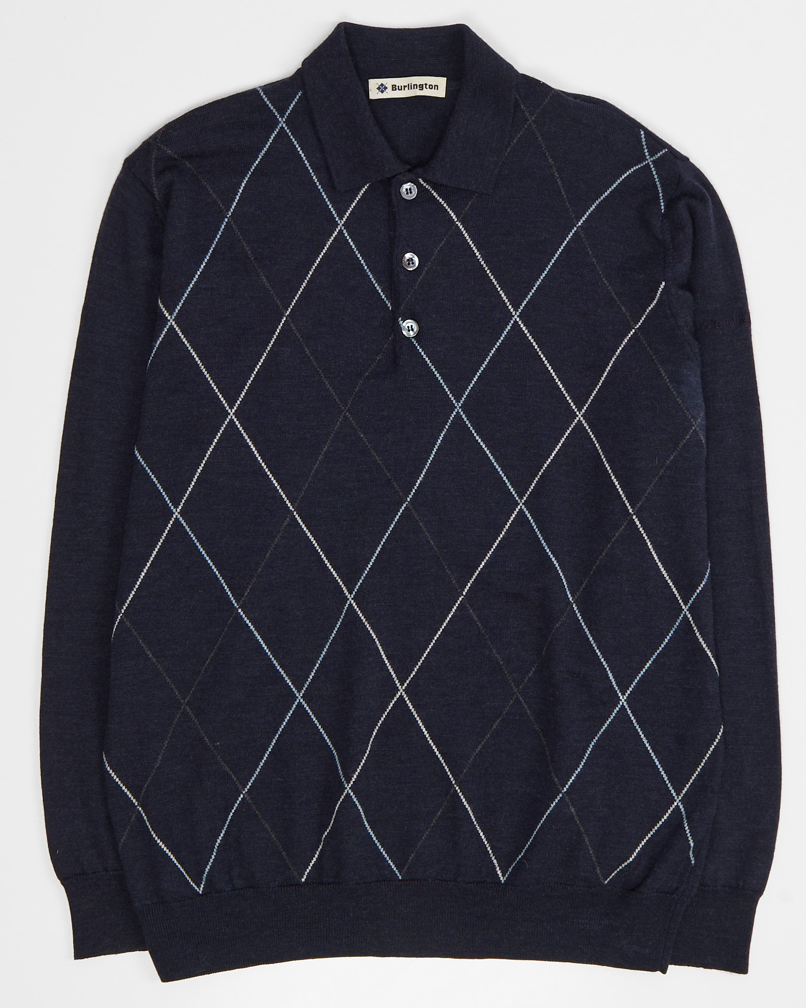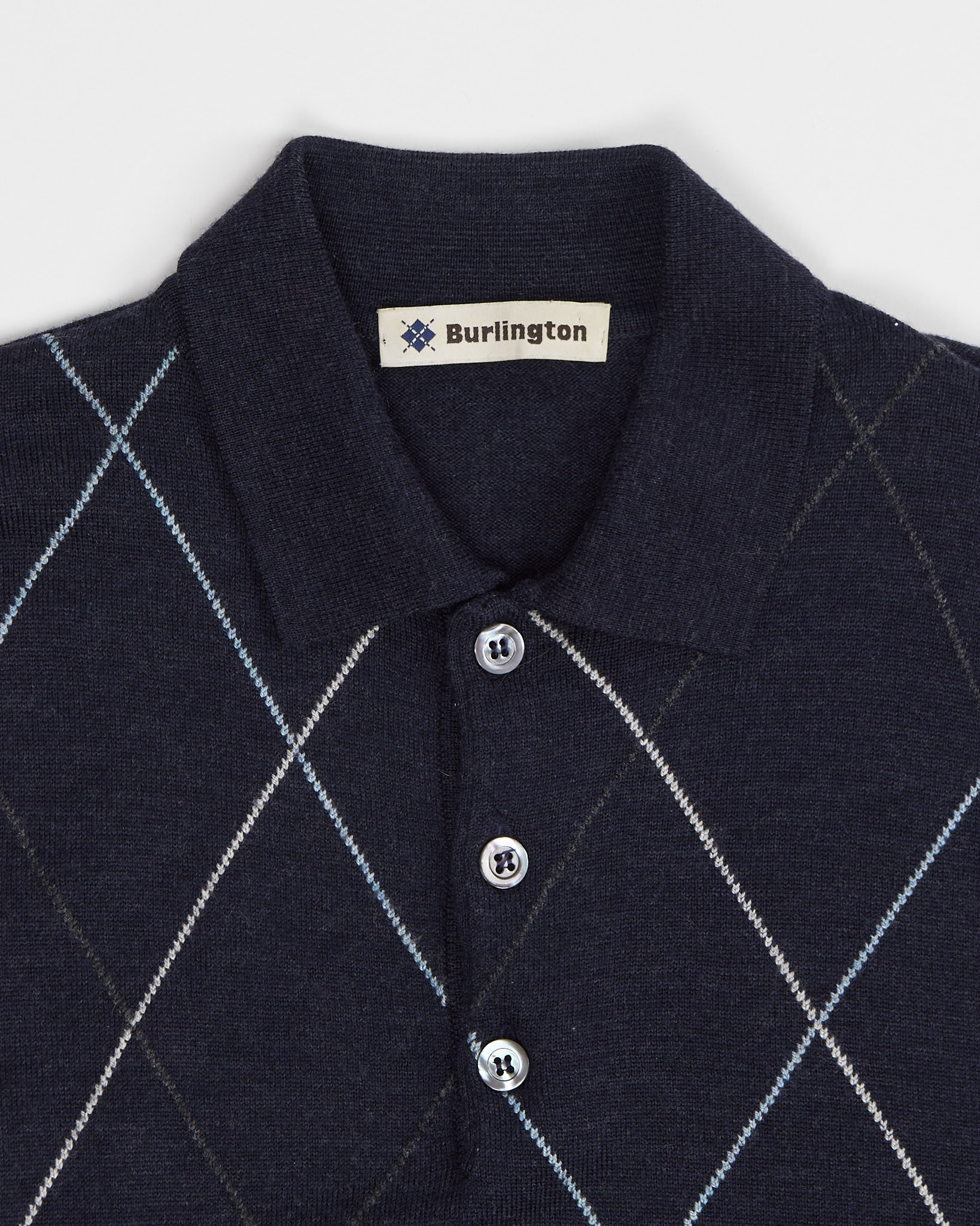 Винтажное джемпер-поло Burlington из 100% натуральной шерсти. Посадка прямая, воротник поло, рисунок аргайл.