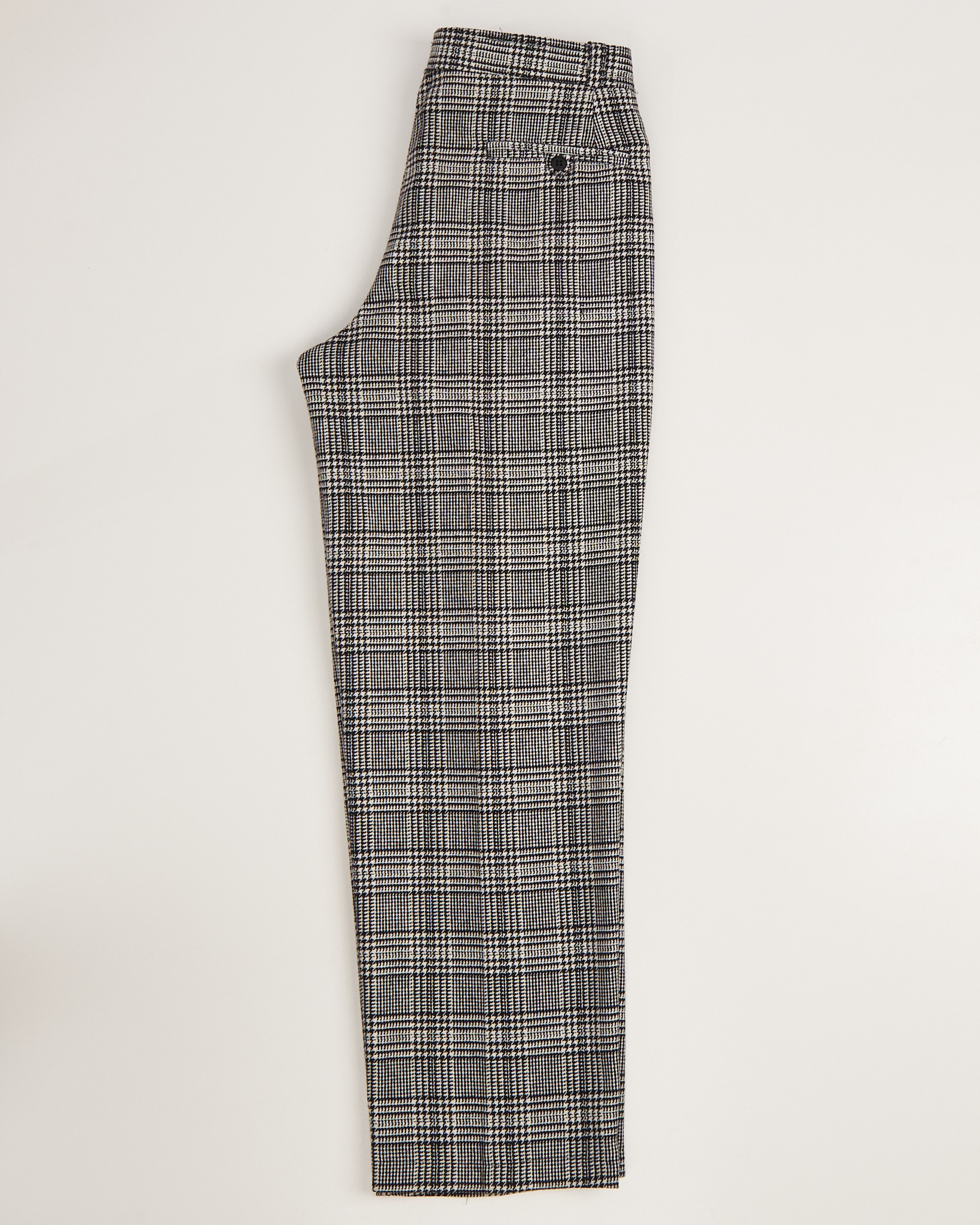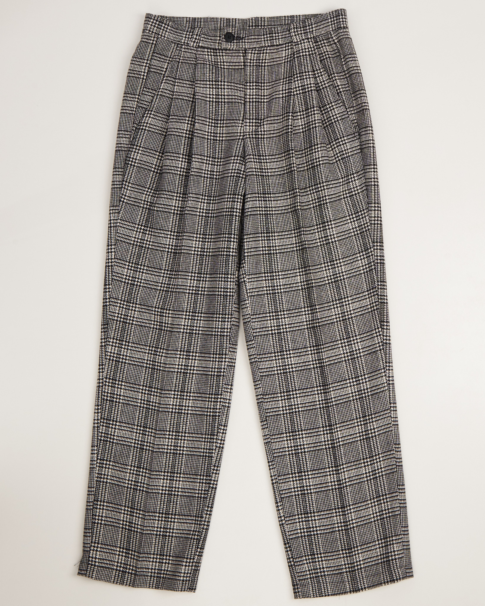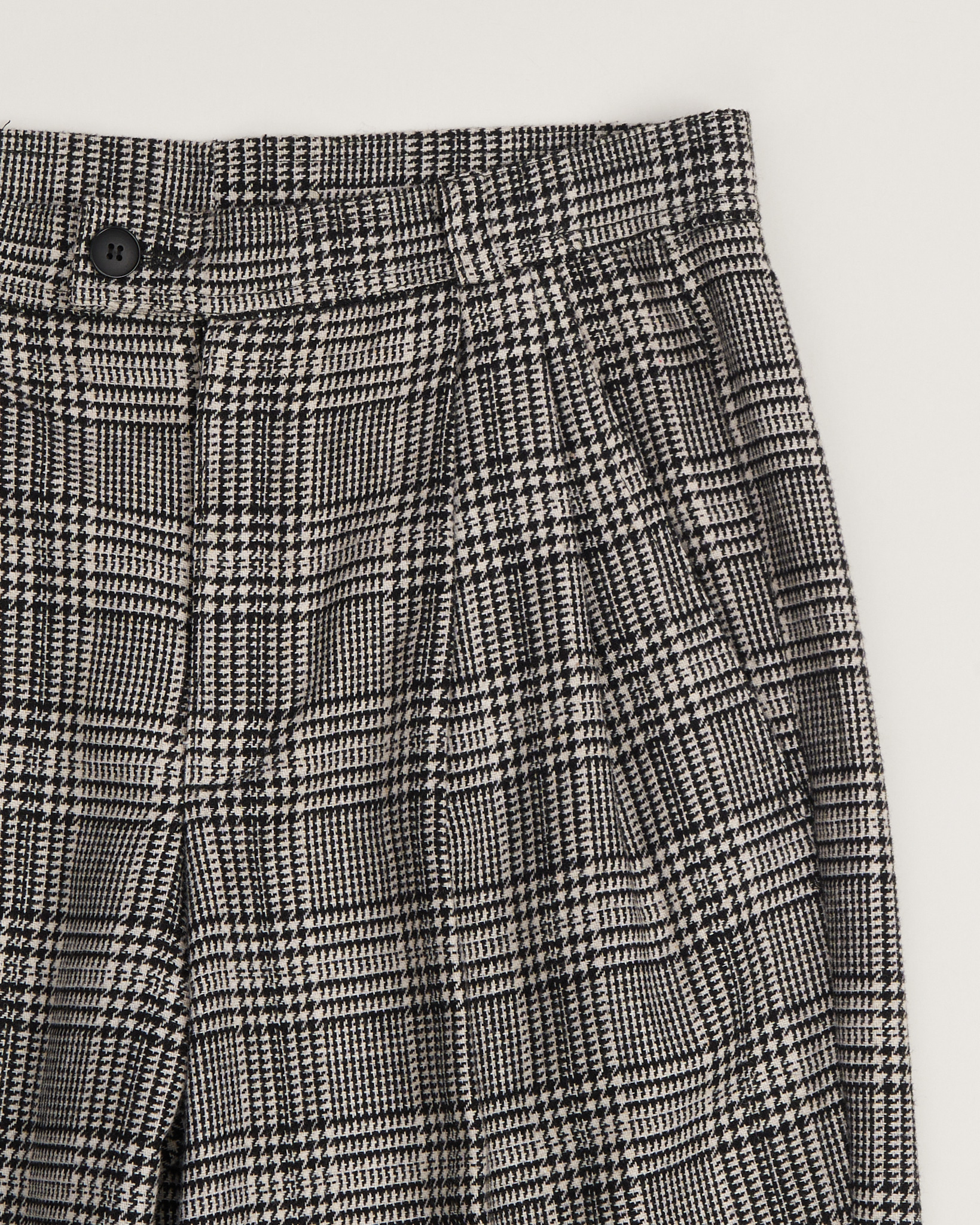 Классические брюки из шерсти в черно-белую клетку. Прямой крой, аккуратные складки спереди. Два боковых кармана