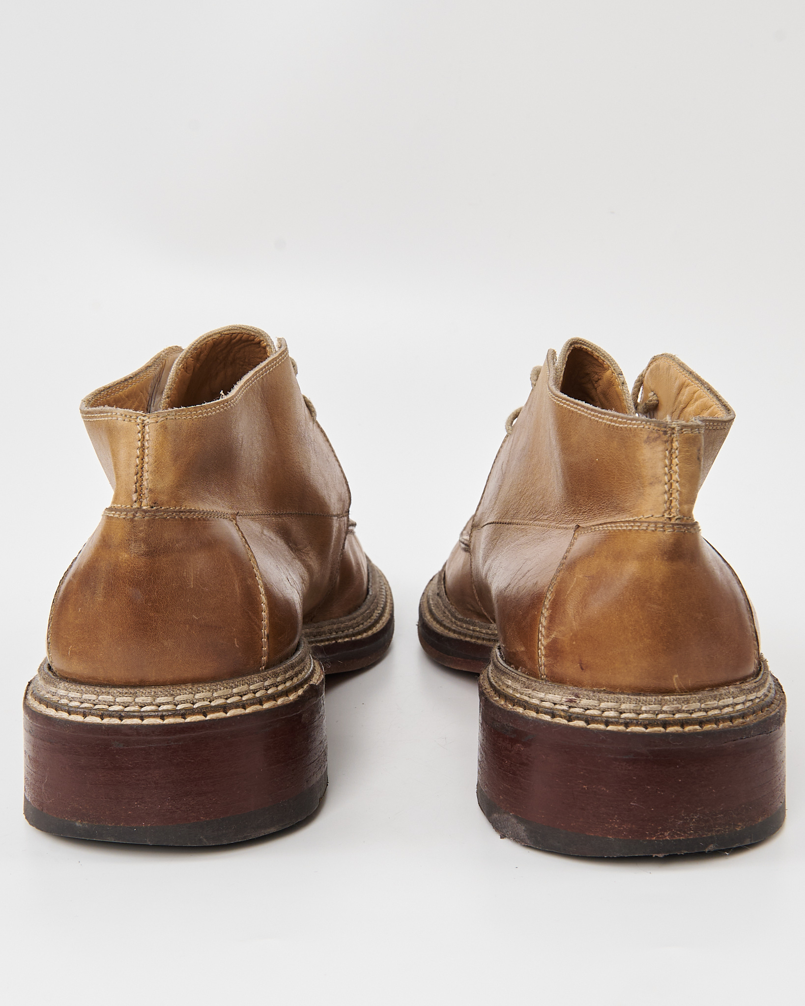 Ботинки из плотной 100% натуральной кожи. Комфортная посадка, колодка фиксирует стопу. Толстая подошва с прошивкой, удобная шнуровка.