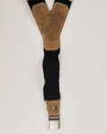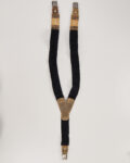 Выполнены из плотной эластичной тесьмы с кожаными вставками. Материал приятен на ощупь, держит форму. Посадка регулируется по длине. Металлические клипсы, декоративные накладки с рельефным мотивом.