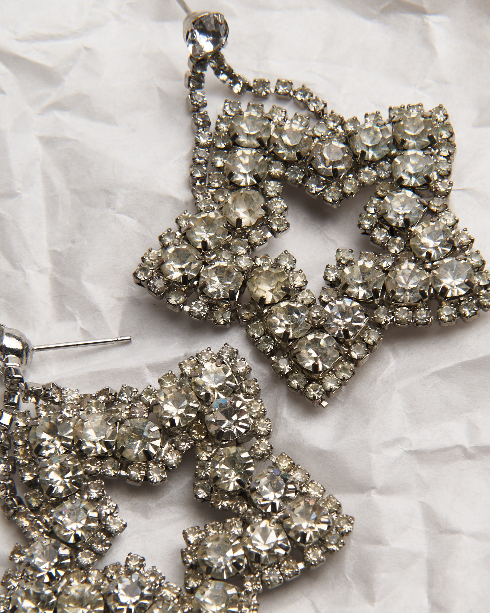 Мерцающие серьги-звезды в стиле глэм. Декор в виде прозрачных кристаллов, застежка-пусет.