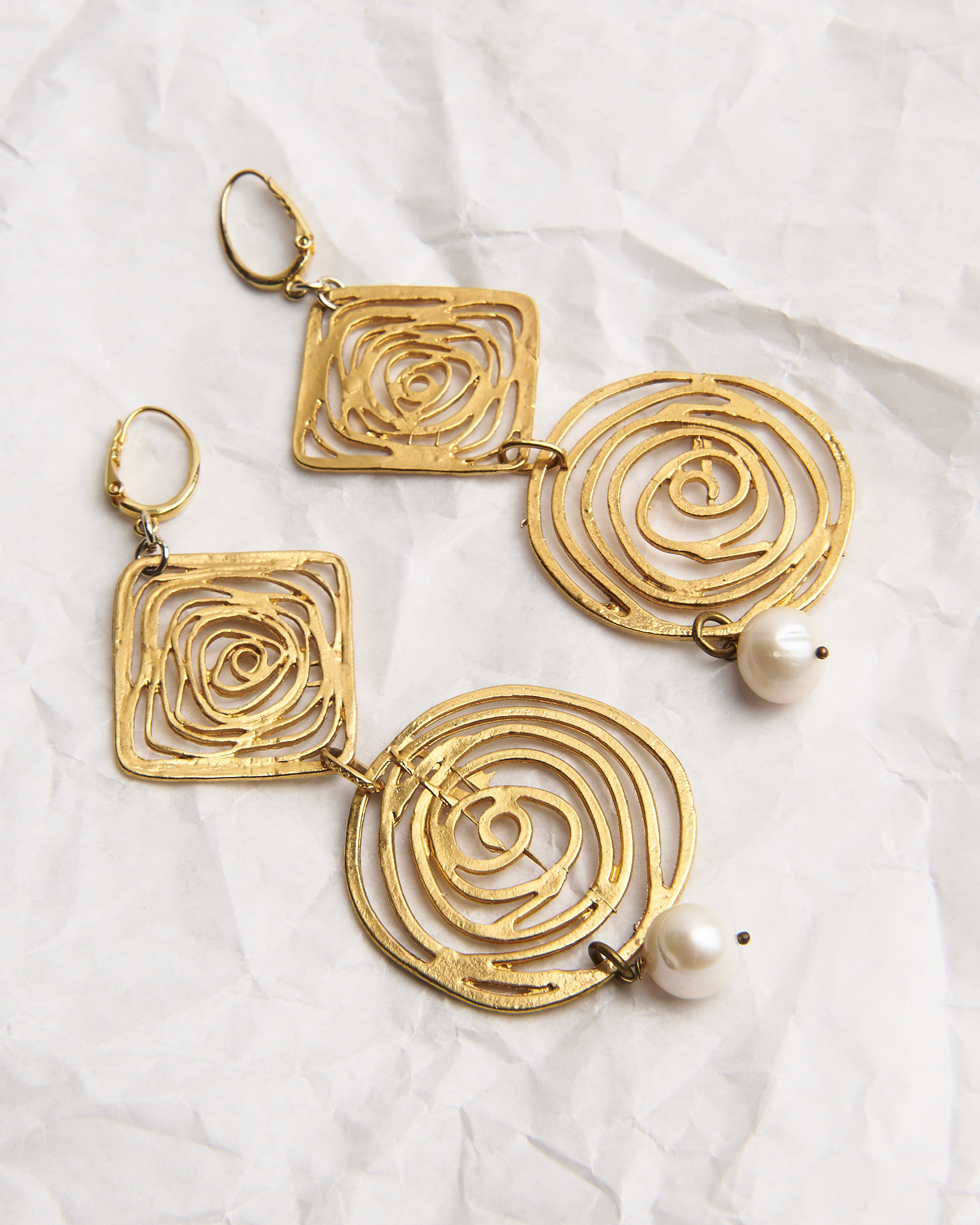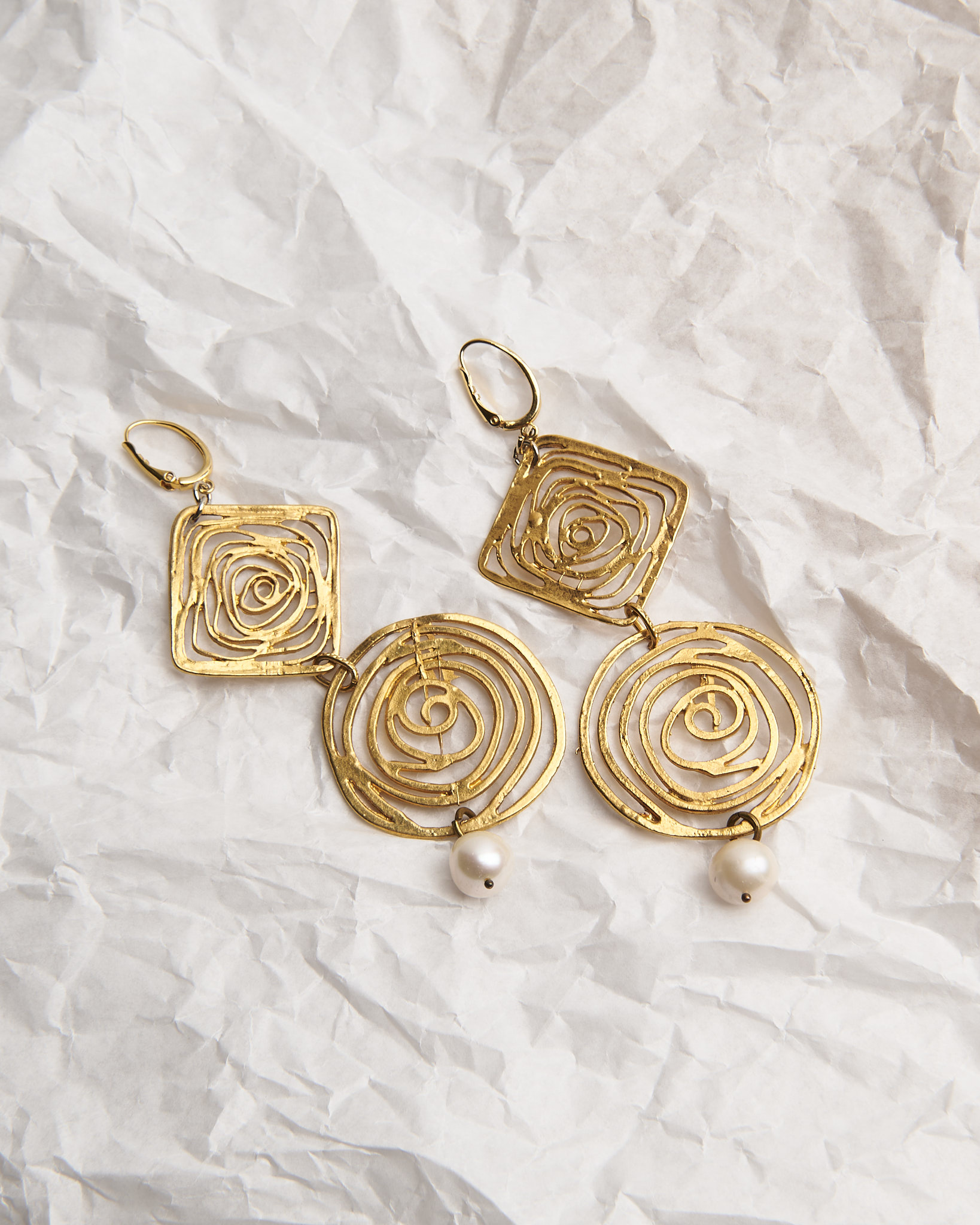 Винтажные сергьи с искусственным жемчугом.  Неровные линии узора и «мятая» фактура, удобный английский замок, акцент в виде искусственного жемчуга.