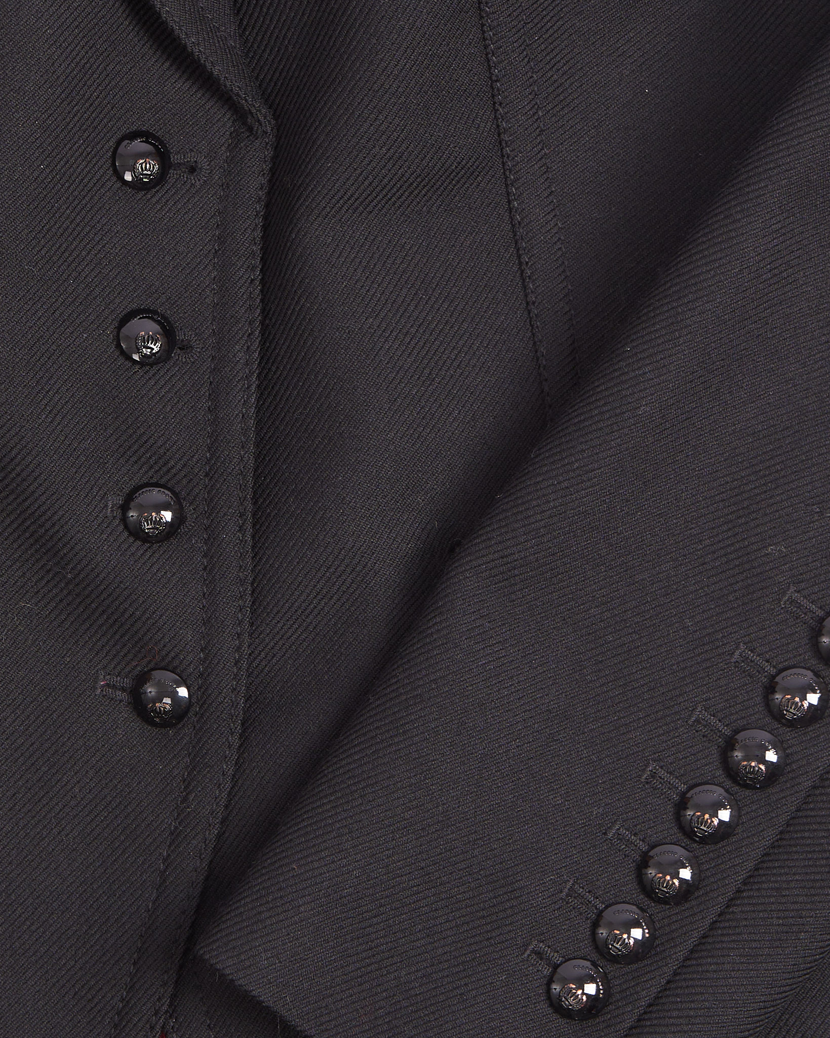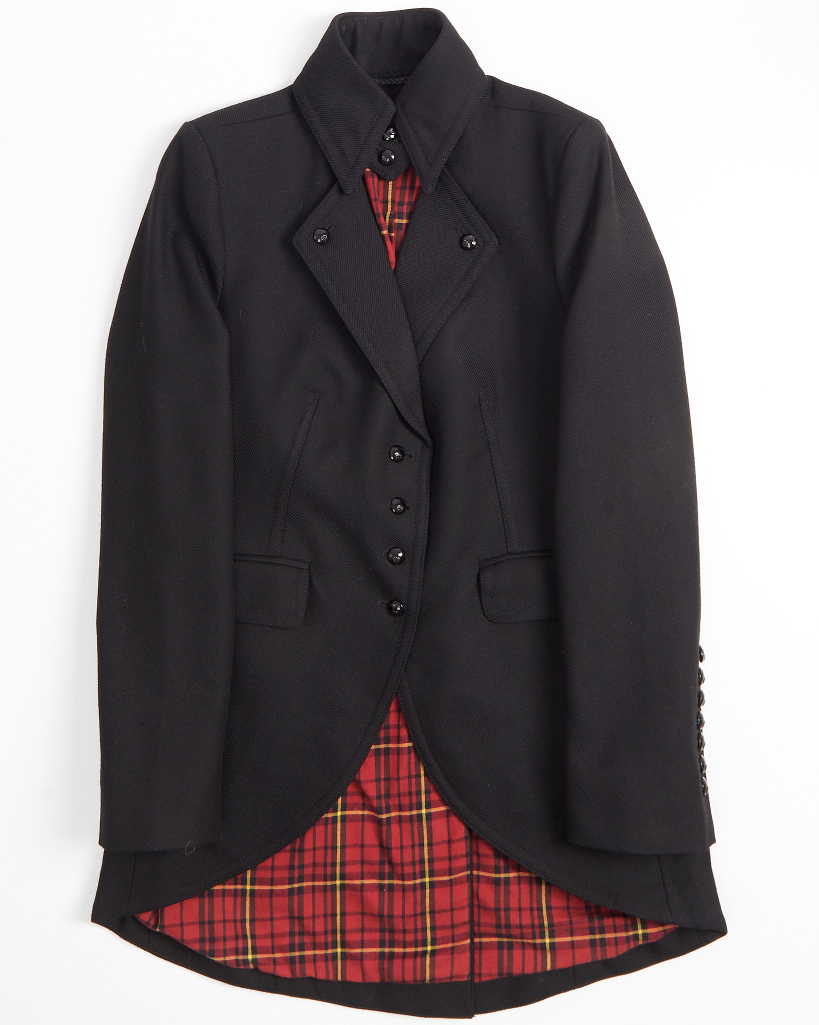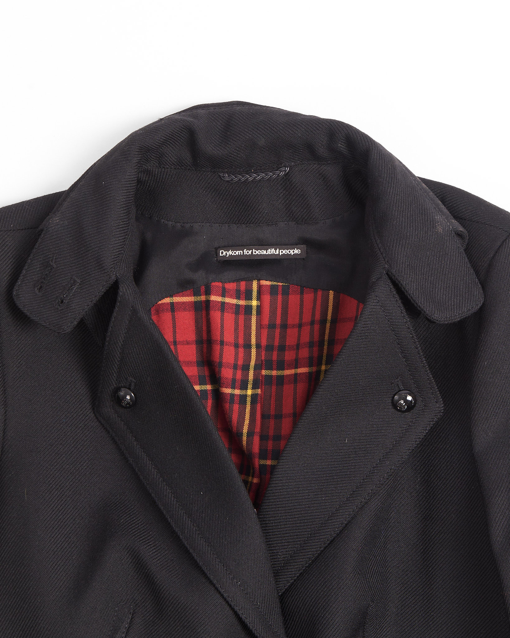 Приталенный жакет Drykorn из 100% шерсти в стиле милитари. Глубокие вытачки формируют силуэт. Темные глянцевые пуговицы на высоких манжетах, яркая подкладка в красную шотландскую клетку.