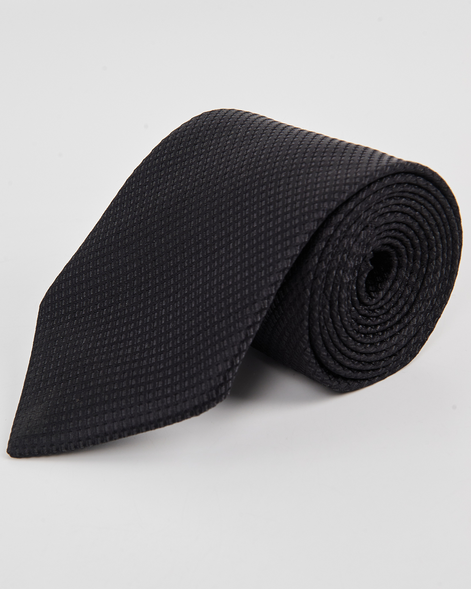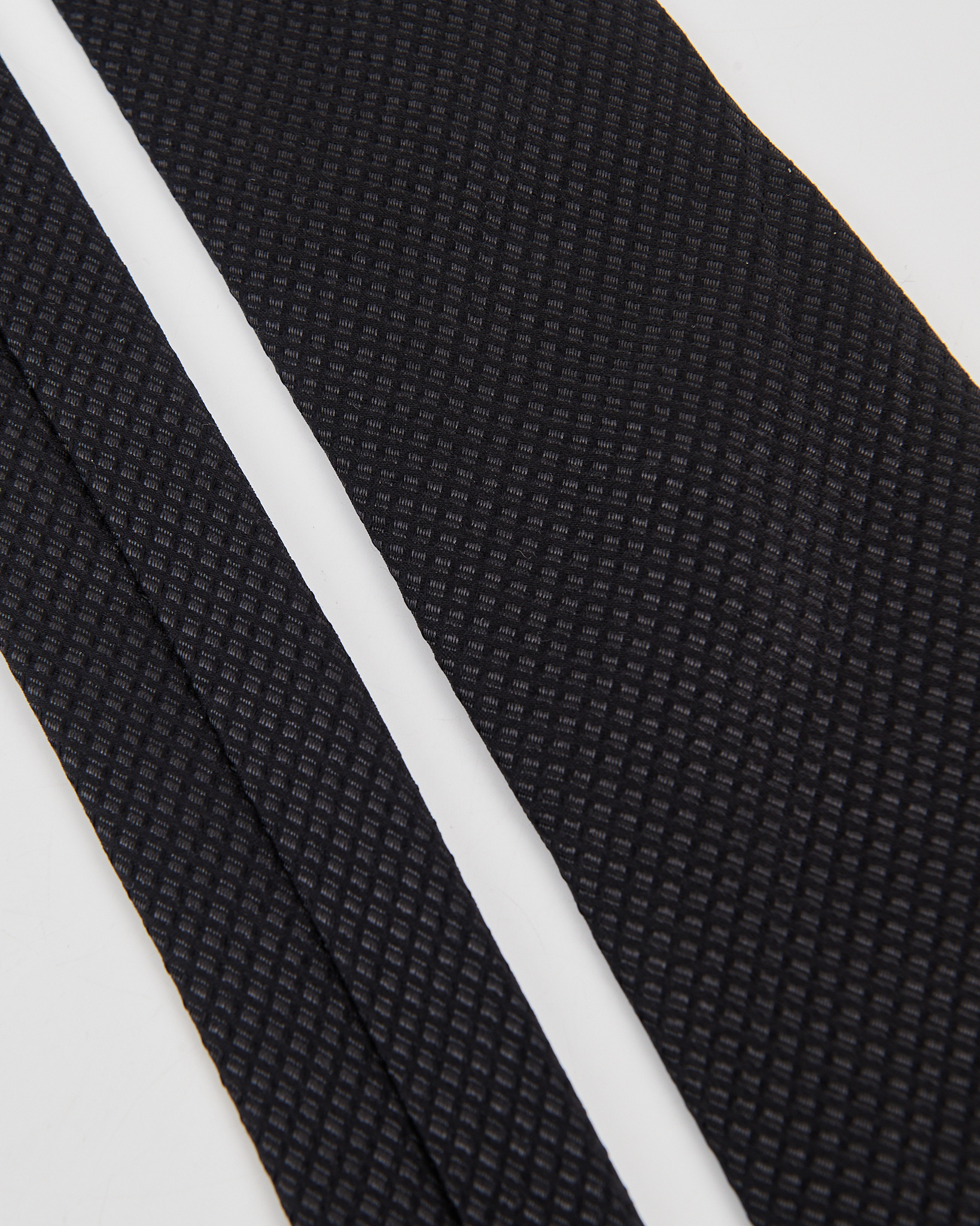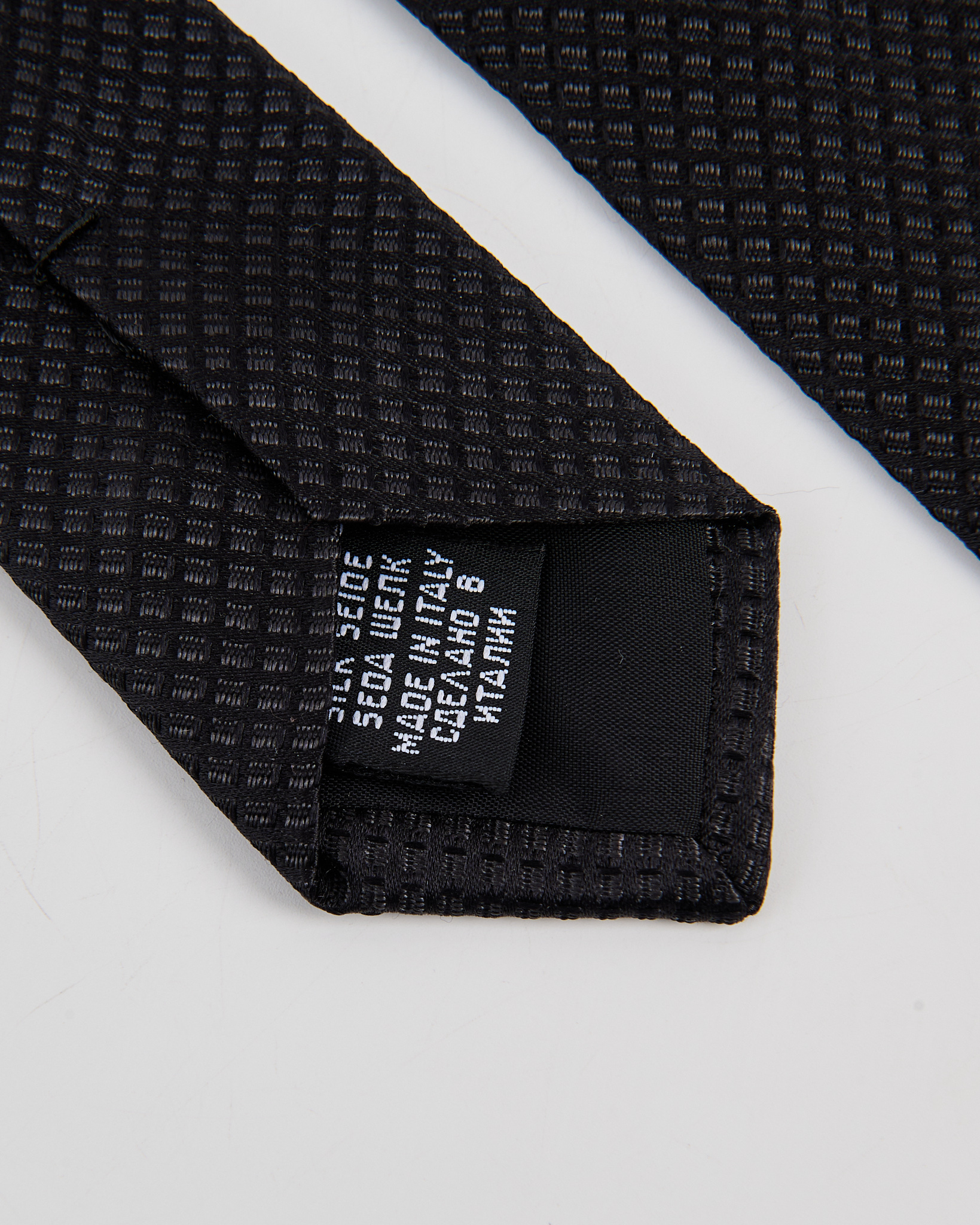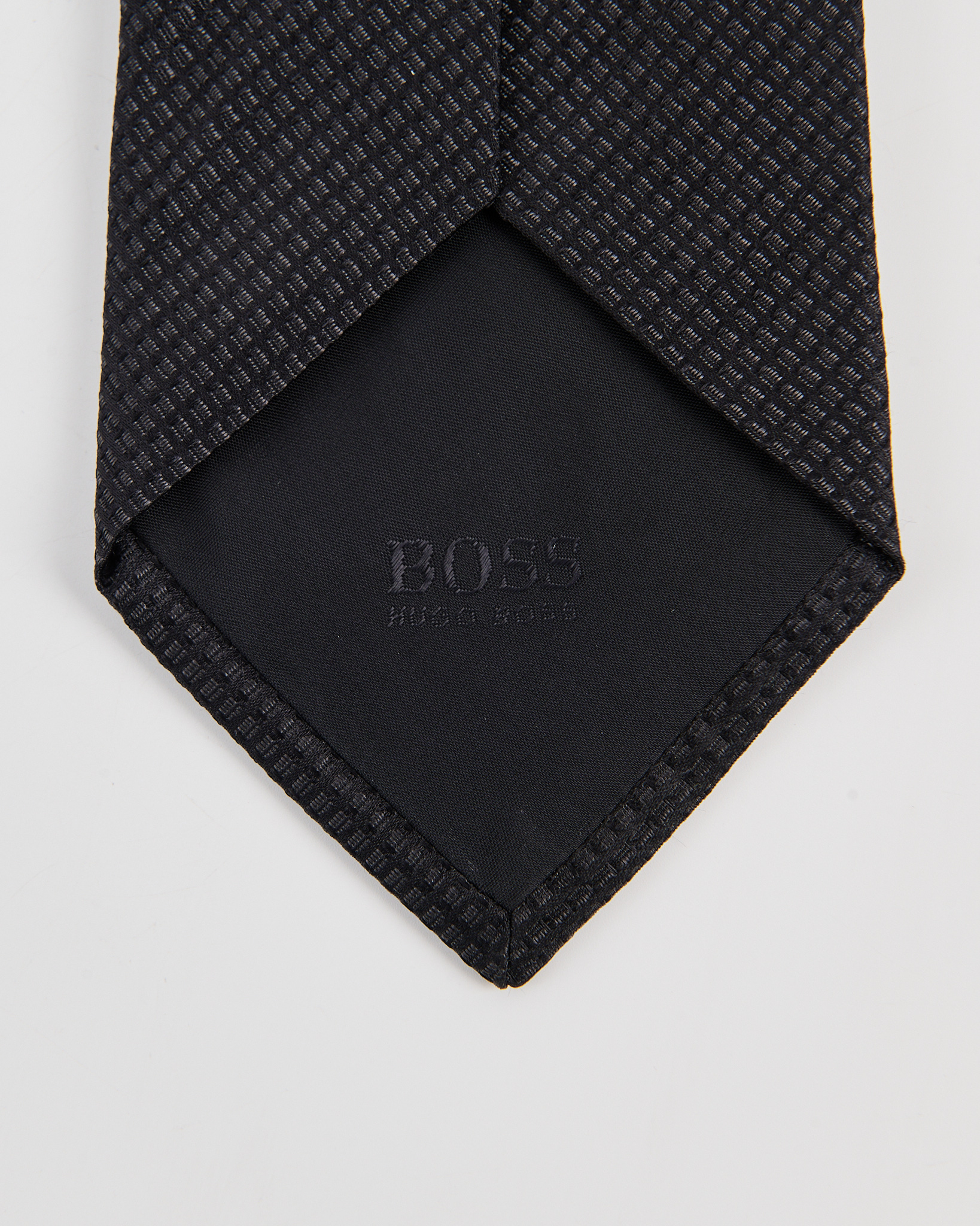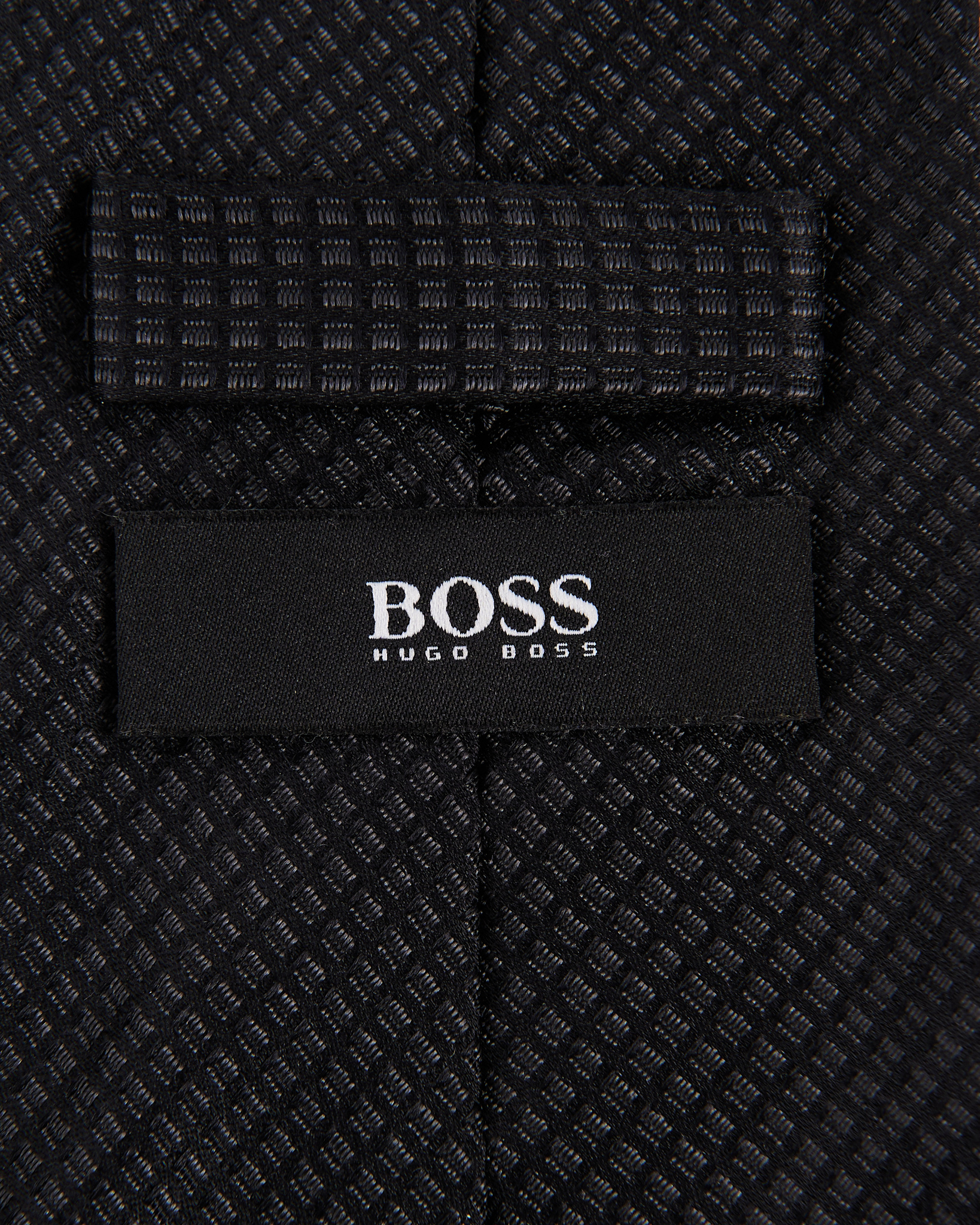 Галстук Hugo Boss с фактурным плетением. Галстук Hugo Boss выполнен из плотного шелка с выразительной текстурой.  Сдержанный черный оттенок в сочетании с рельефным плетением делает модель заметной за счет игры света на поверхности ткани