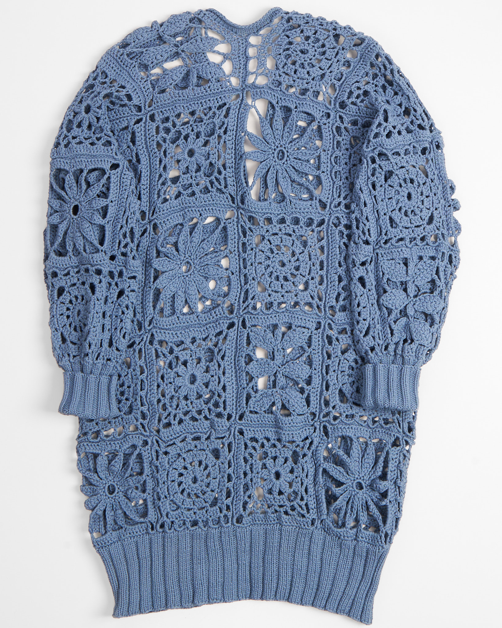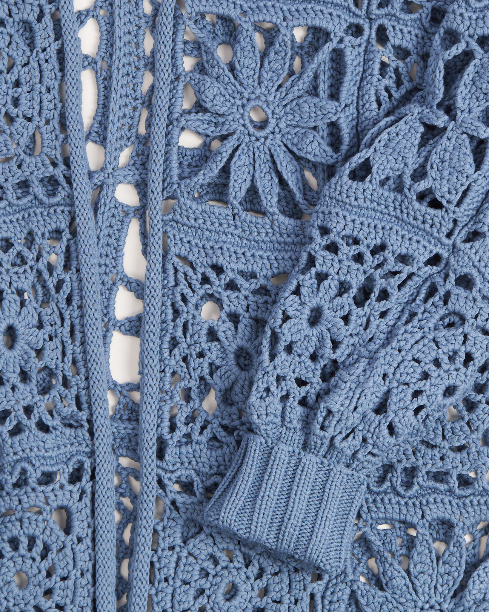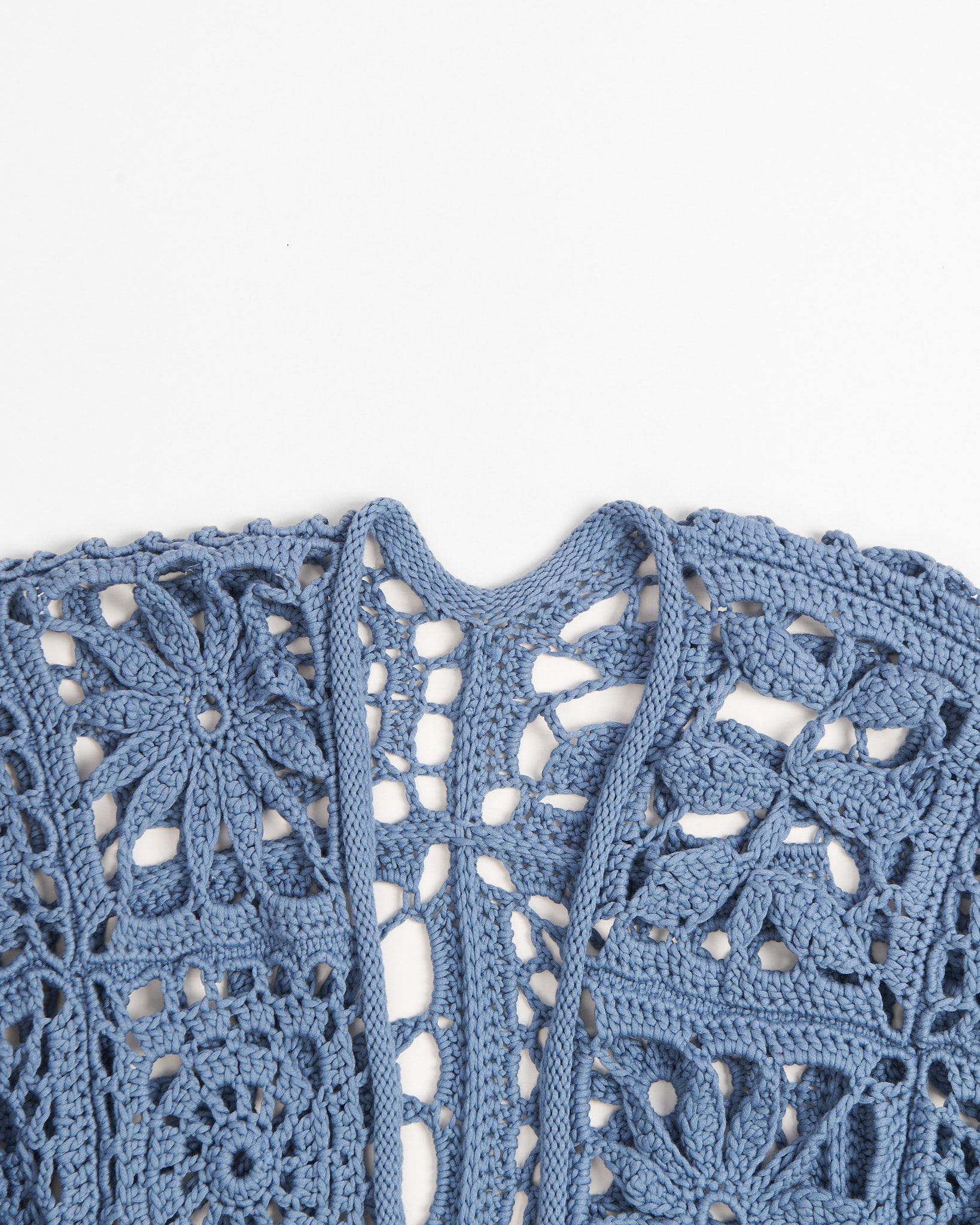 Вязаный кардиган кроше в стиле бохо. Прямой крой, сложное плетение, широкие эластичные манжеты.