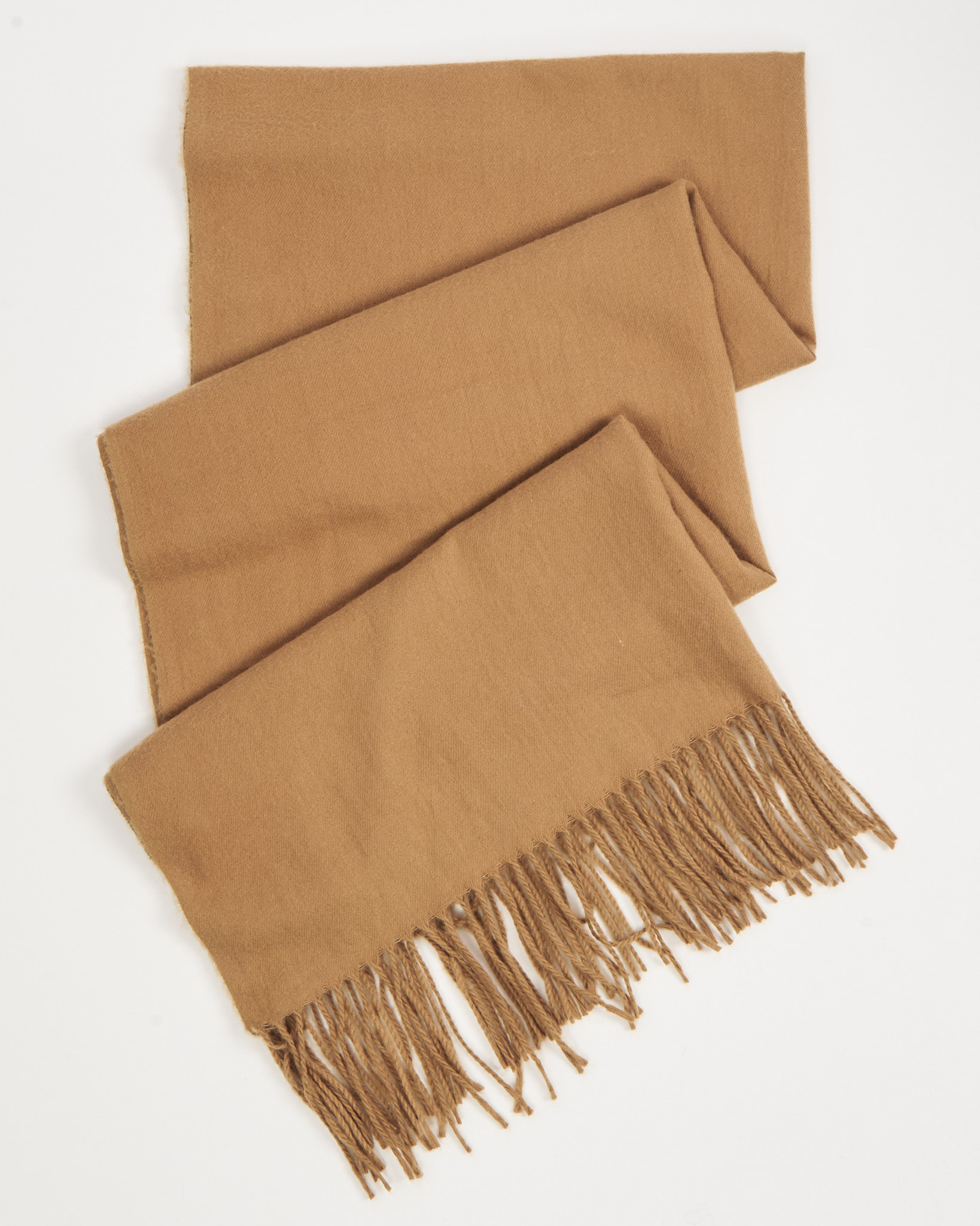 Шарф из 100% кашемира в  карамельном оттенке. Ровная бахрома по краям.