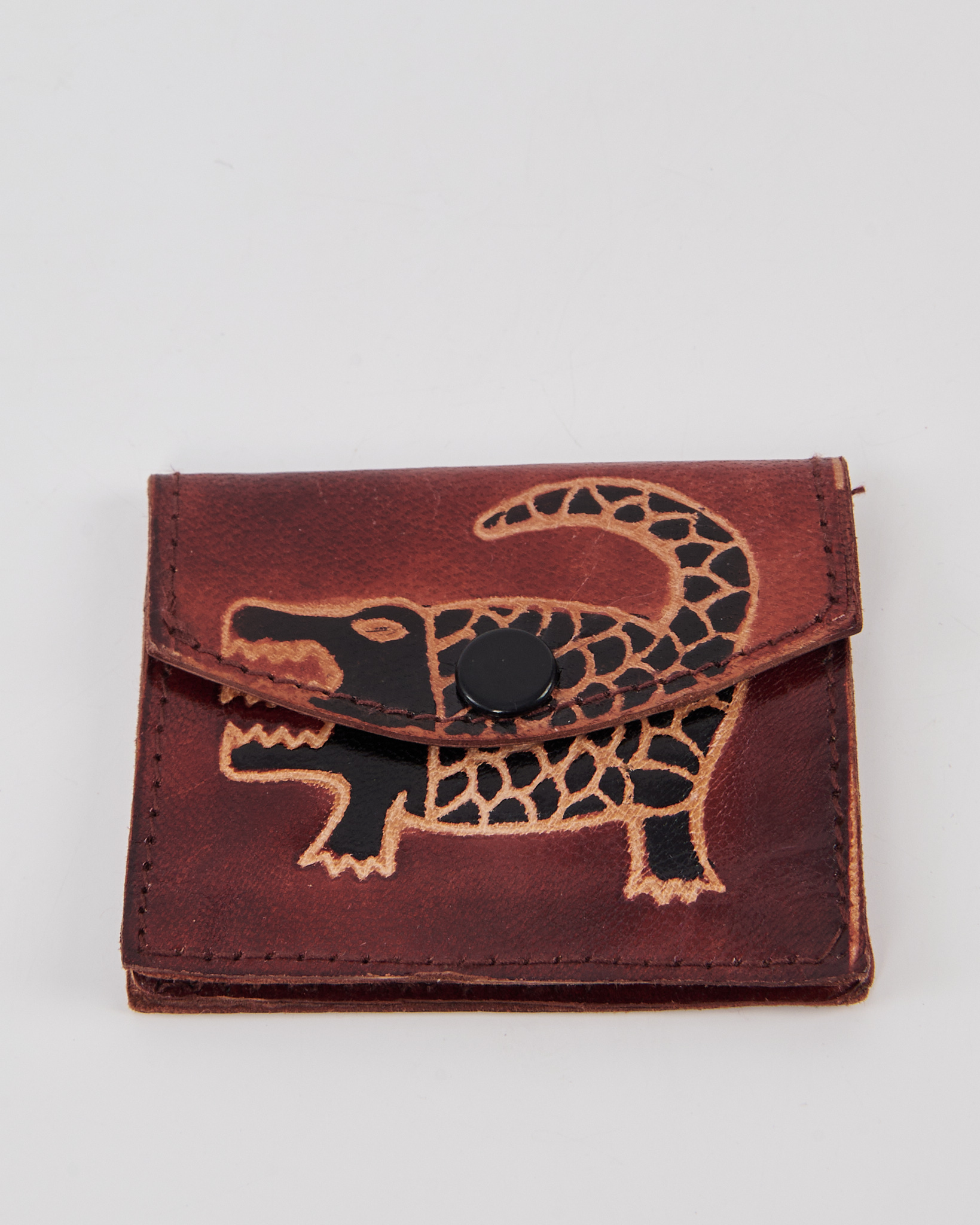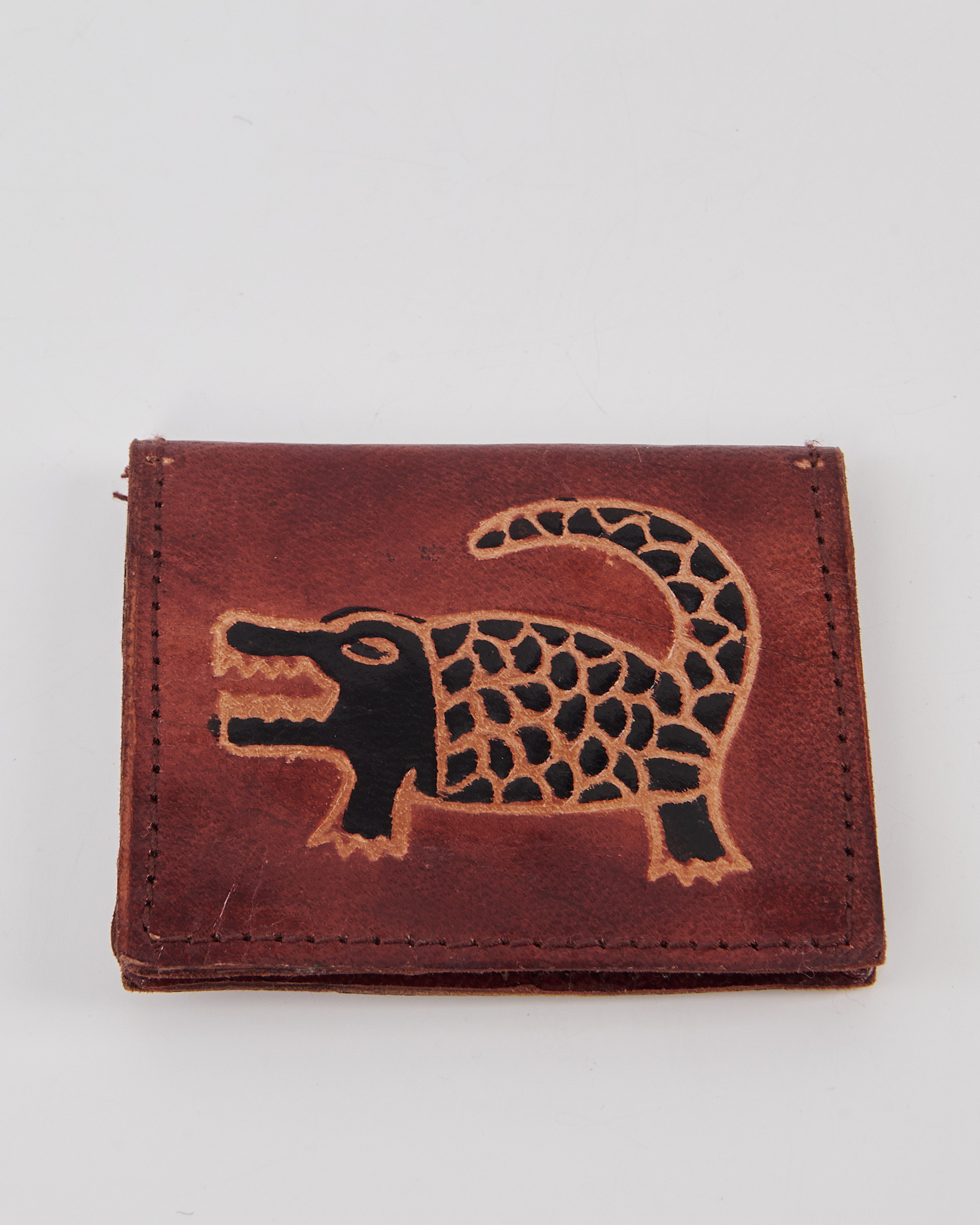 Компактный кожаный кошелек из плотной натуральной кожи насыщенного коньячного оттенка, контрастной росписью с проработкой деталей. Практичный аксессуар с харизмой ручной работы и вниманием к деталям.