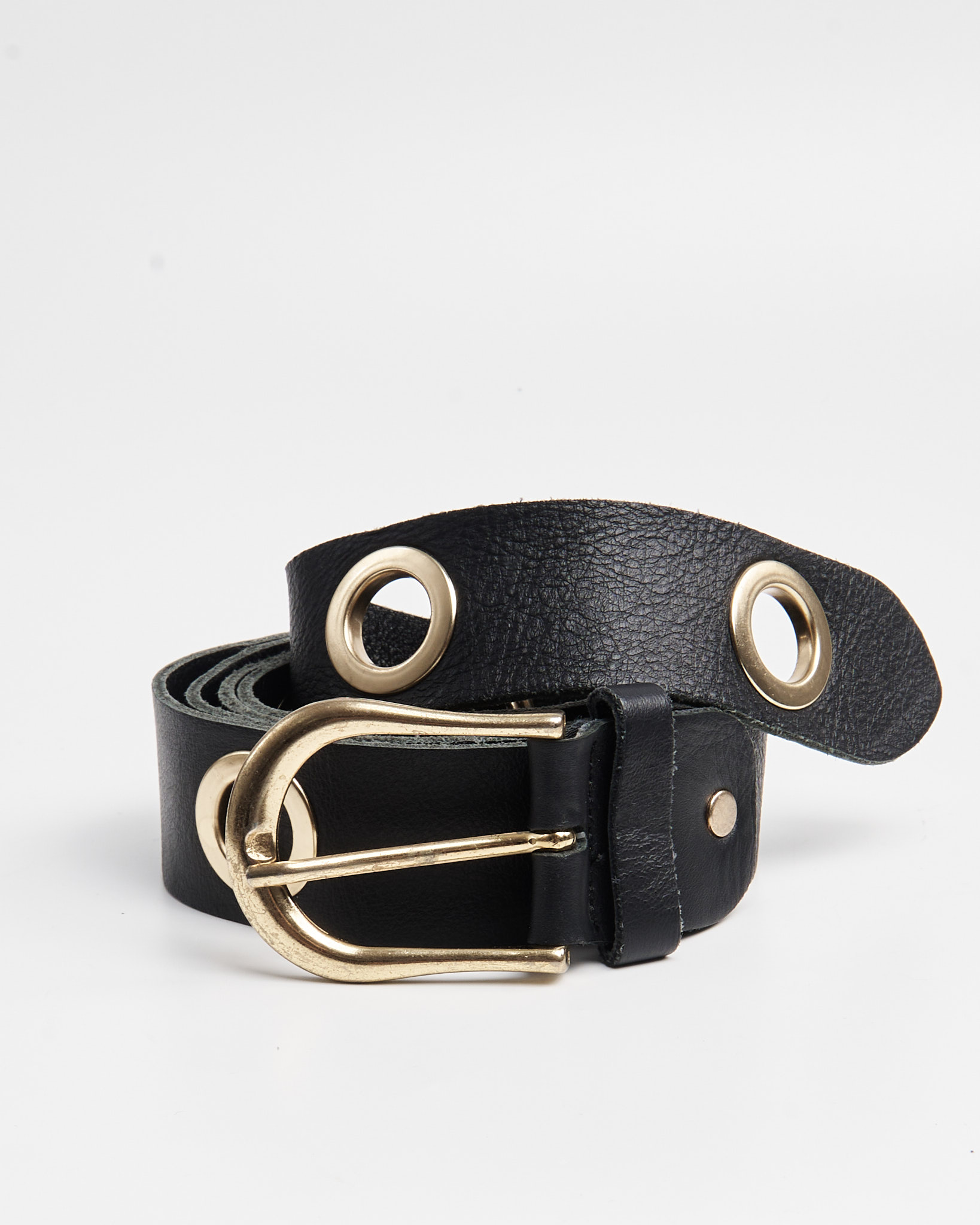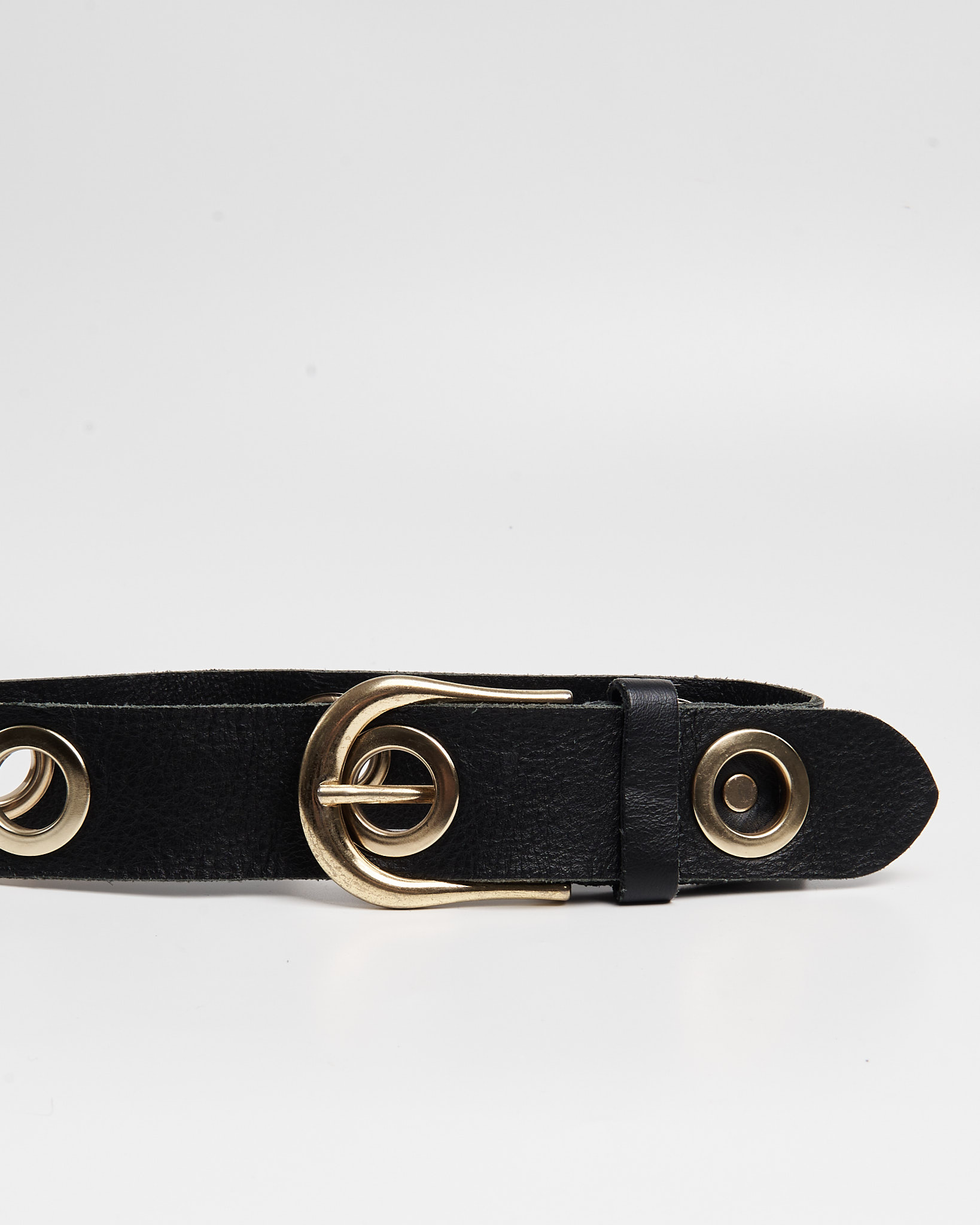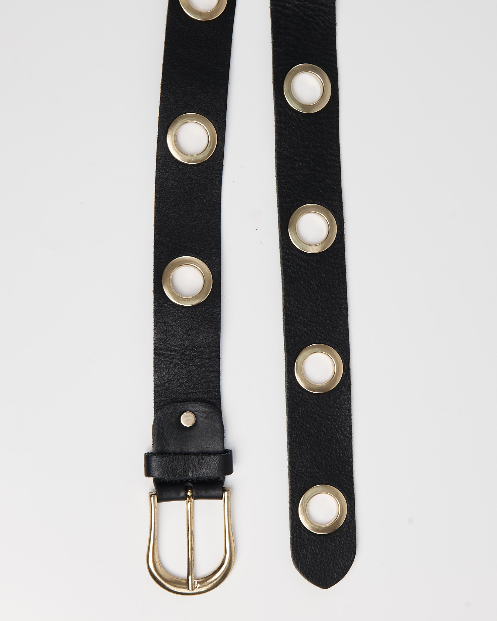 Акцентный ремень из кожи в стиле гранж из плотной натуральной кожи. Крупные золотистые люверсы, благодаря которым удобно регулировать посадку.