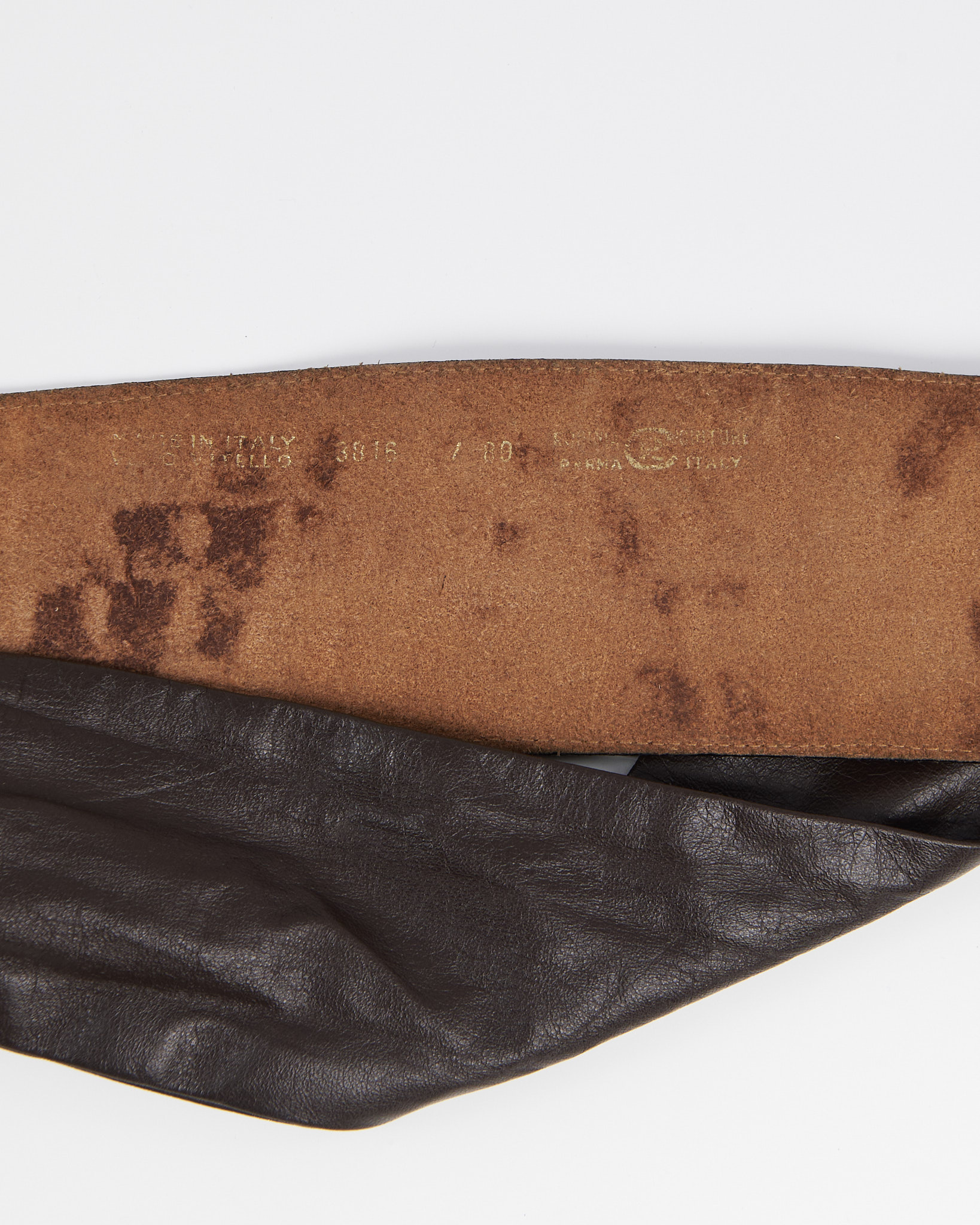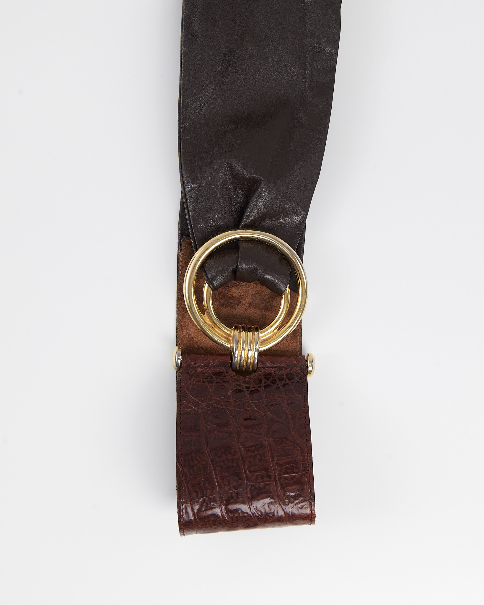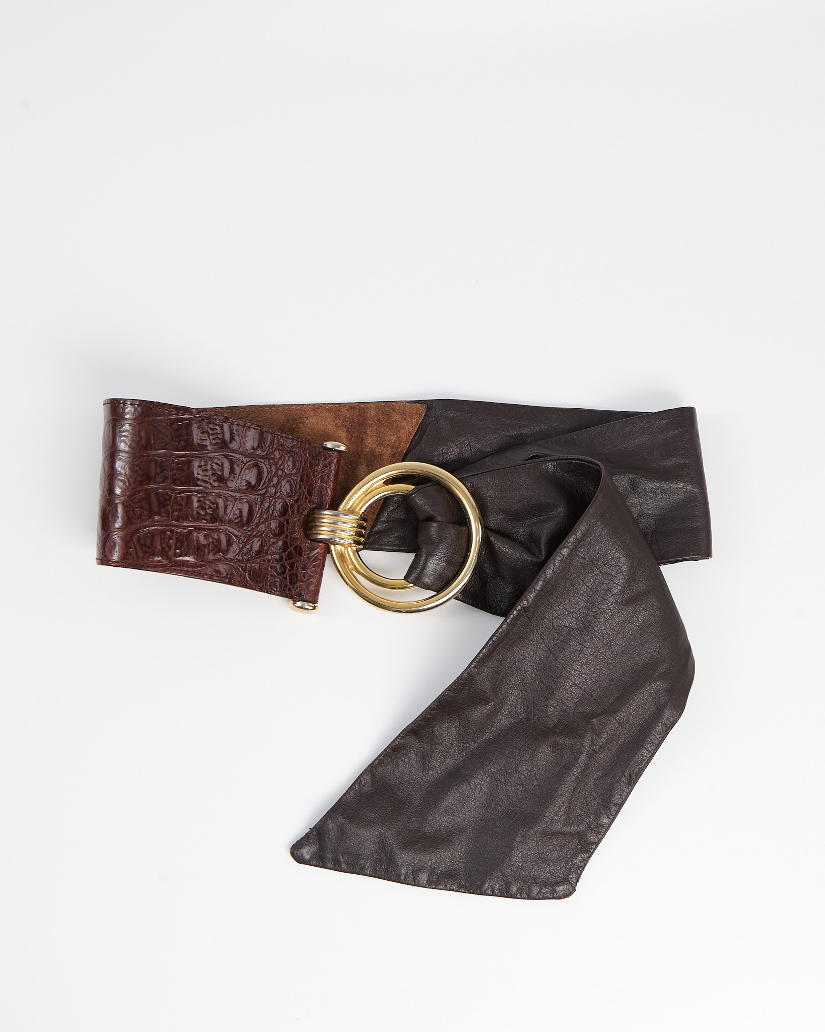 Широкий ремень из 100% натуральной кожи.  Глянцевая плотная кожа с тиснением под рептилию, застёжка на кольца.