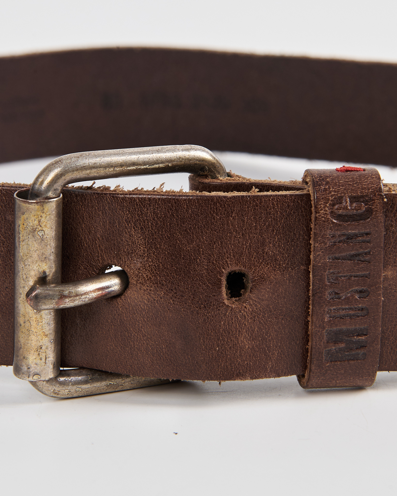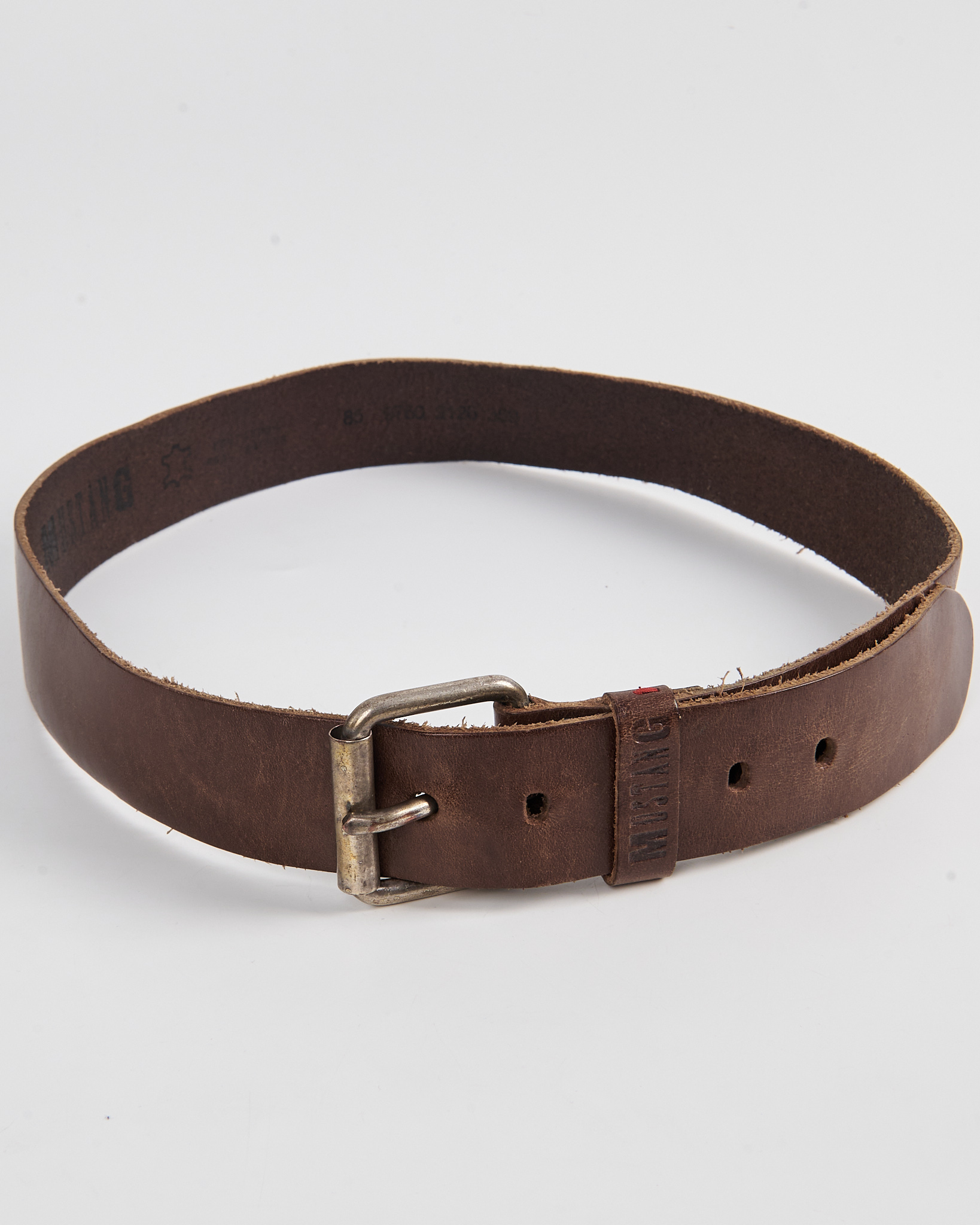 Кожаный ремень Mustang с массивной пряжкой. Акцентная металлическая пряжка с патиной. Тиснение Mustang.