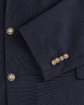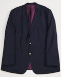 Пиджак в классическом стиле из 100% шерсти. Посадка свободная, материал гладкий на ощупь. Контрастная бордовая подкладка, акцентные пуговицы с гербом.