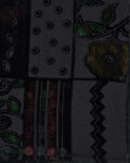 Платок из шелка и вискозы с графичным орнаментом в глубоких тёмных оттенках. Детали рисунка и контраст фактур придают акцент.